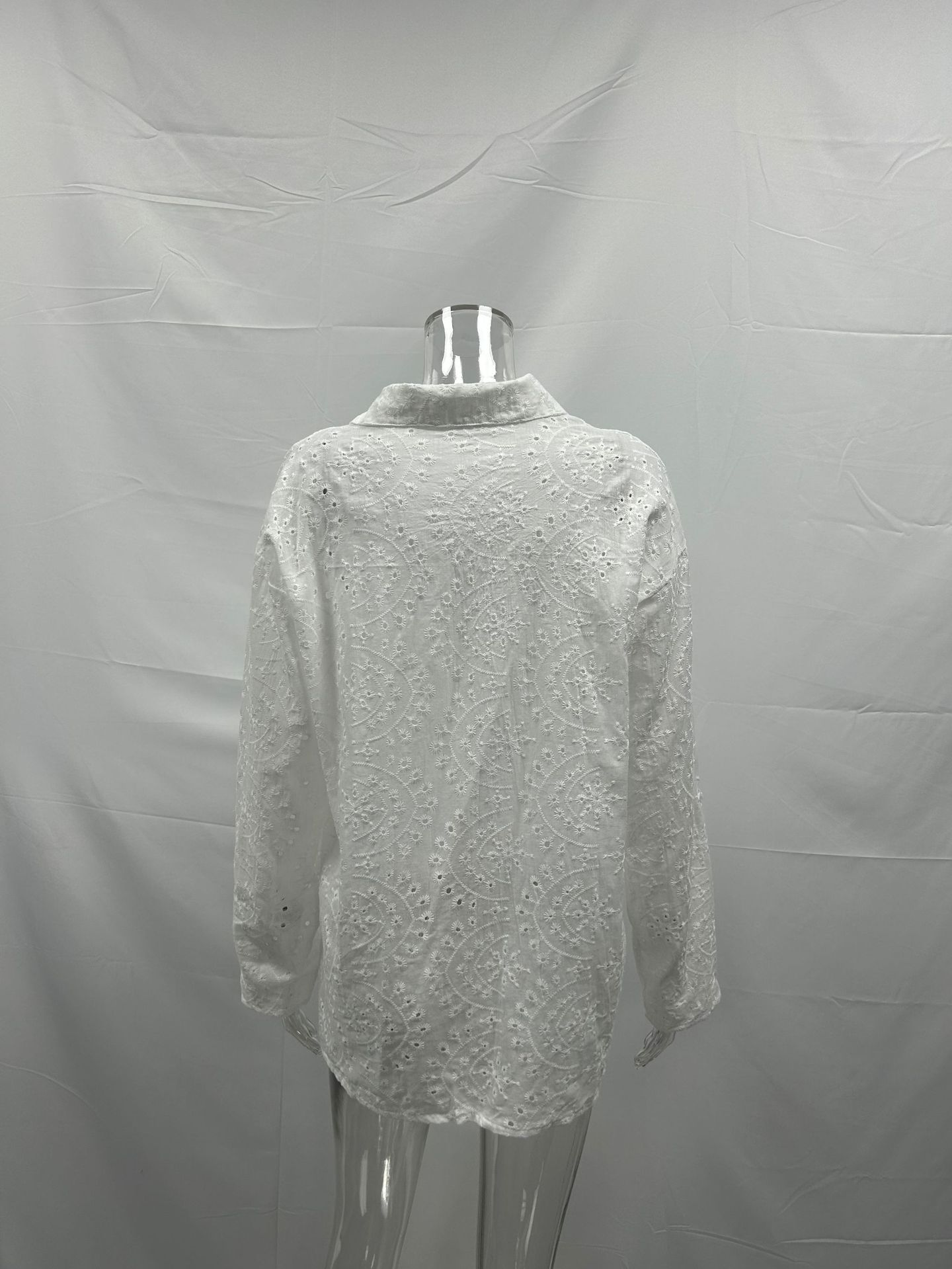 欧美跨境女装2025春夏新款衬衫领宽松刺绣镂空大码衬衫上衣女