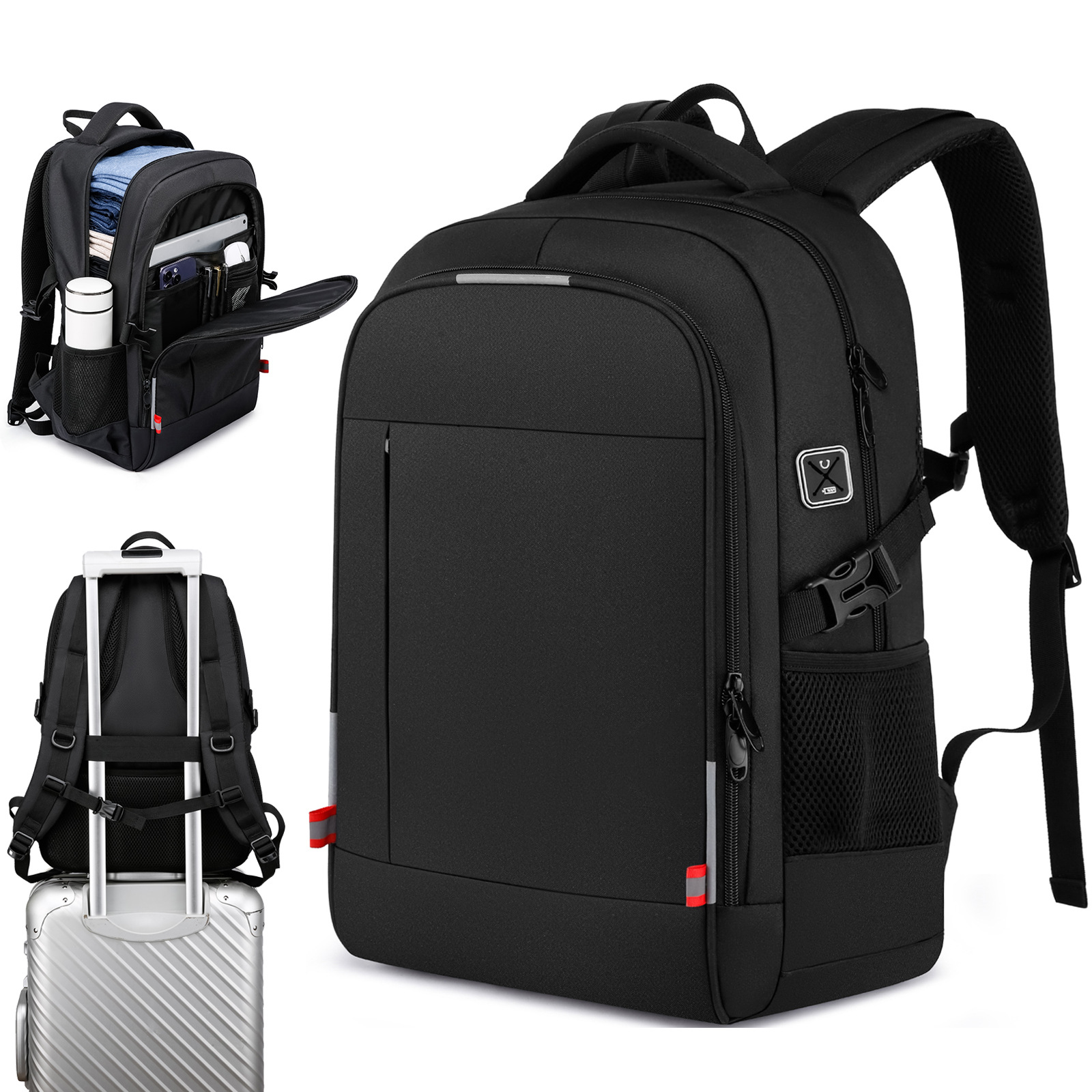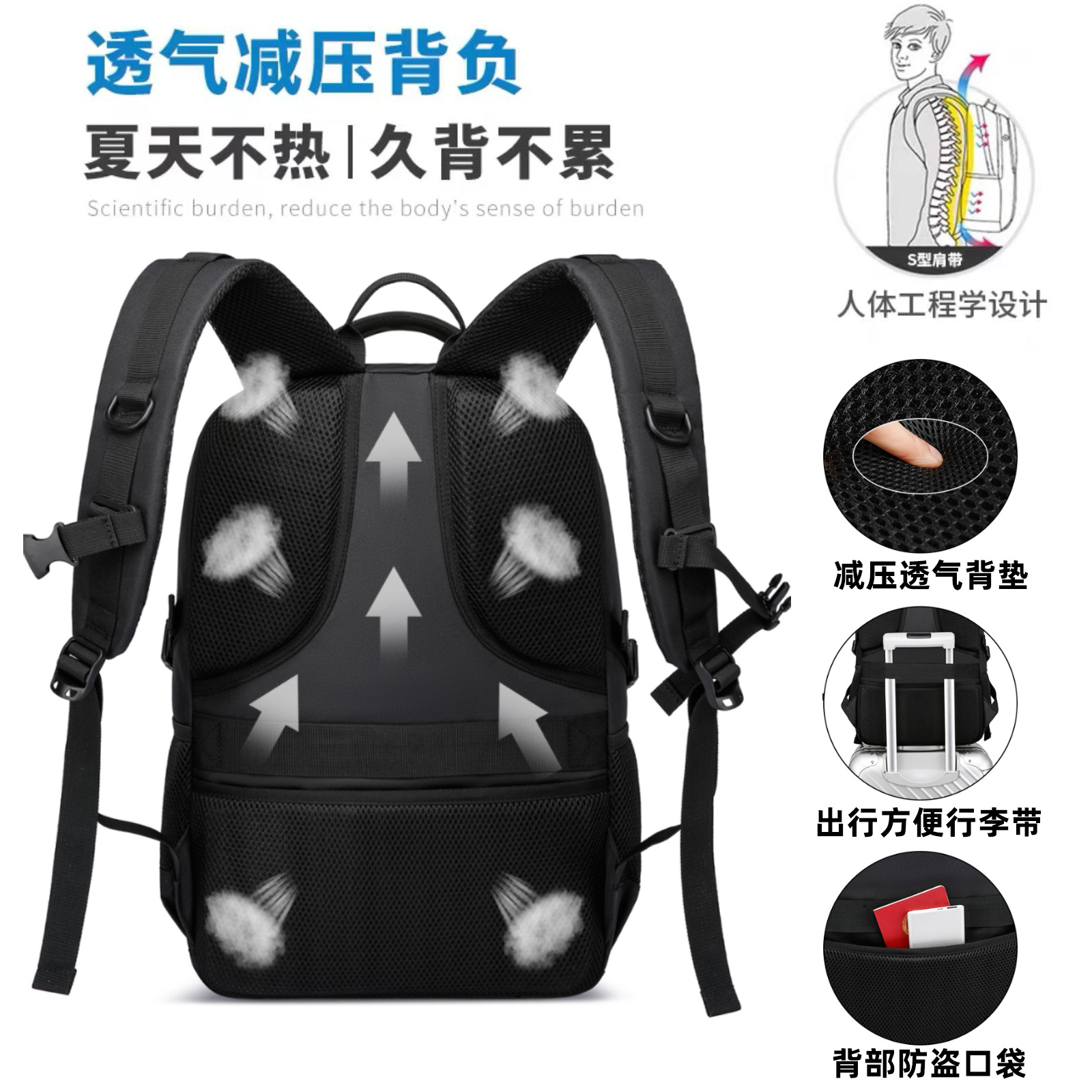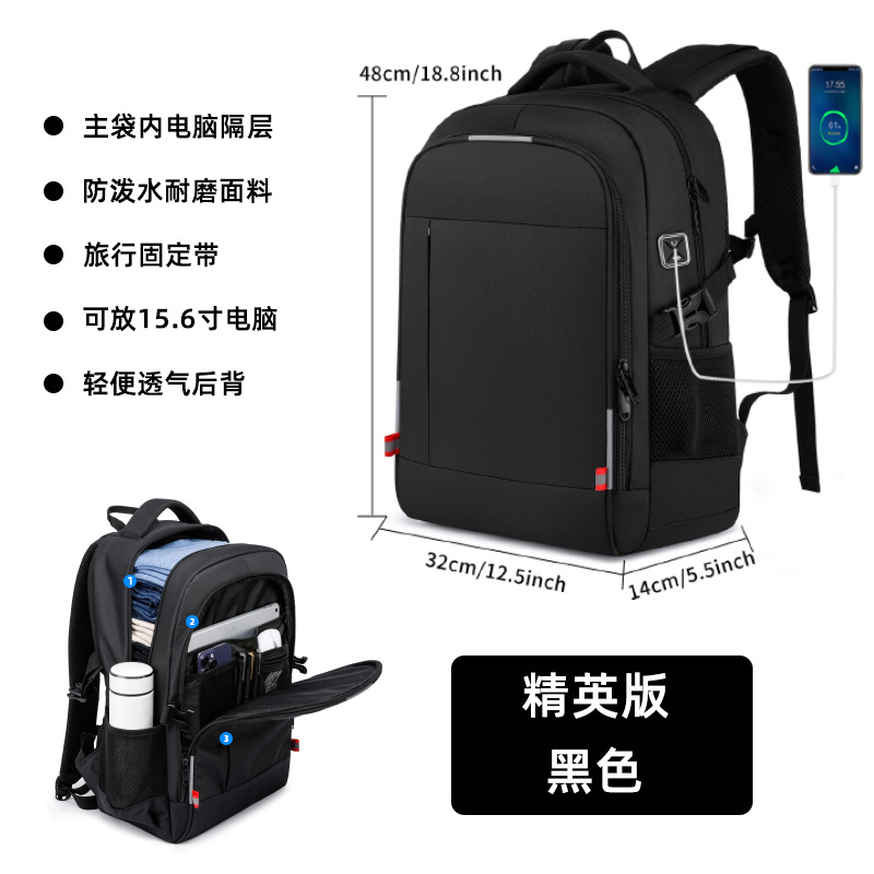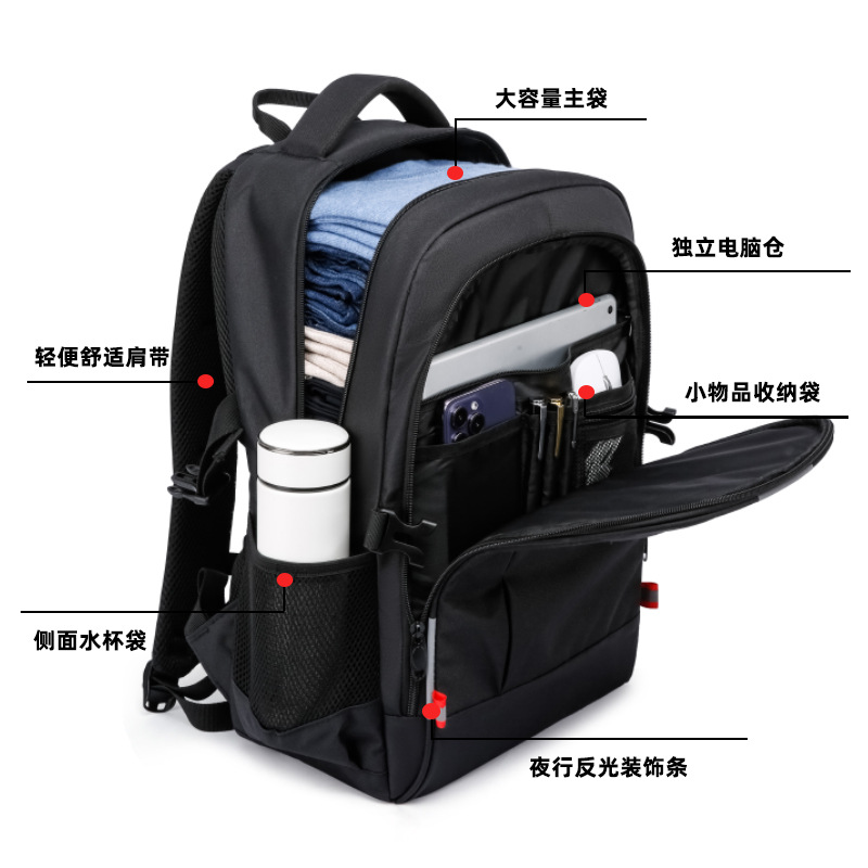 双肩包USB男士商务简约书包防水牛津布旅行背包电脑夜光都市简约