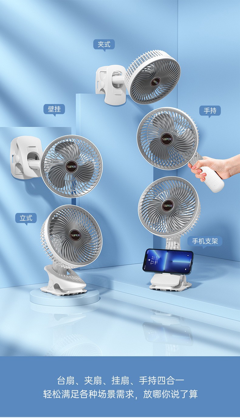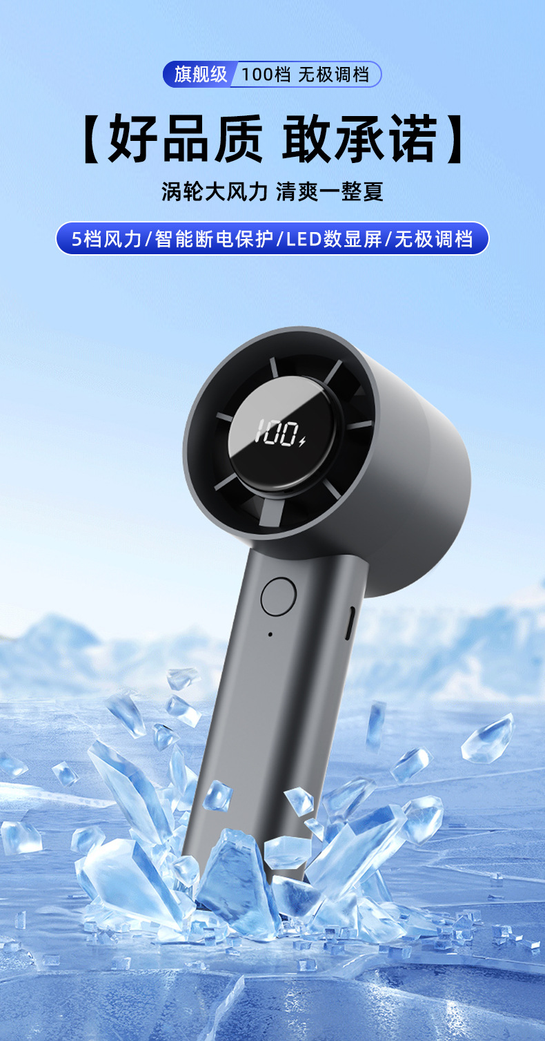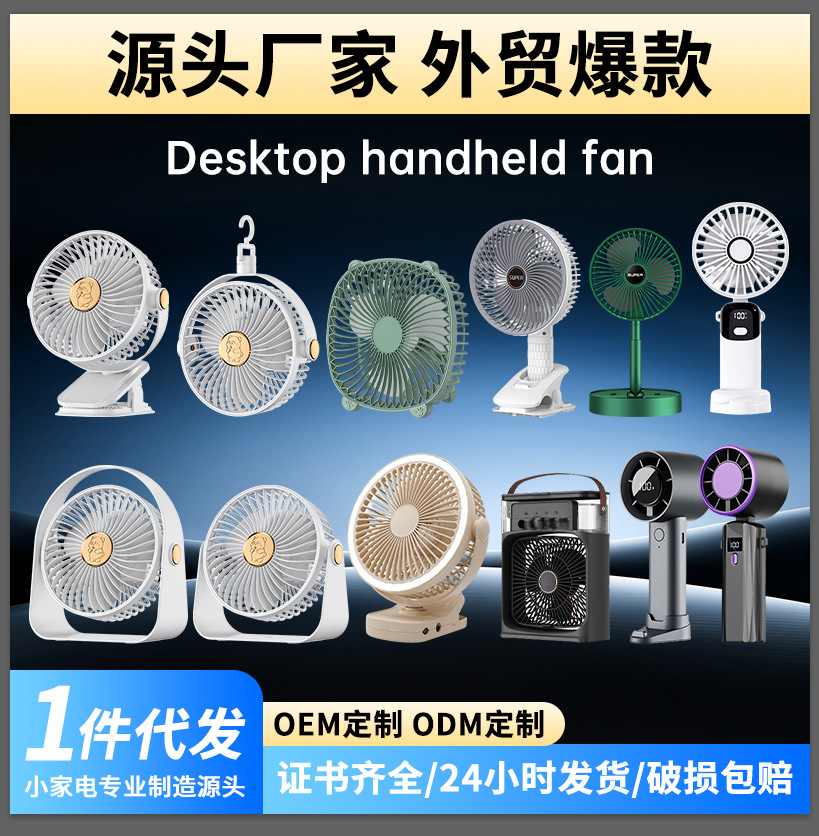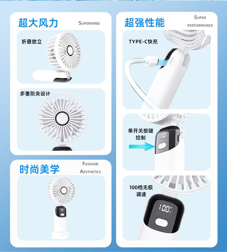 手持小风扇桌面暴力制冷风扇折叠涡轮迷你便携夹子USB充电风扇