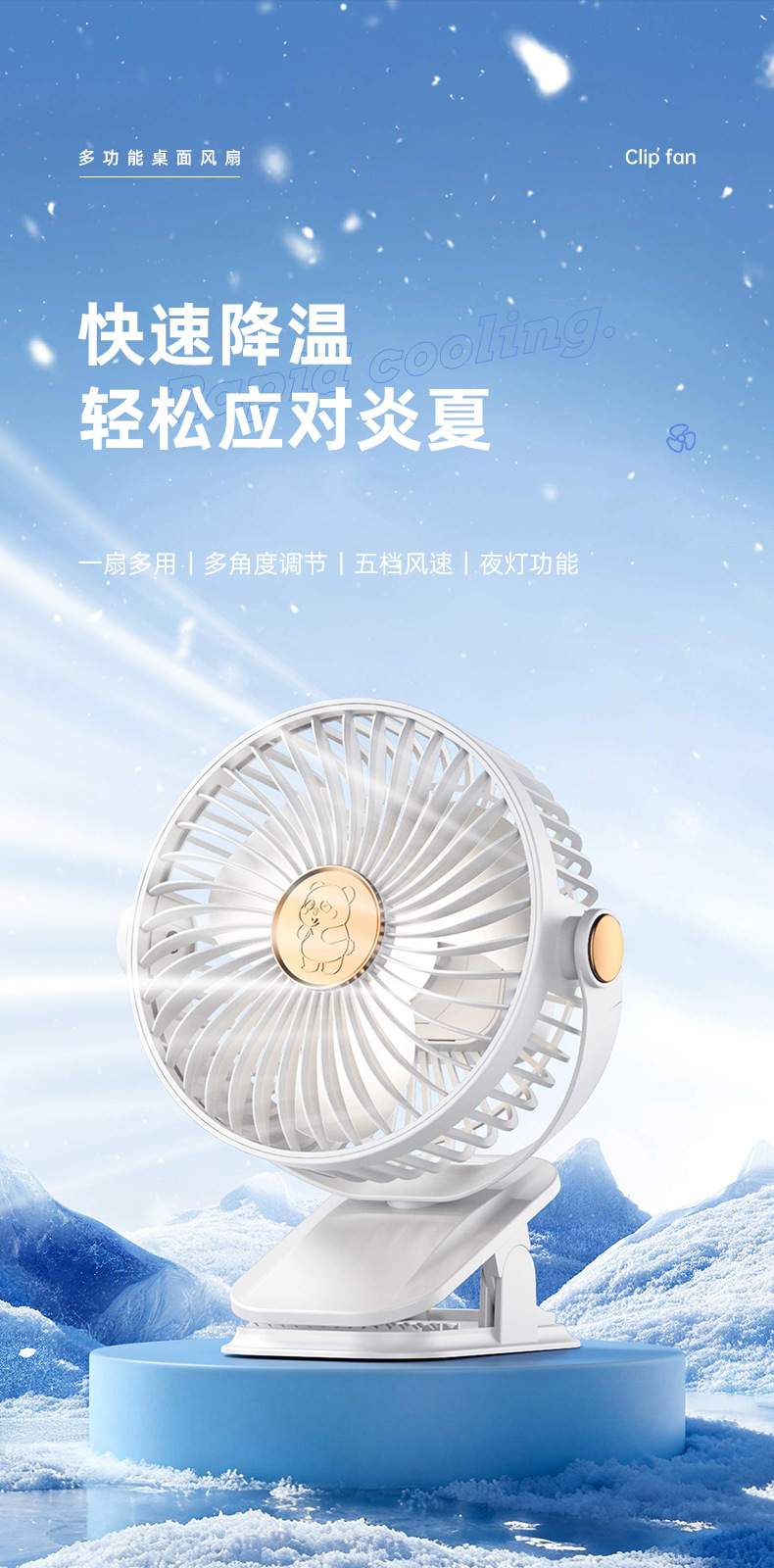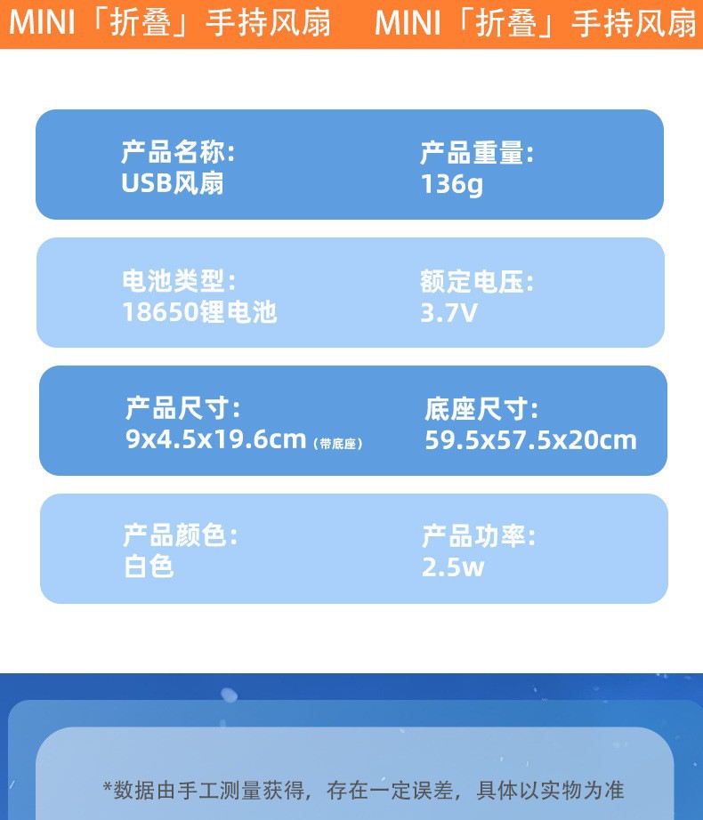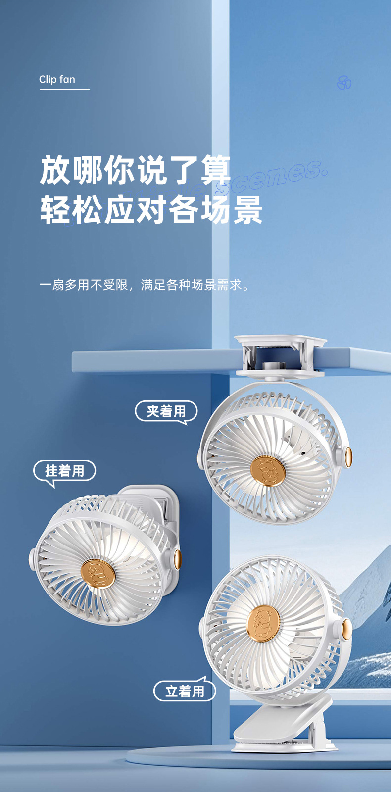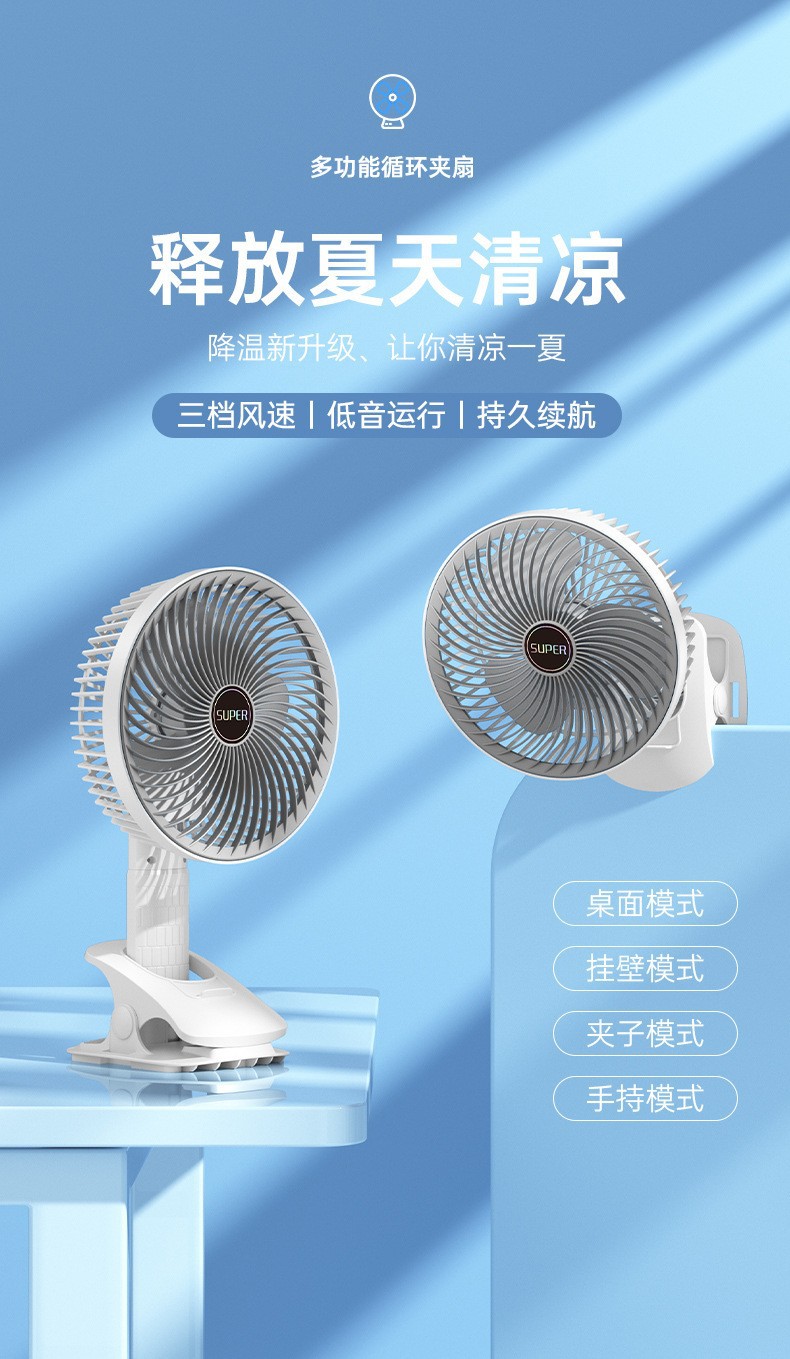 手持小风扇桌面暴力制冷风扇折叠涡轮迷你便携夹子USB充电风扇