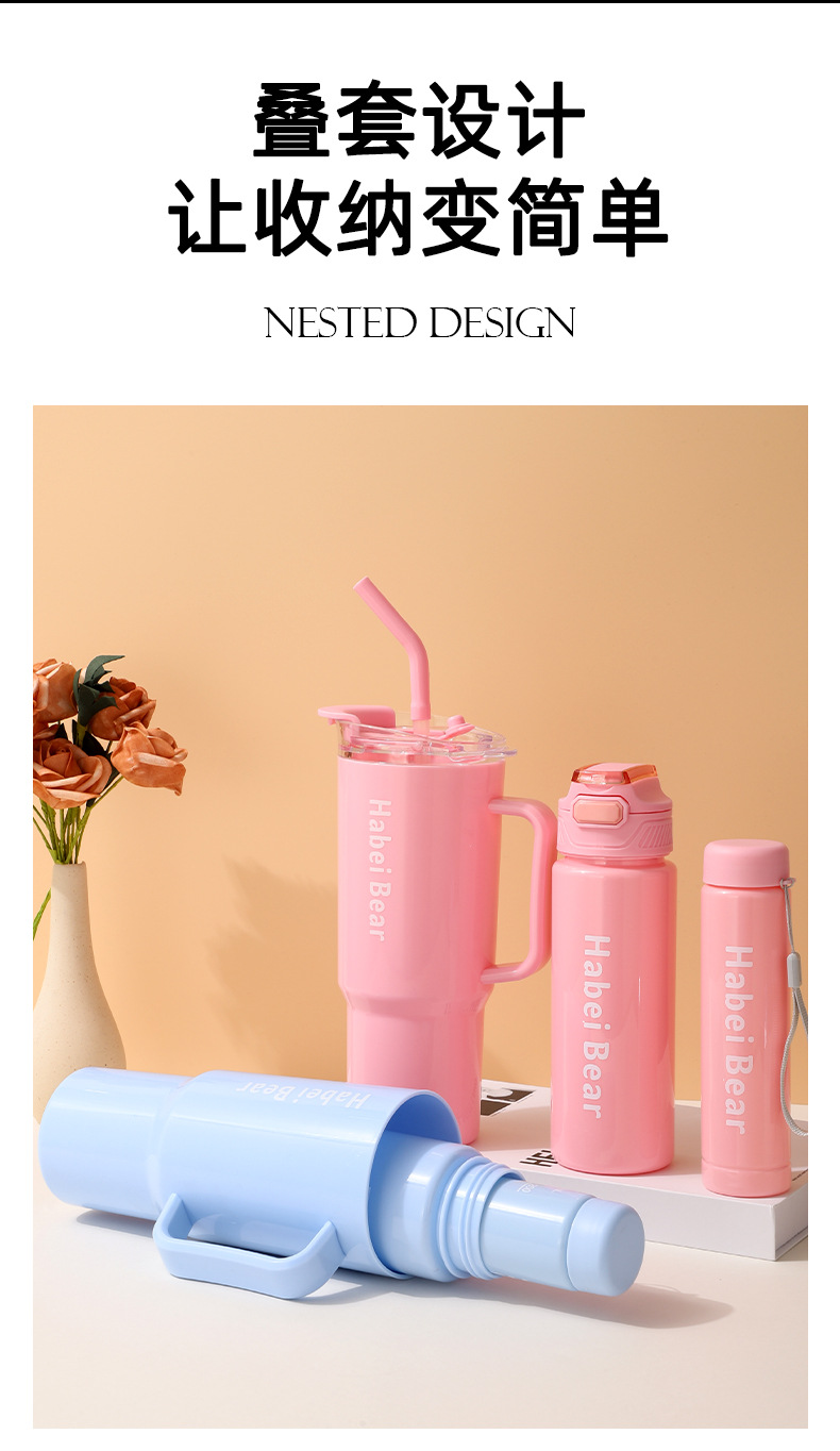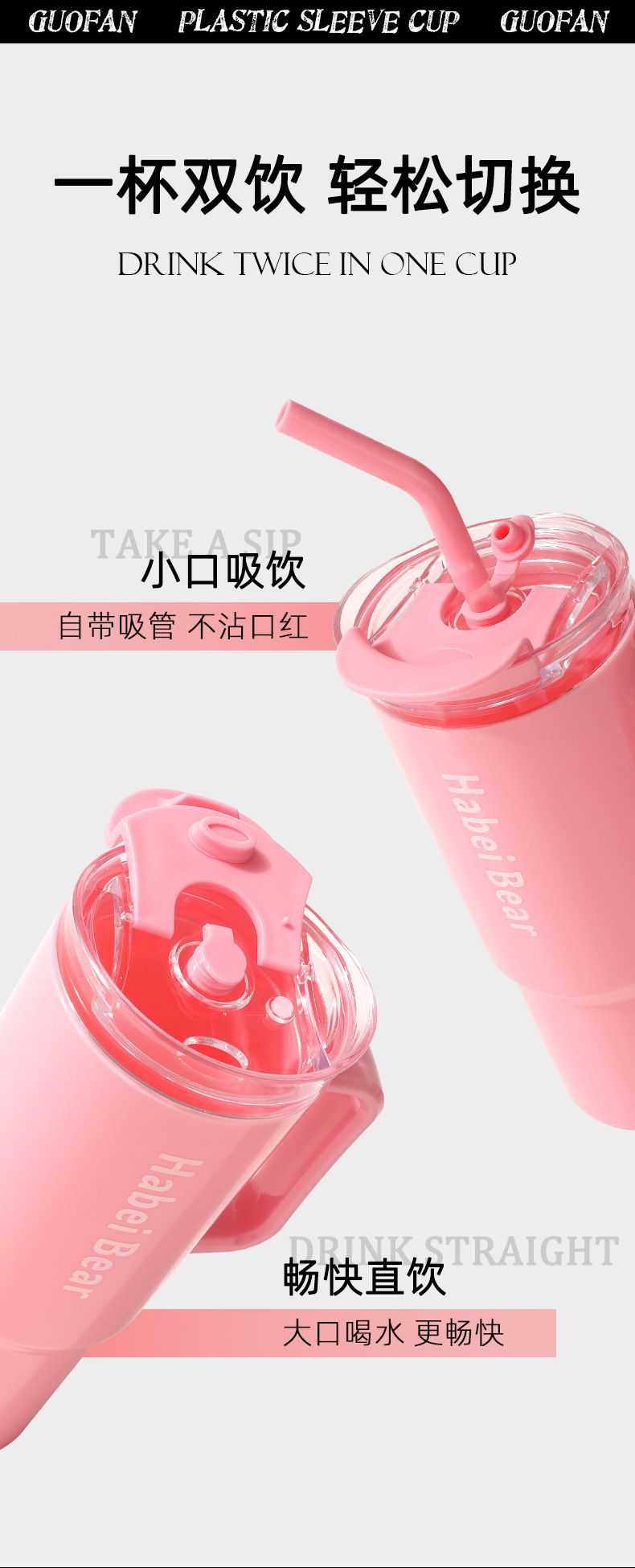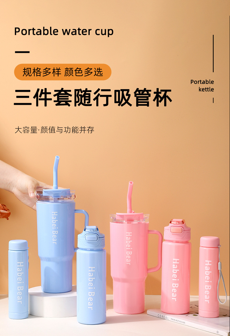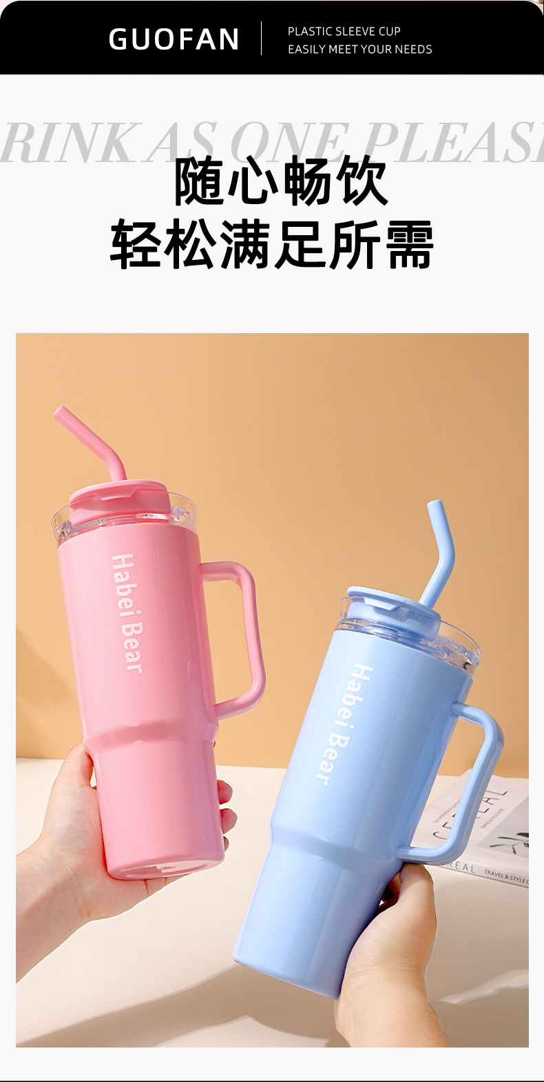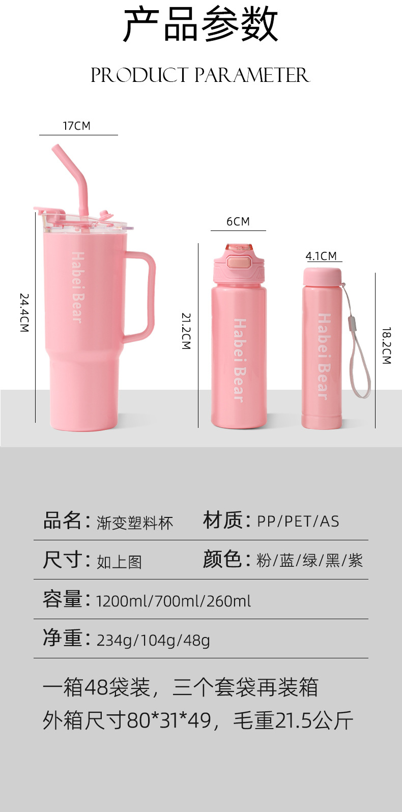 亚马逊40oz大容量吸管冰霸杯渐变塑料杯三件套户外便携随行手柄杯