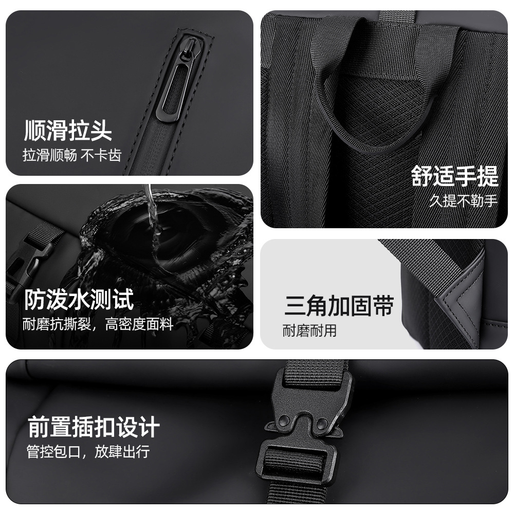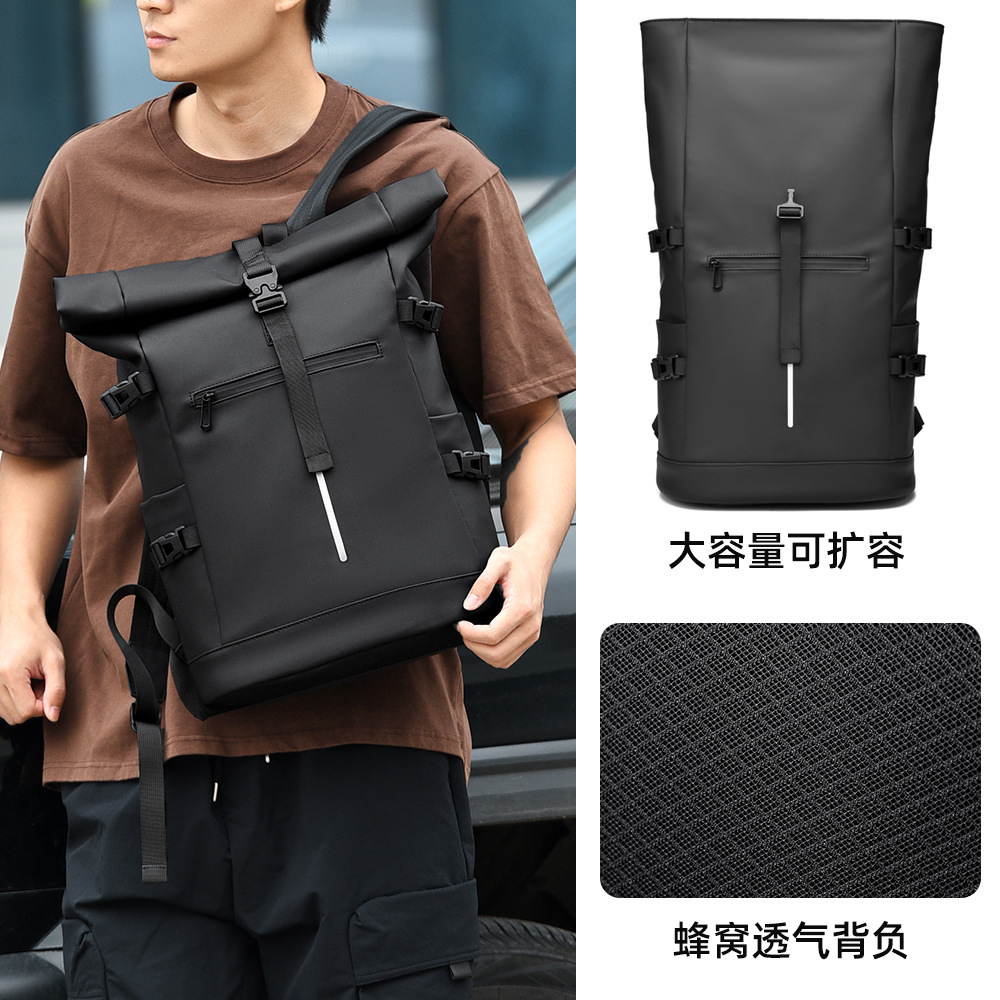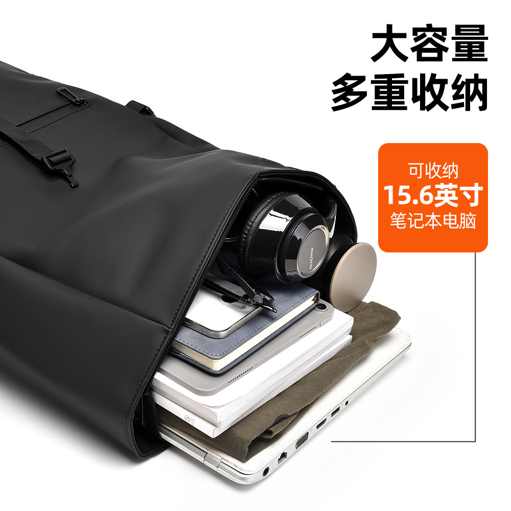 跨境卷口休闲背包15寸电脑包顶卷盖双肩包通勤休闲大学生通勤书包