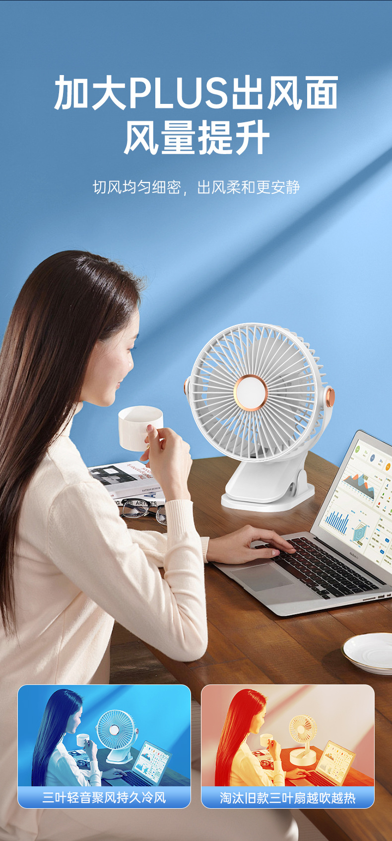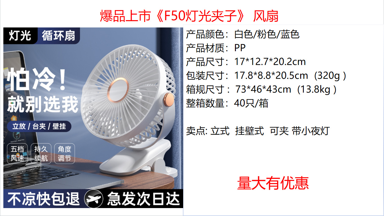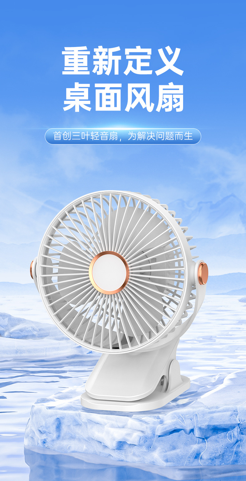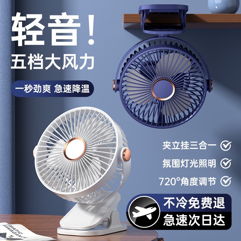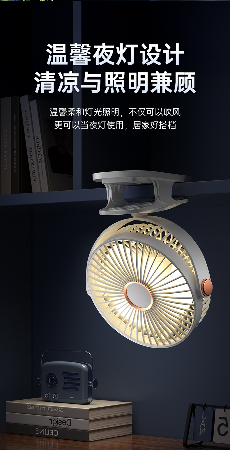 桌面小型学生宿舍电扇床头露营迷你usb床头风扇 夹式小夜灯电风扇