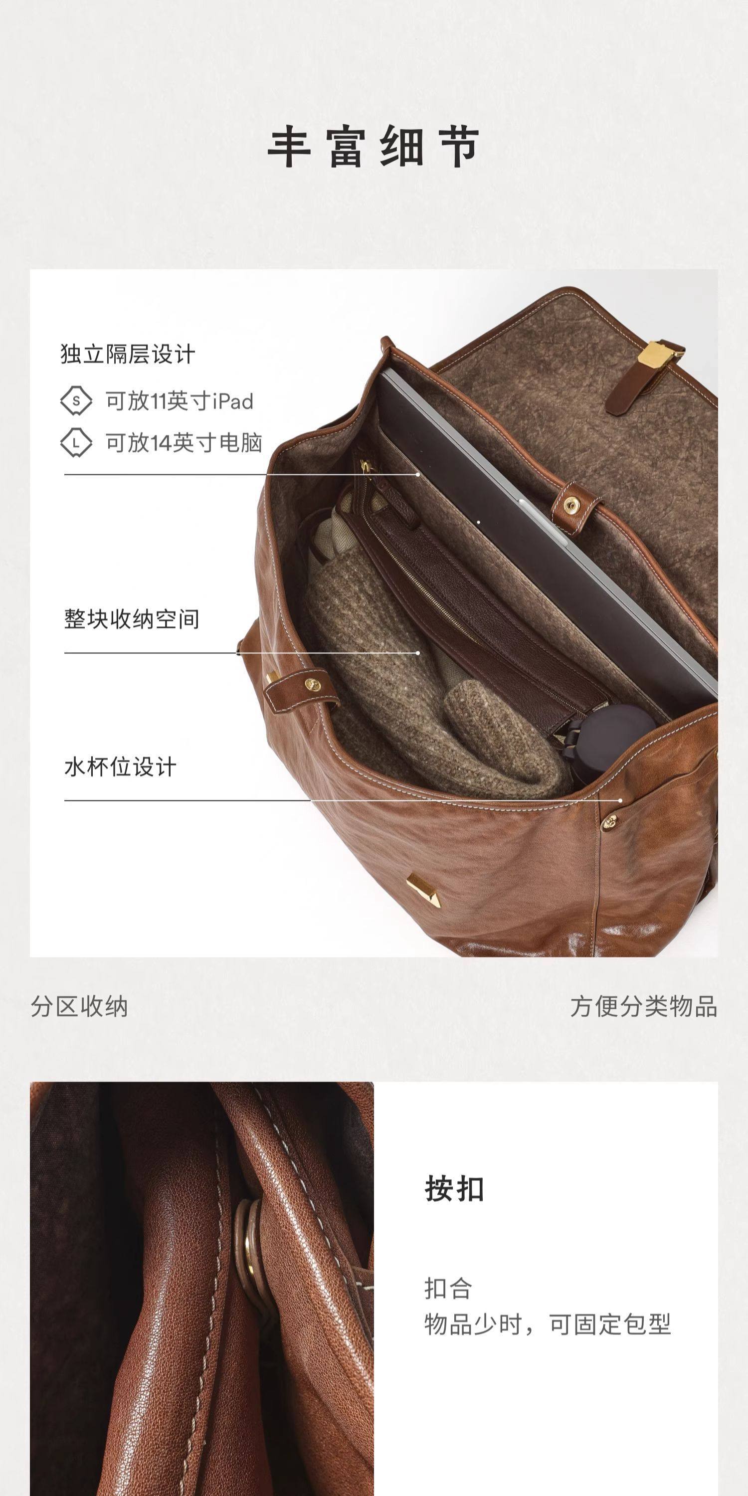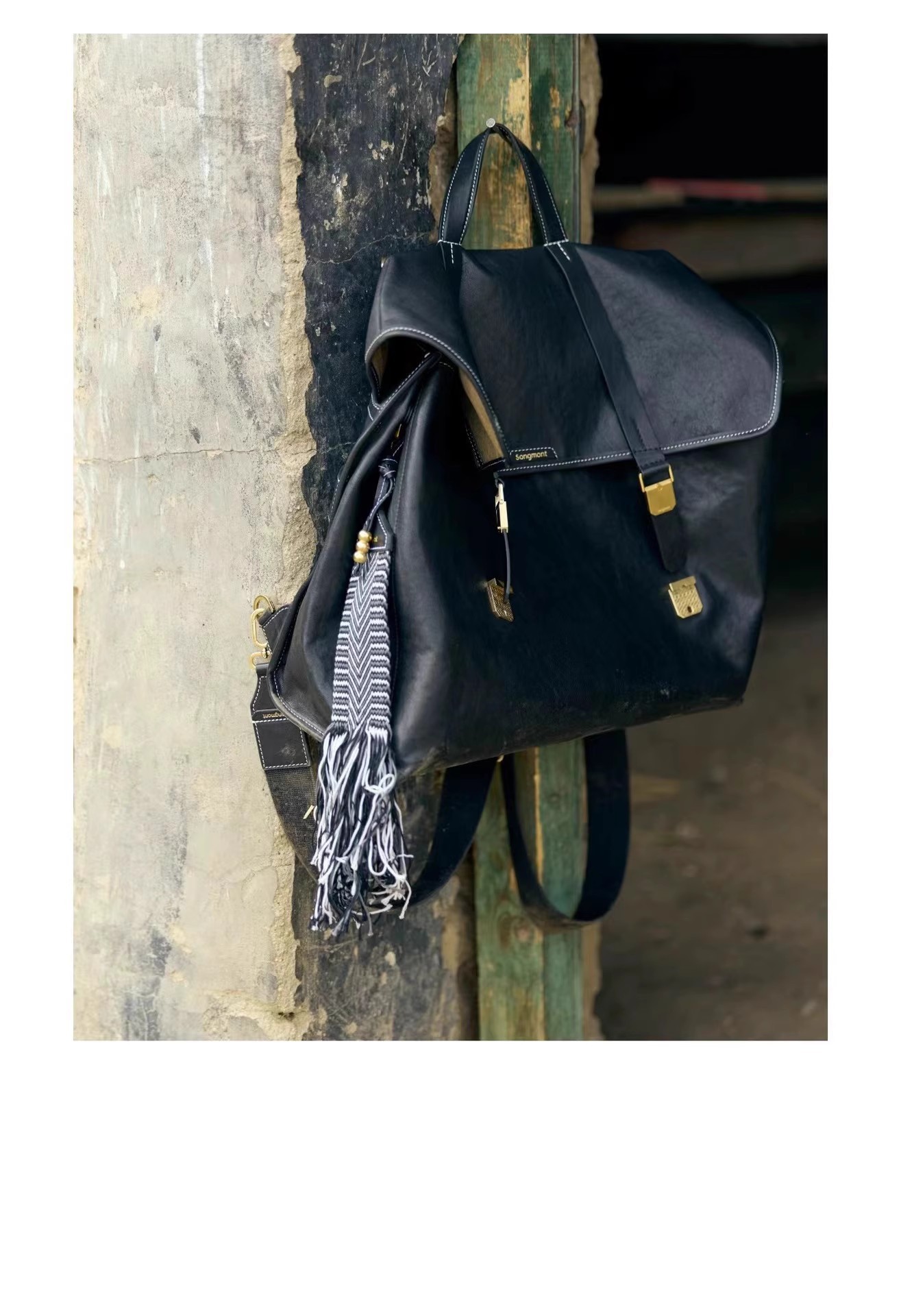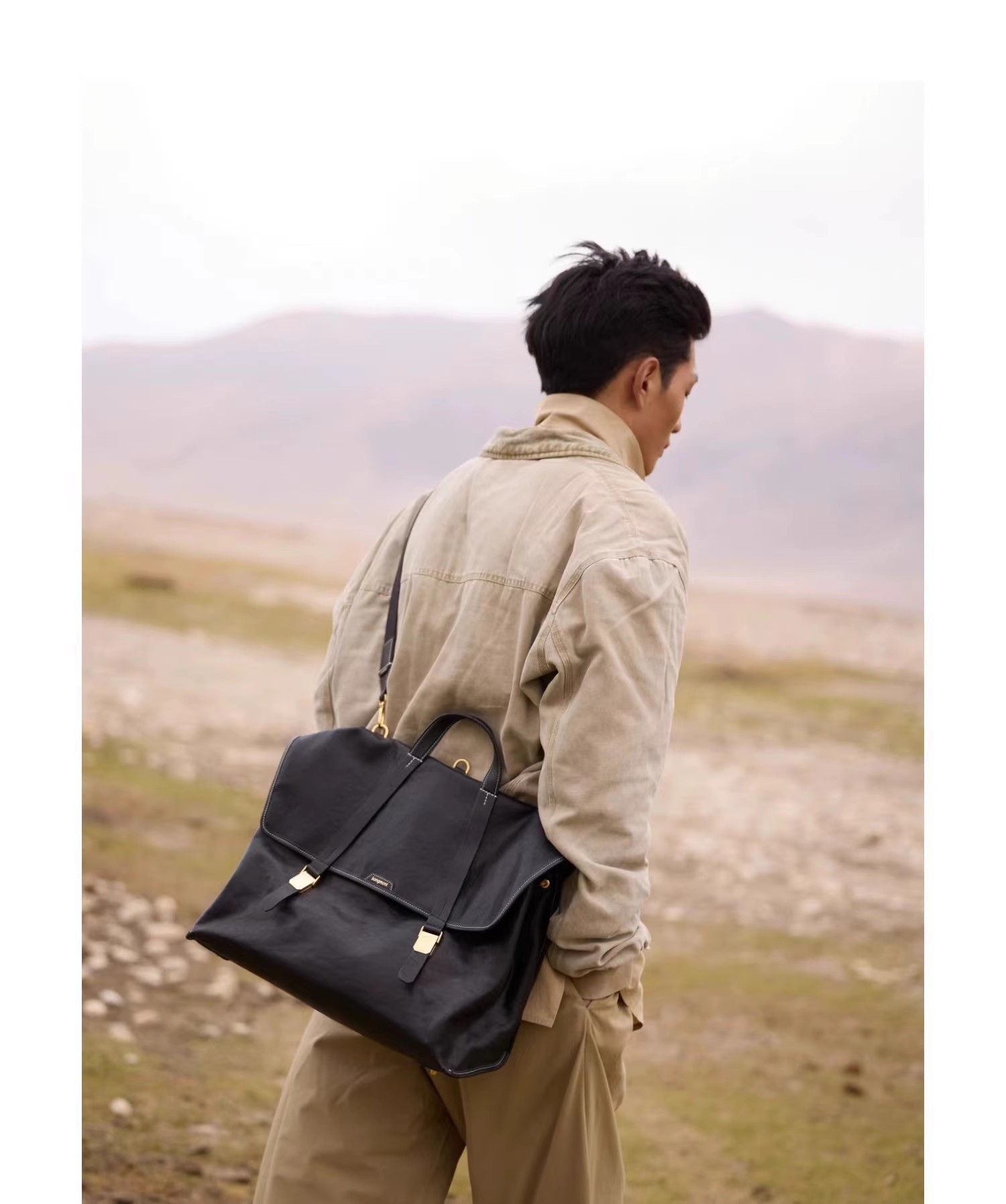 Song崧下山行系列游历公文包无性别复古通勤植鞣皮双肩斜挎包