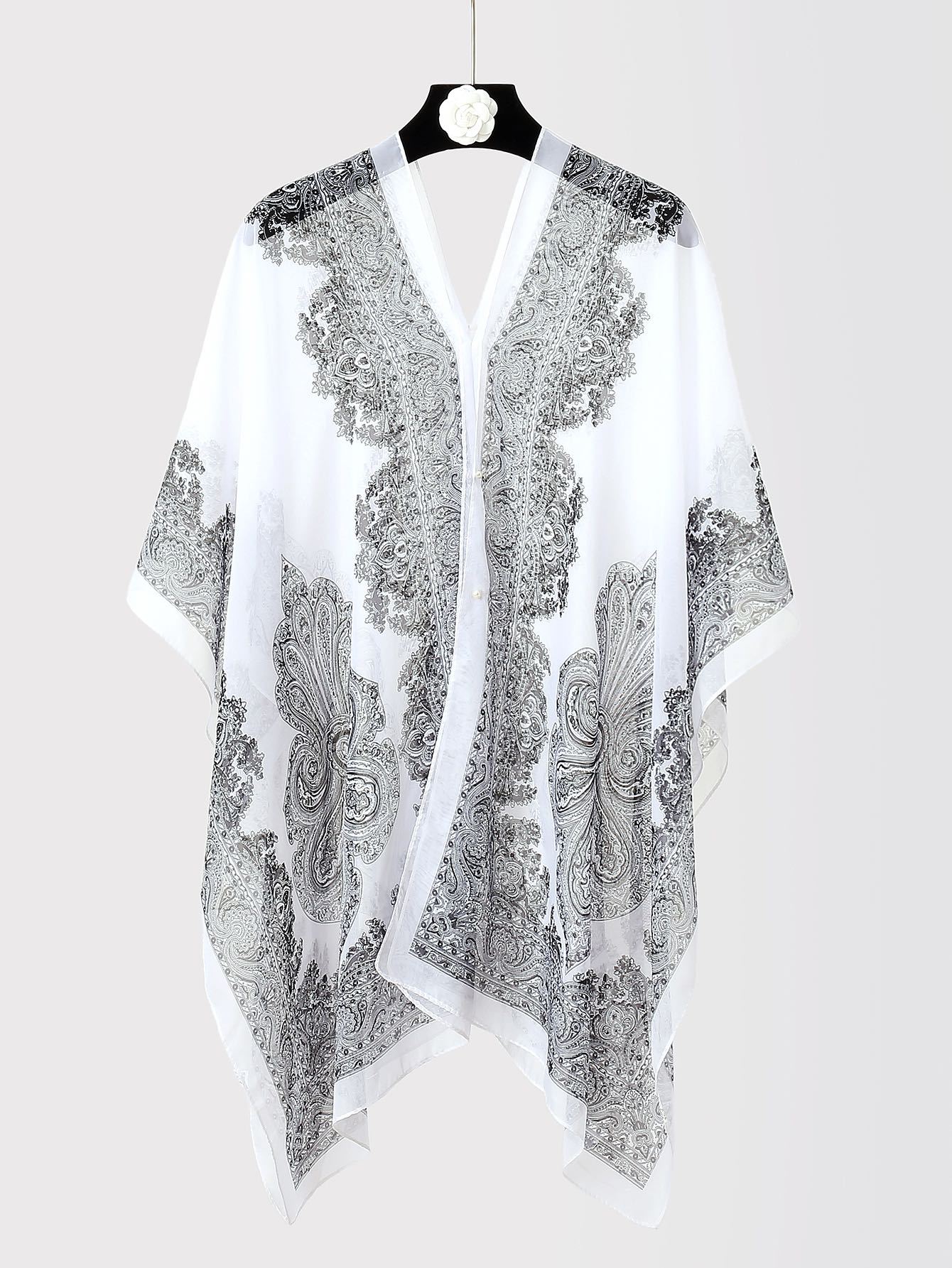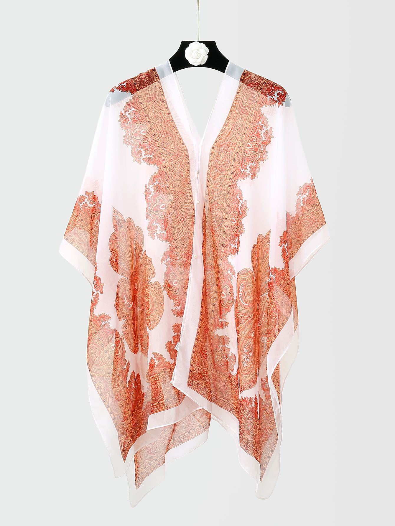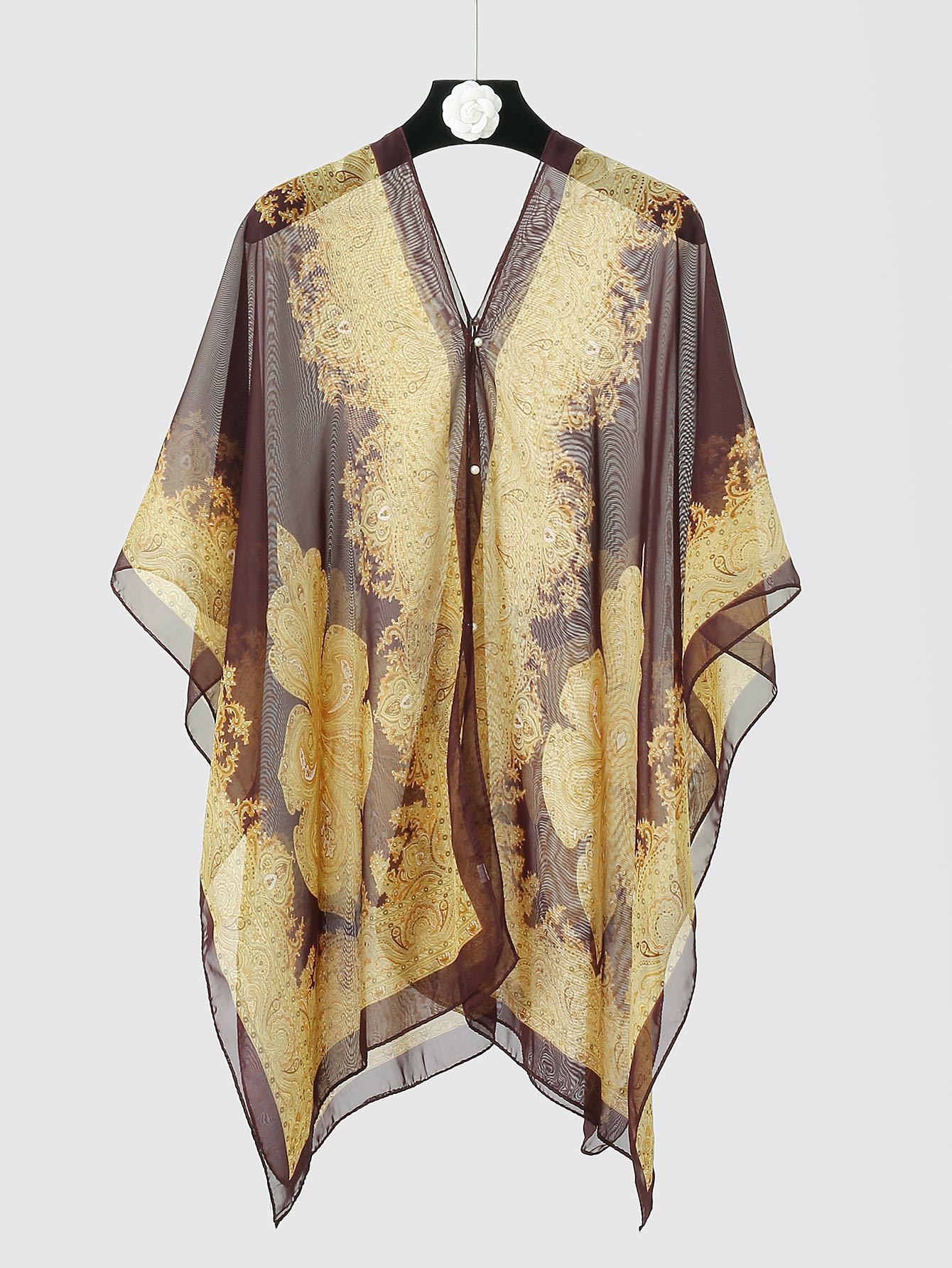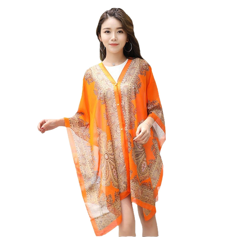 防晒披肩骑车沙滩多用百变丝巾雪纺印花防紫外线腰果花订珍珠披肩