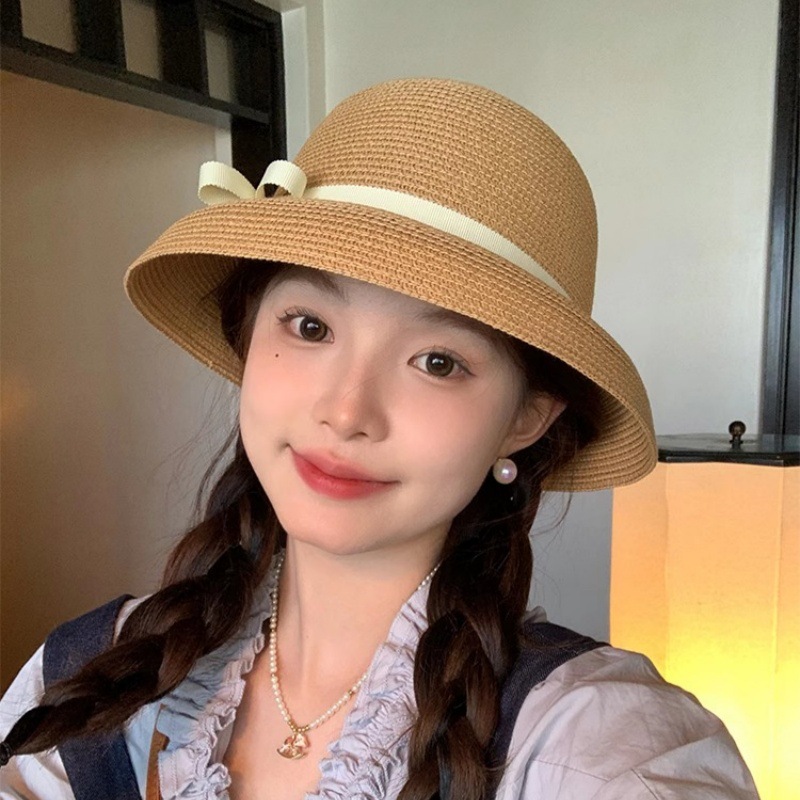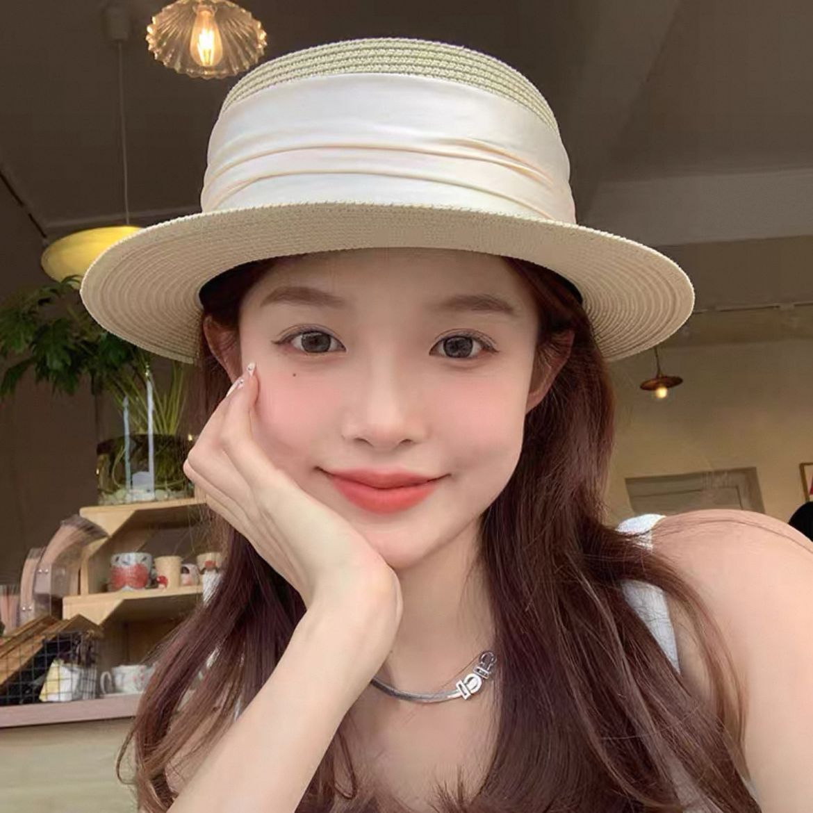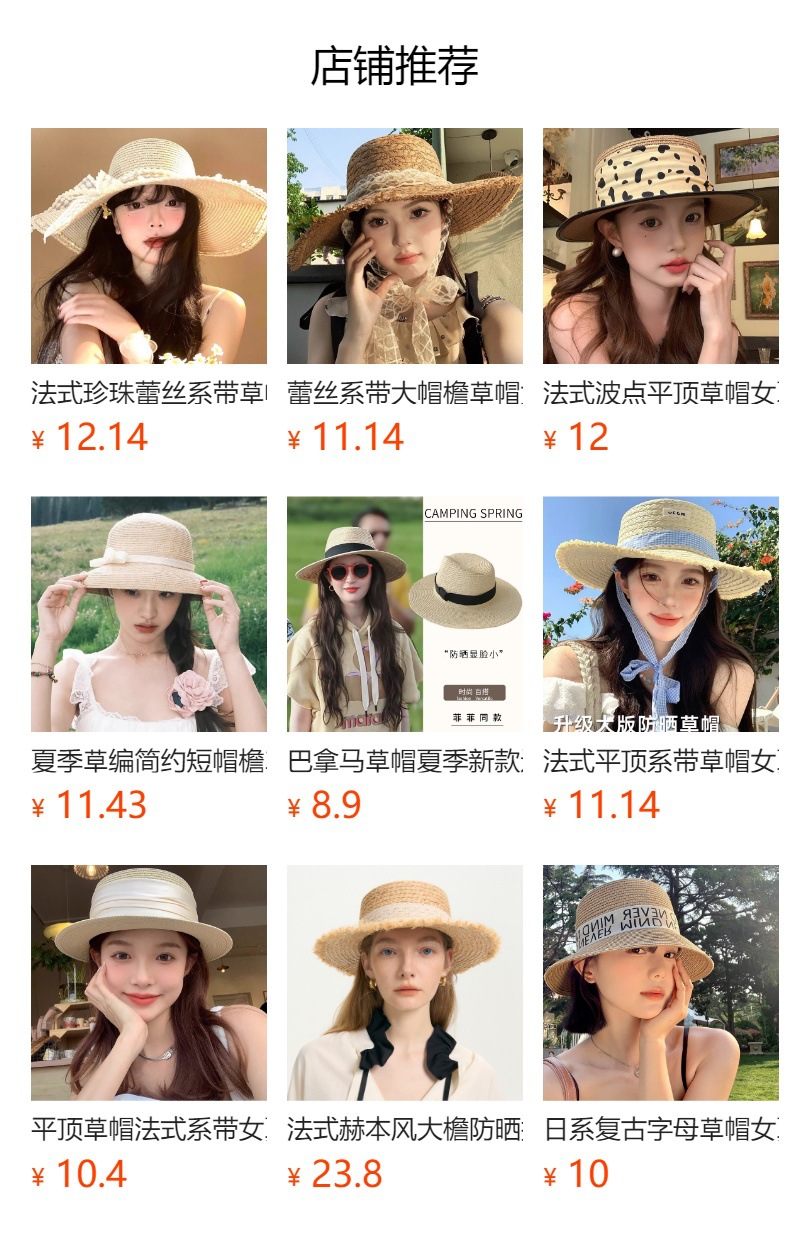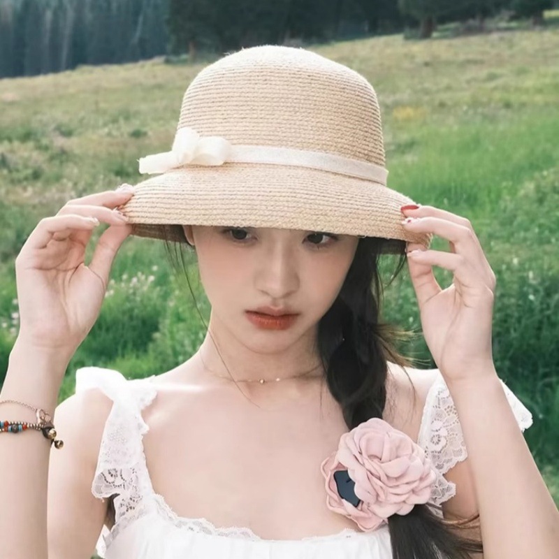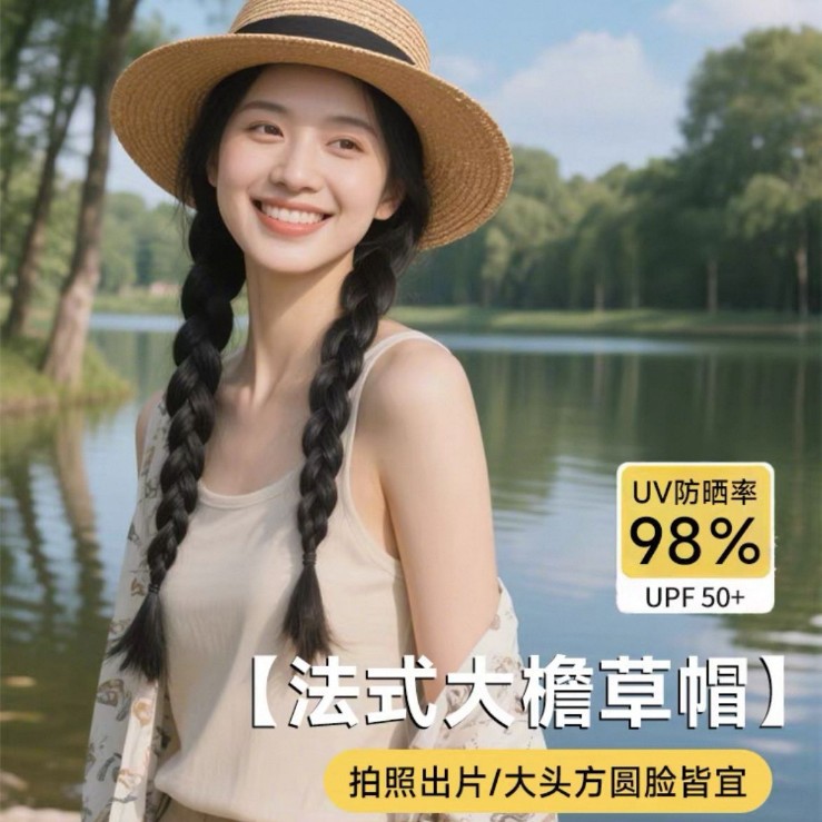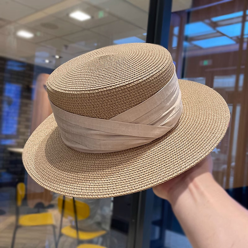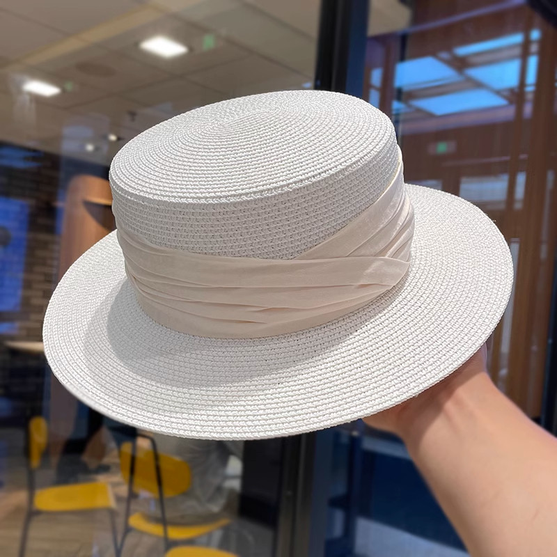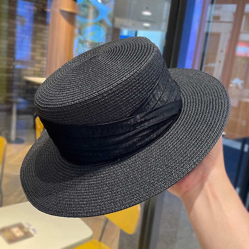 法式平顶草帽女款海边沙滩帽网红出片礼帽草编防晒帽子女夏季拍照
