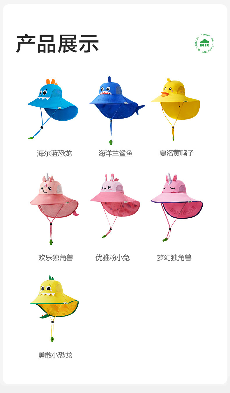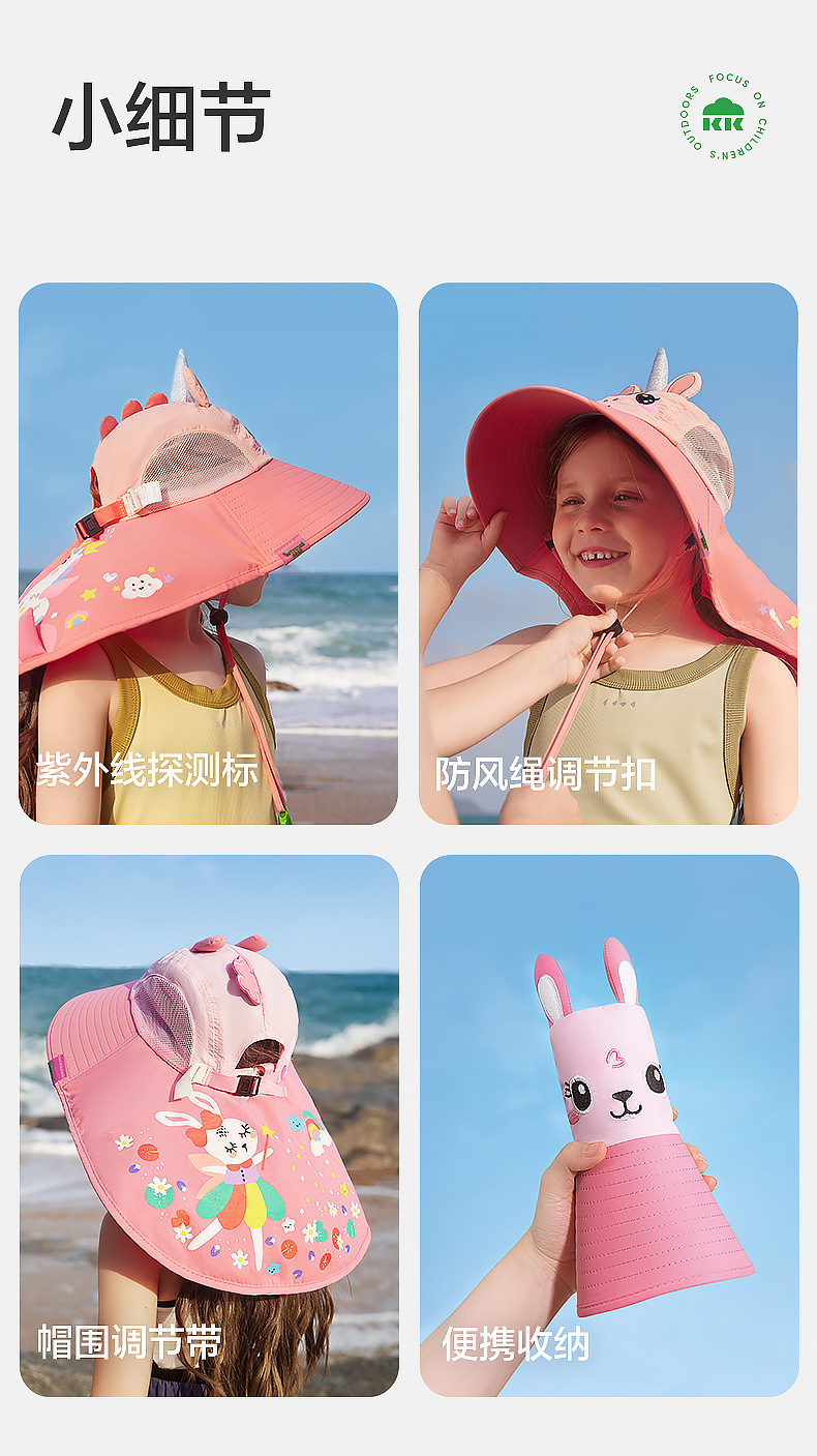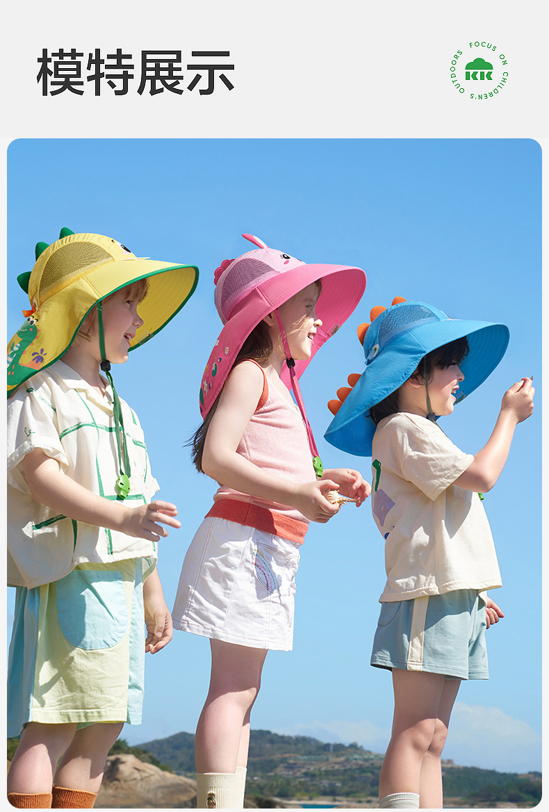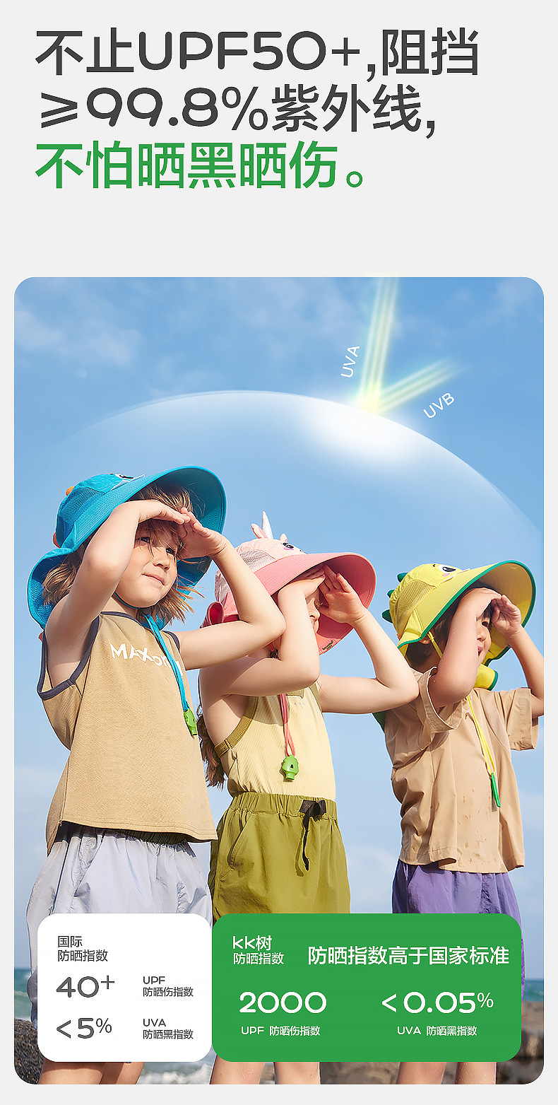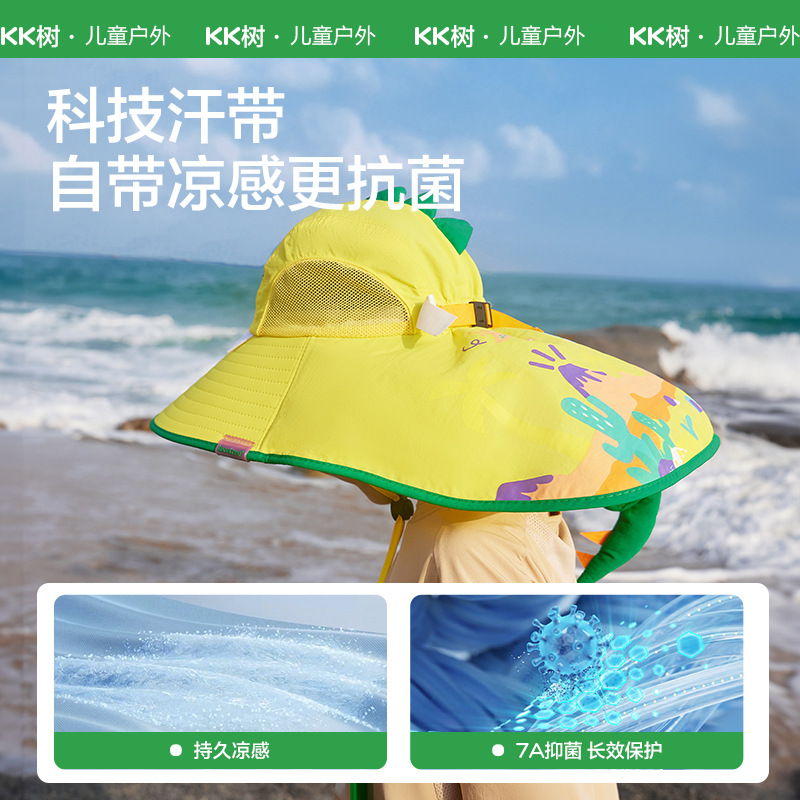 KK树儿童防晒帽防紫外线宝宝遮阳太阳帽男童女童夏沙滩帽子大帽檐