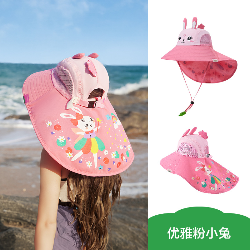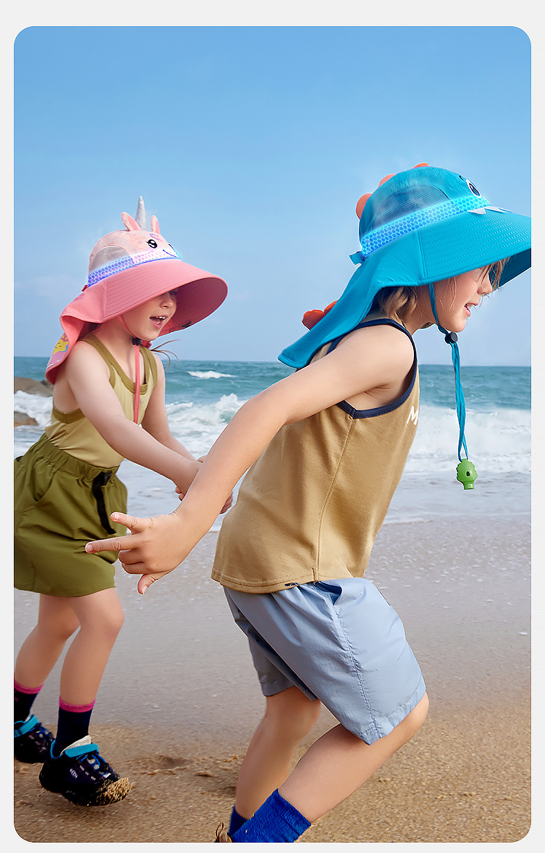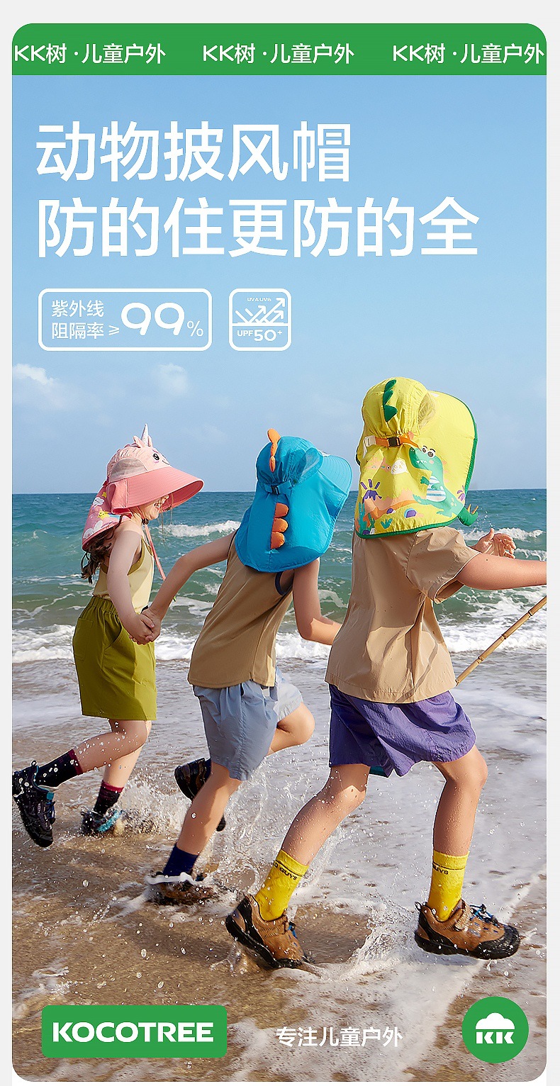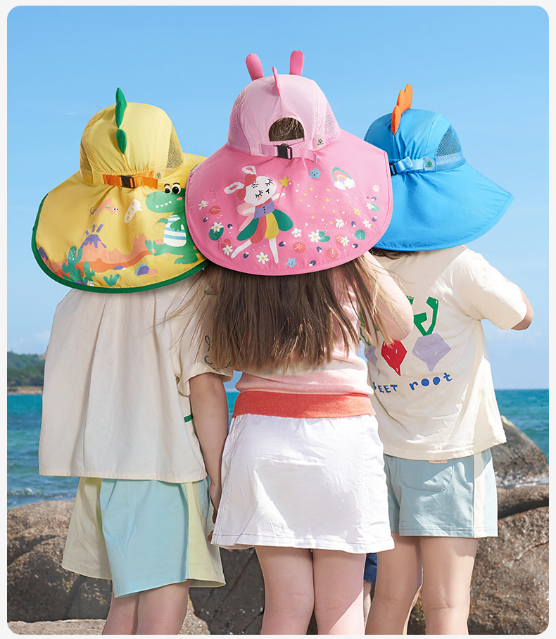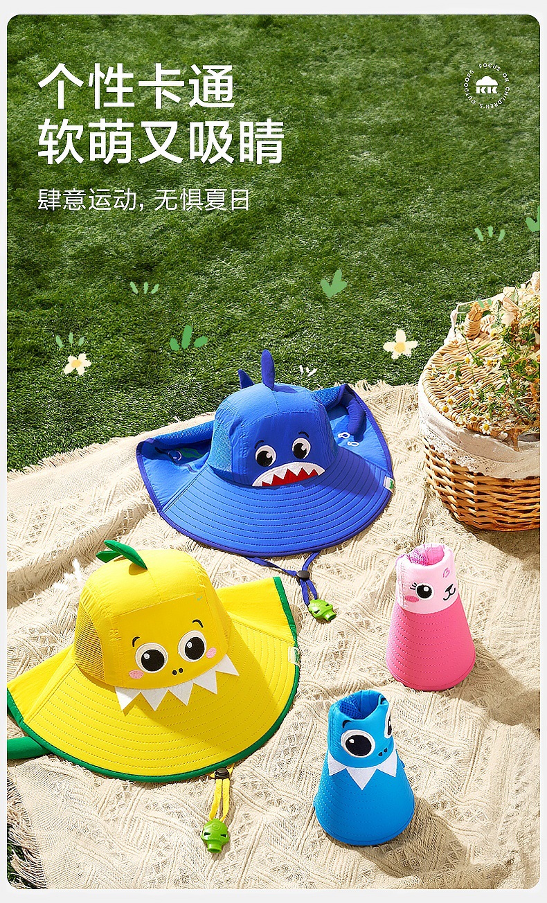 KK树儿童防晒帽防紫外线宝宝遮阳太阳帽男童女童夏沙滩帽子大帽檐