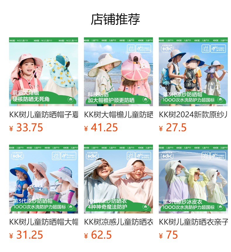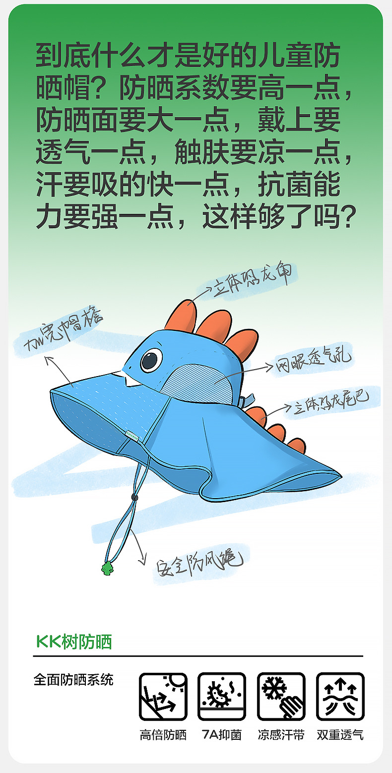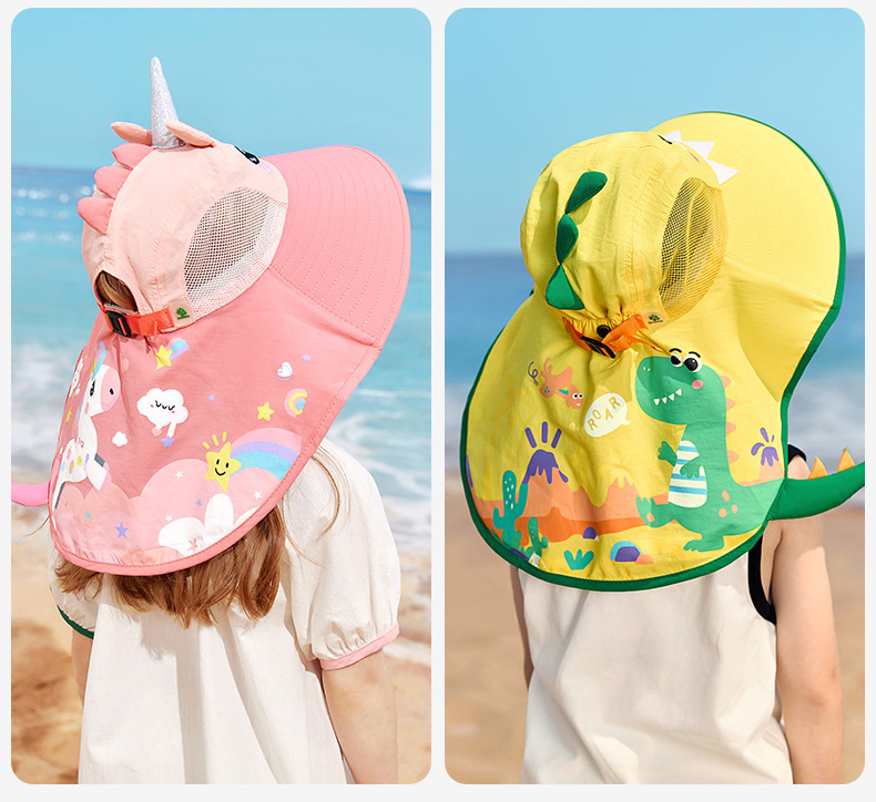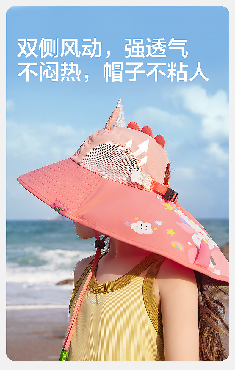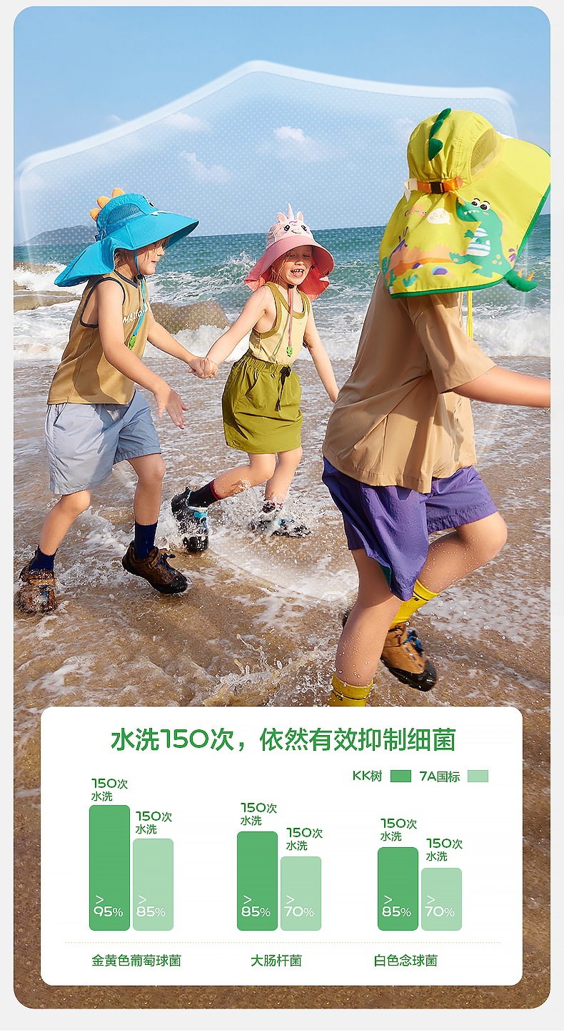 KK树儿童防晒帽防紫外线宝宝遮阳太阳帽男童女童夏沙滩帽子大帽檐