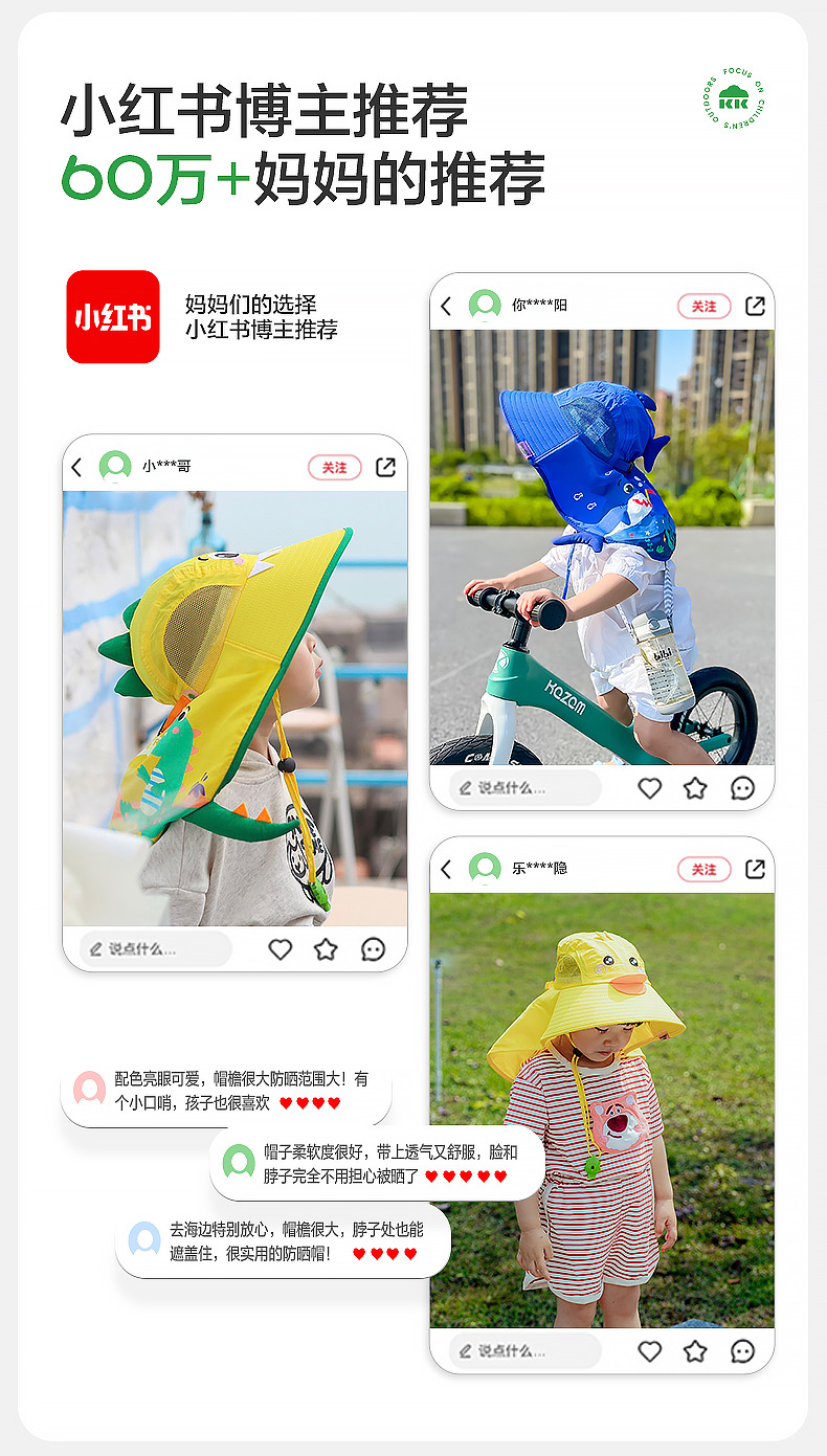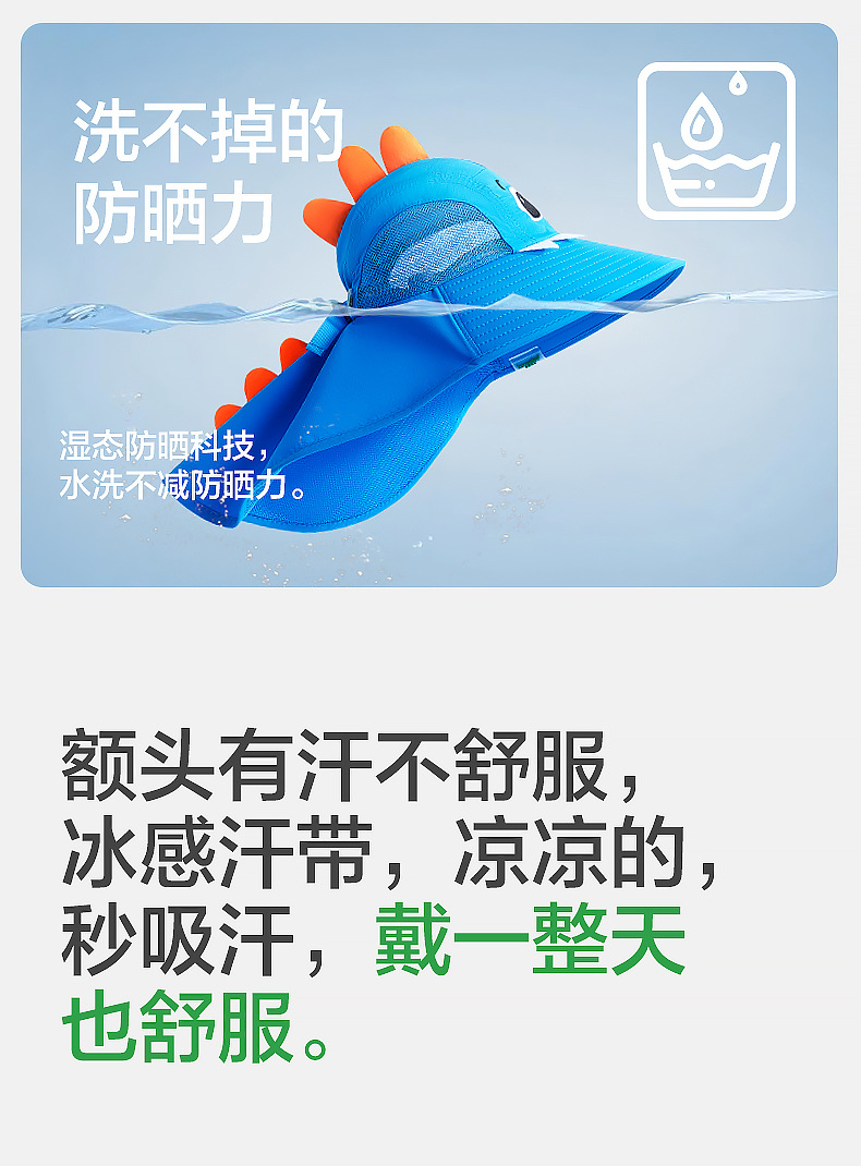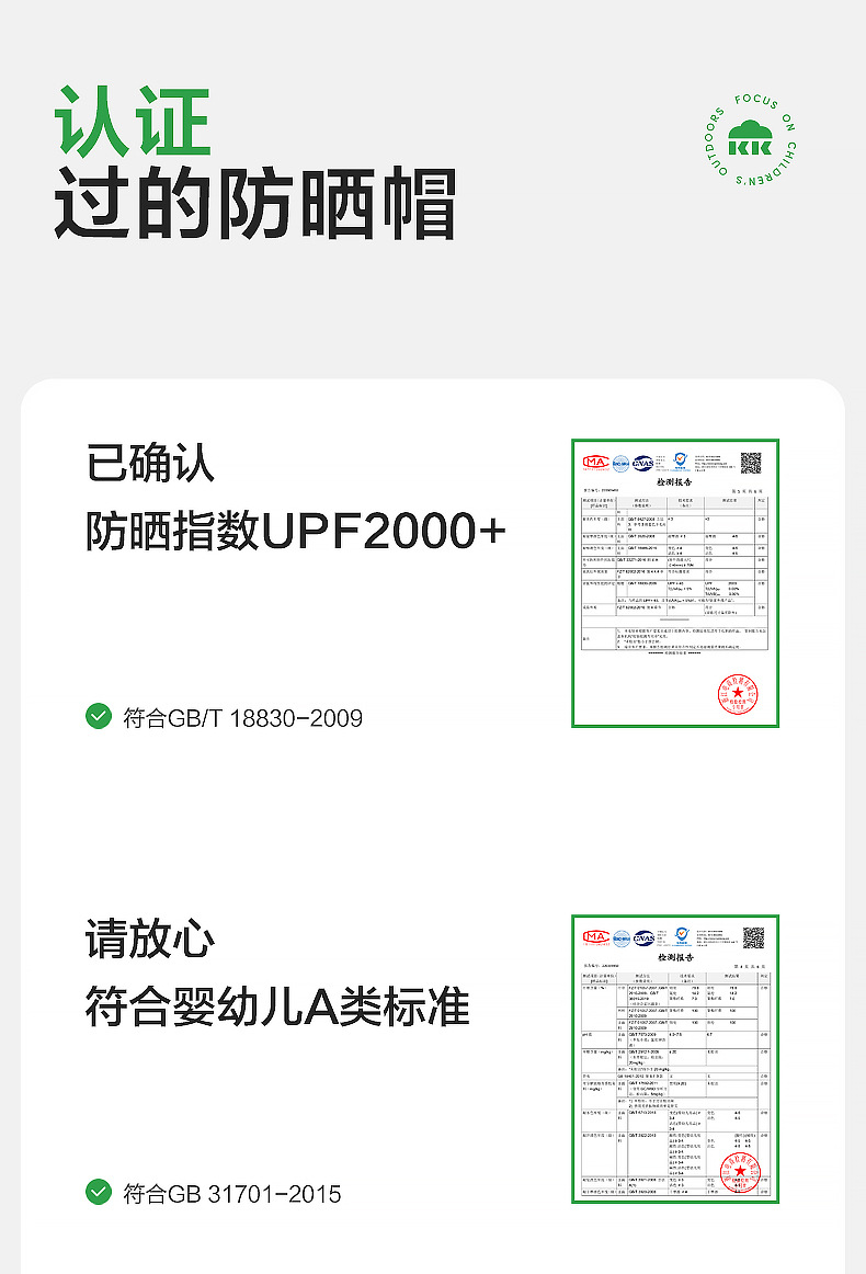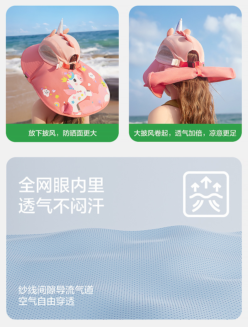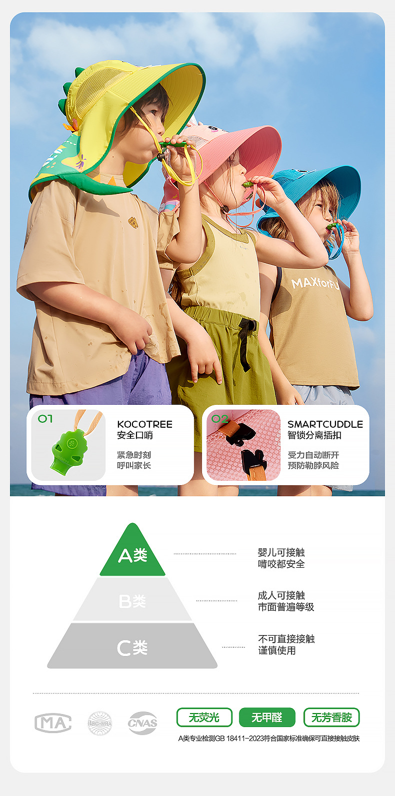 KK树儿童防晒帽防紫外线宝宝遮阳太阳帽男童女童夏沙滩帽子大帽檐