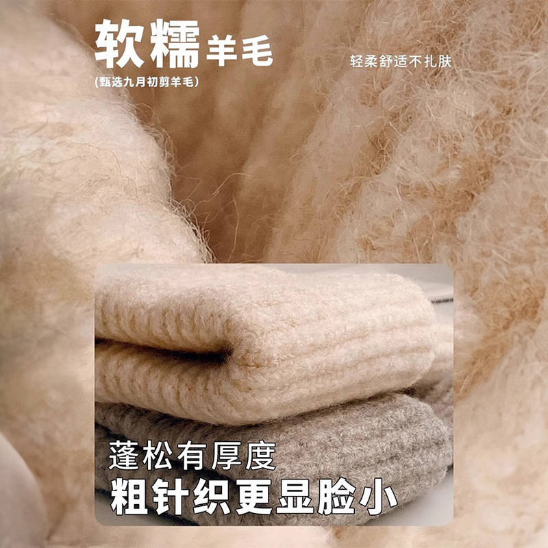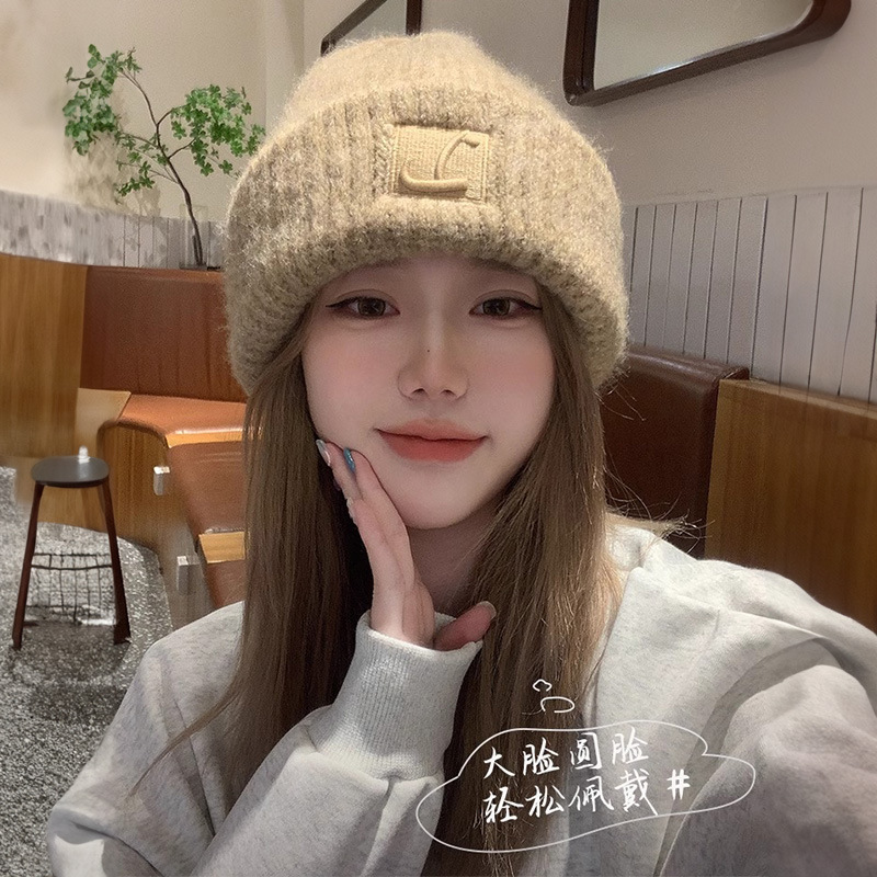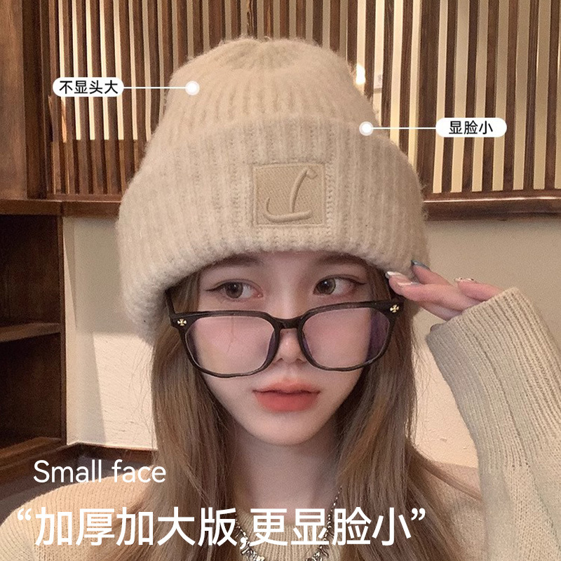 毛线帽护耳女秋冬新款大头围针织加厚保暖冷帽堆堆帽子显脸小冬季