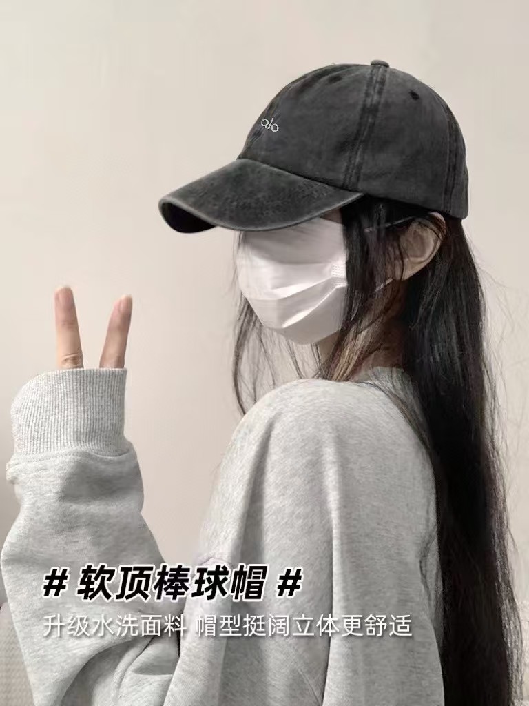 alo 新款瑜伽帽子男女硬顶做旧棒球帽鸭舌帽情侣款透气运动防晒帽