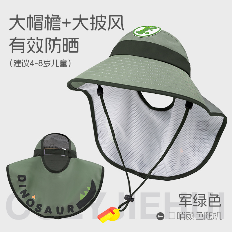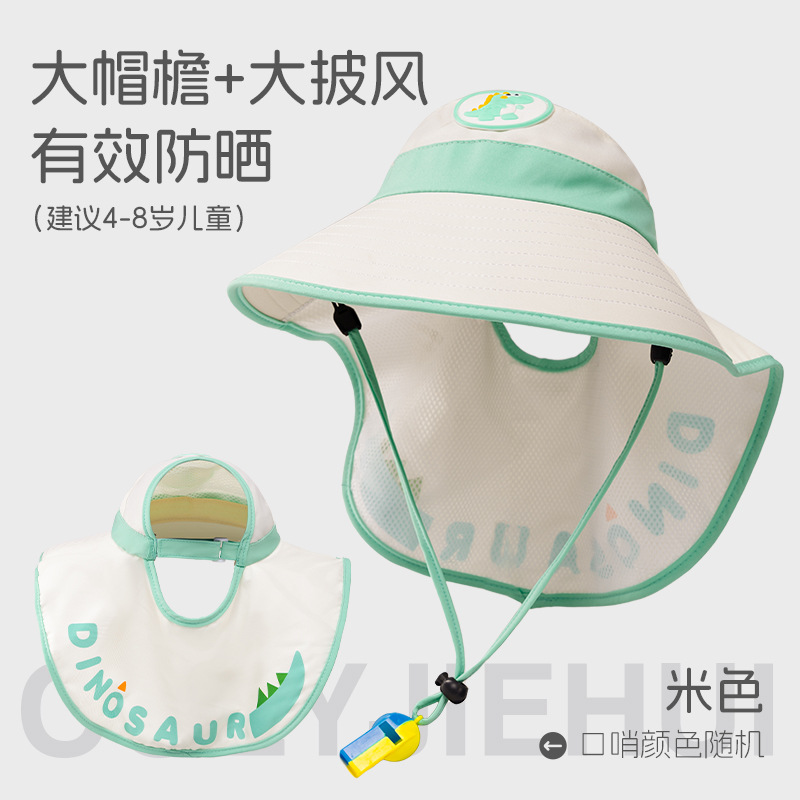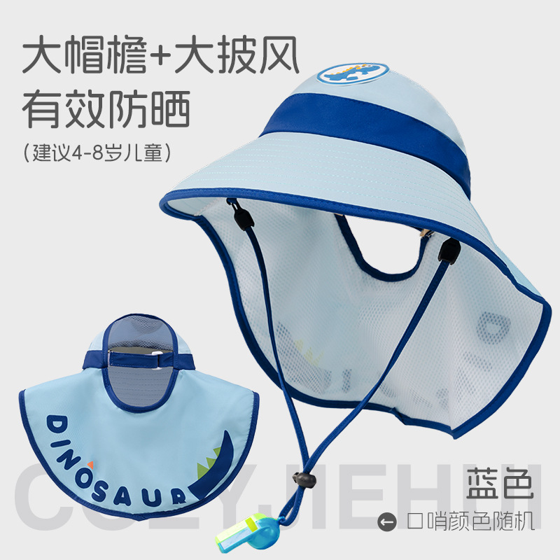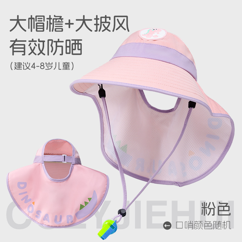 儿童防晒帽夏季遮阳防紫外线男女童户外郊游遮阳帽披肩大帽檐薄款