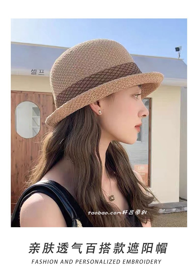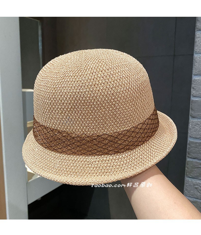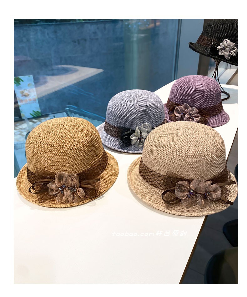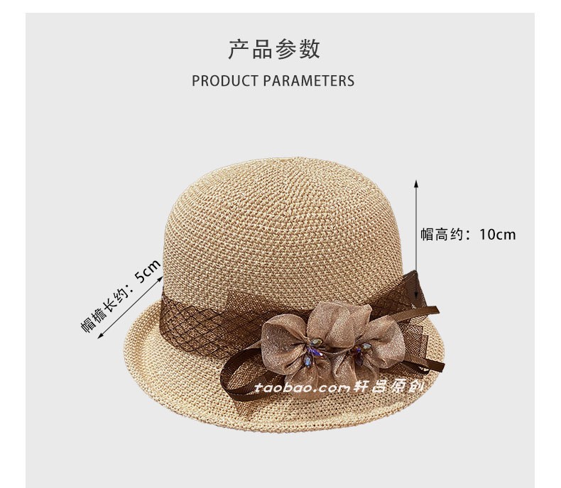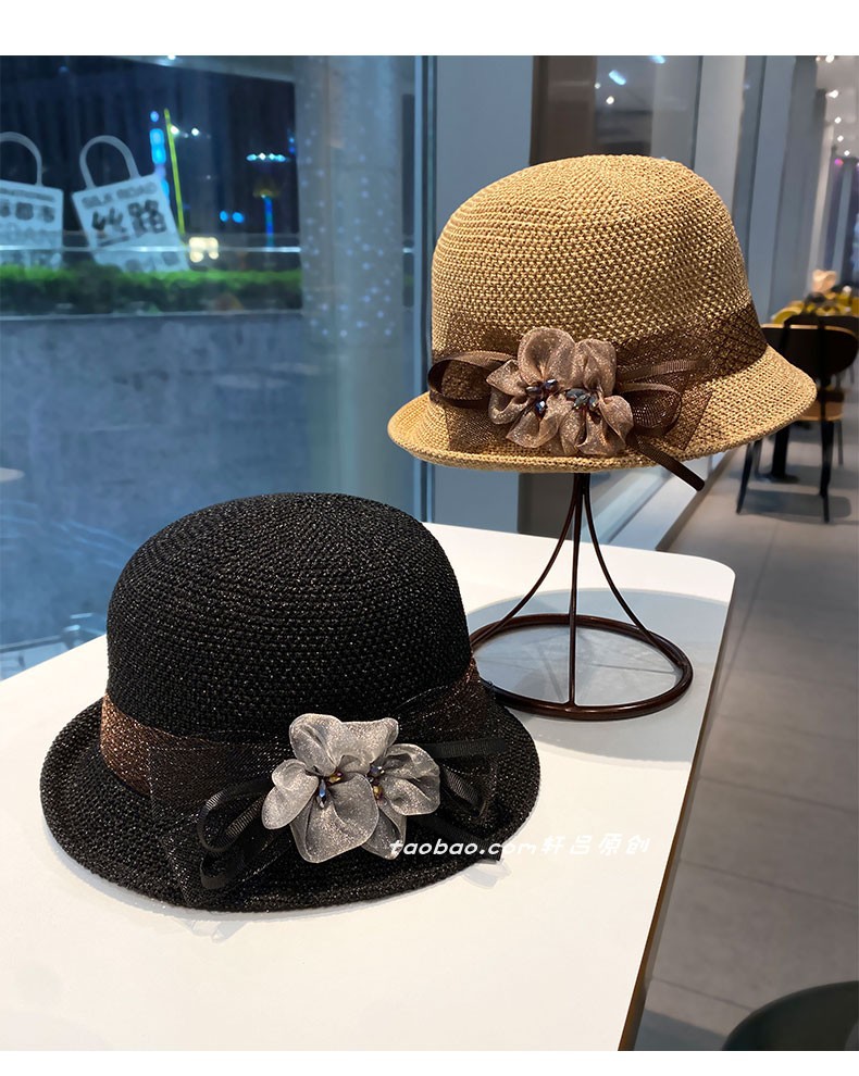时尚英伦花朵礼帽女夏季遮阳防晒帽子法式卷边太阳帽户外网纱盆帽