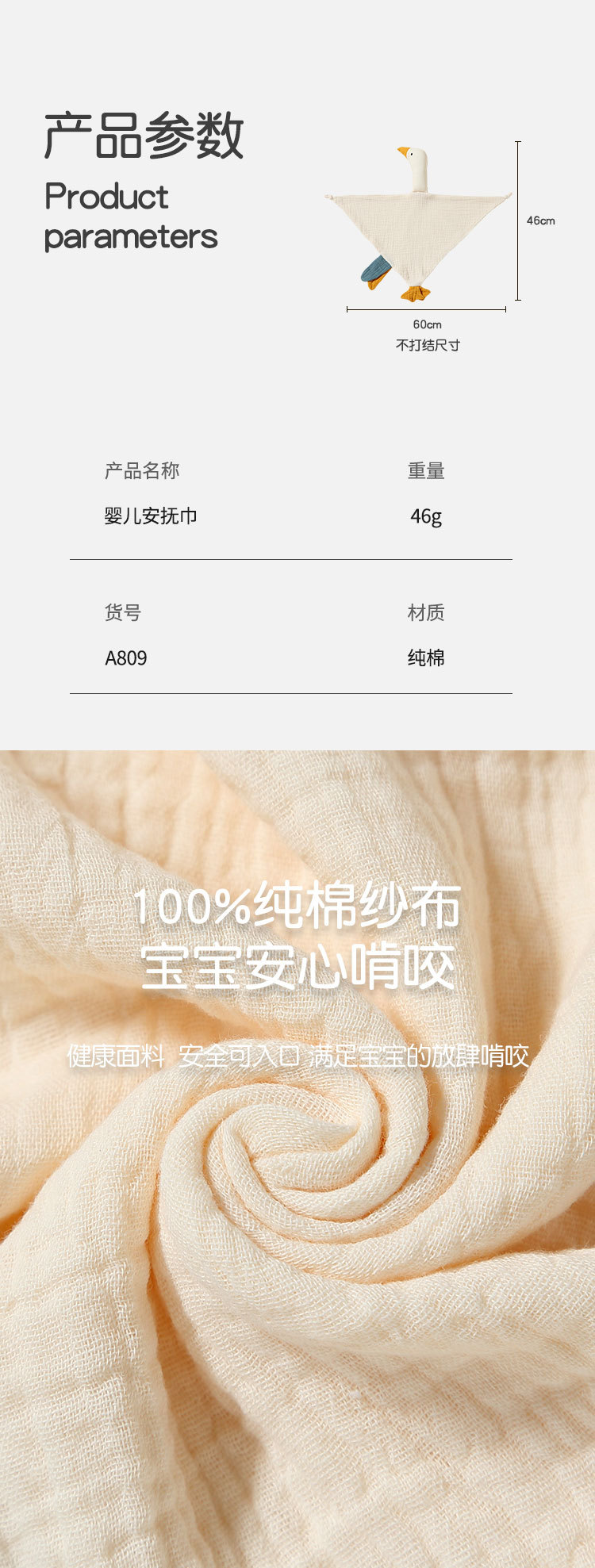 宝宝纯棉纱布安抚巾婴幼儿新生儿可爱娃娃手偶天鹅玩具陪睡眠玩偶