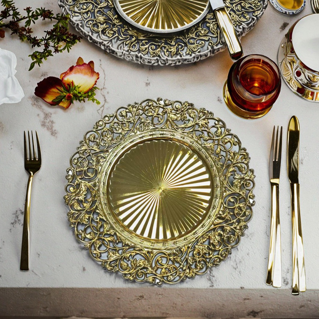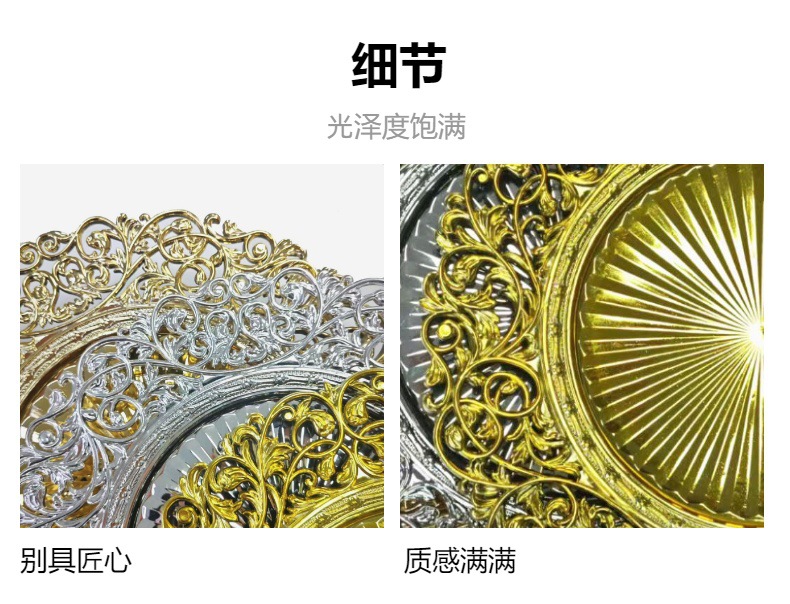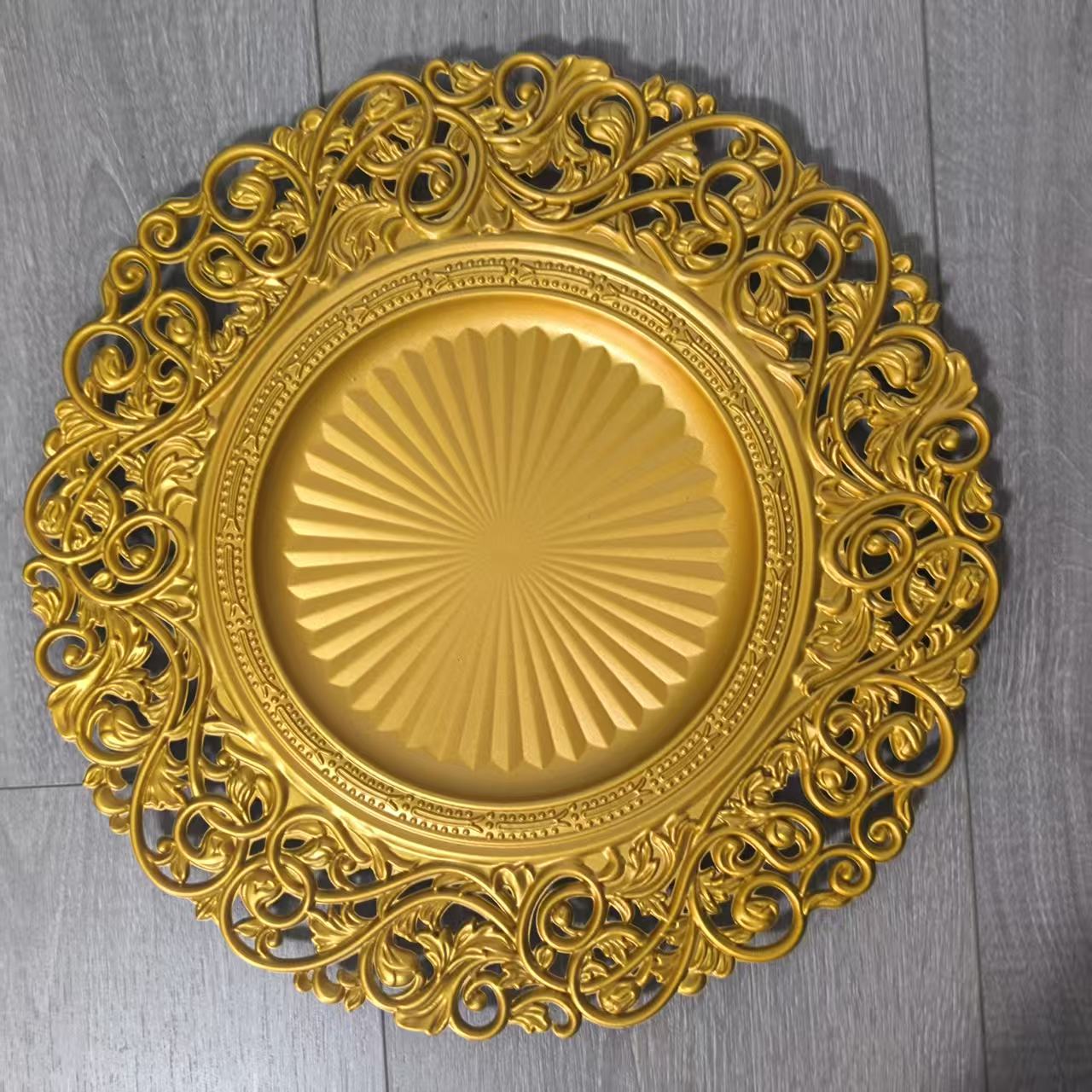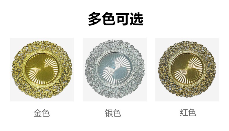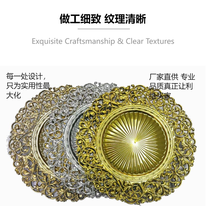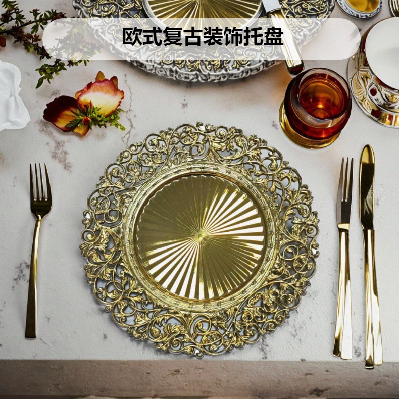 跨境工厂13英寸复古外贸婚礼酒店派对装饰塑料盘charger plates