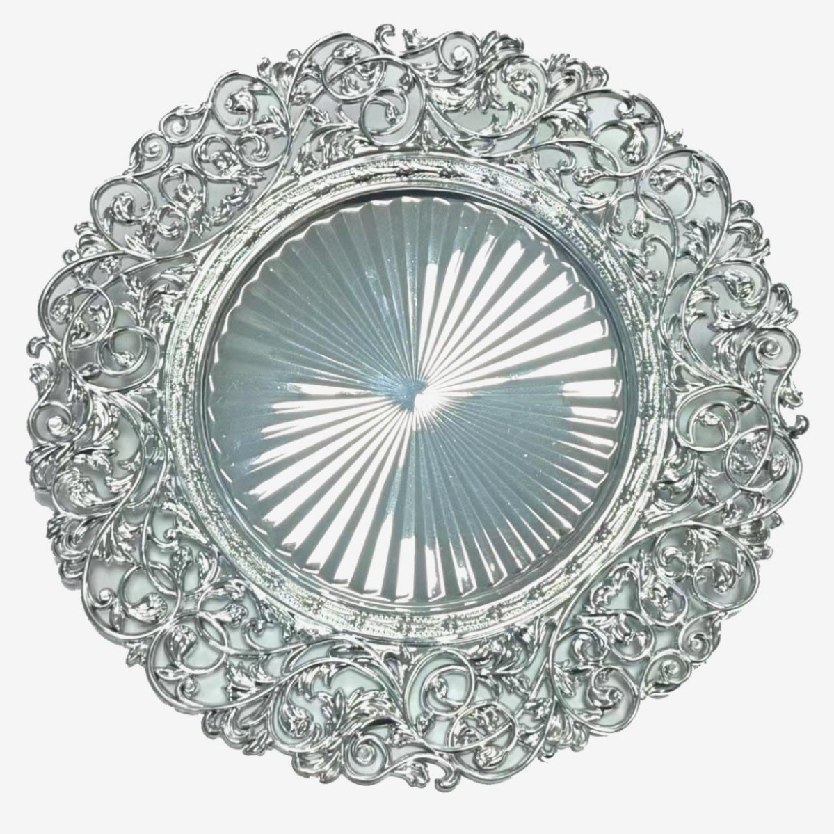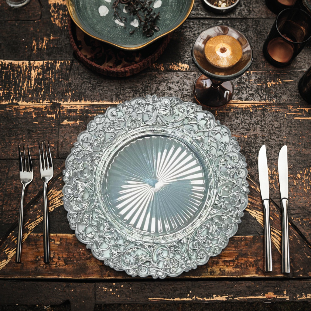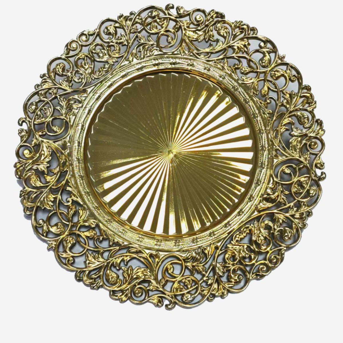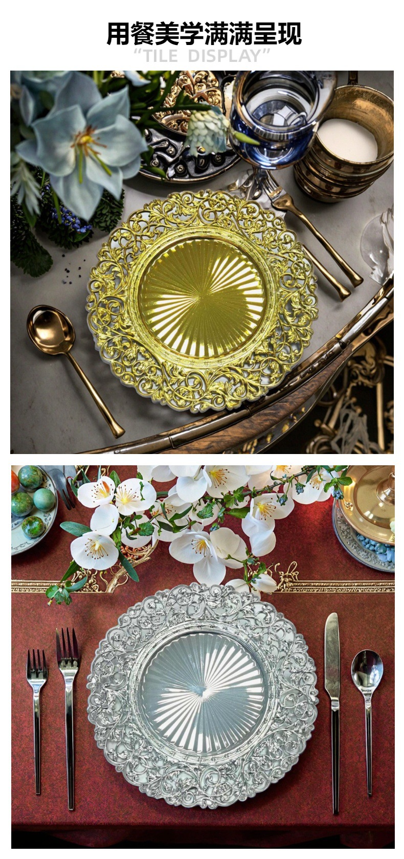 跨境工厂13英寸复古外贸婚礼酒店派对装饰塑料盘charger plates