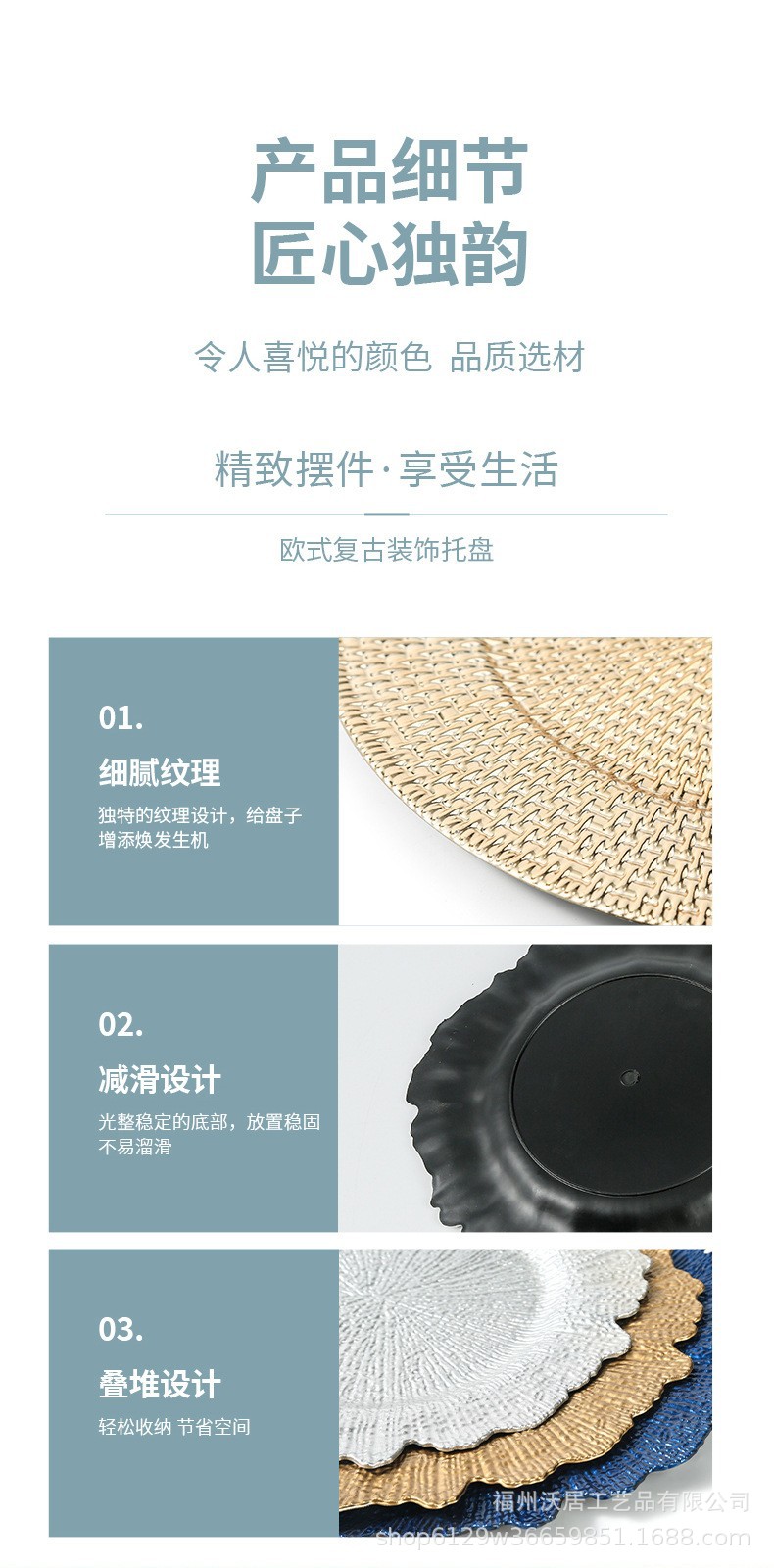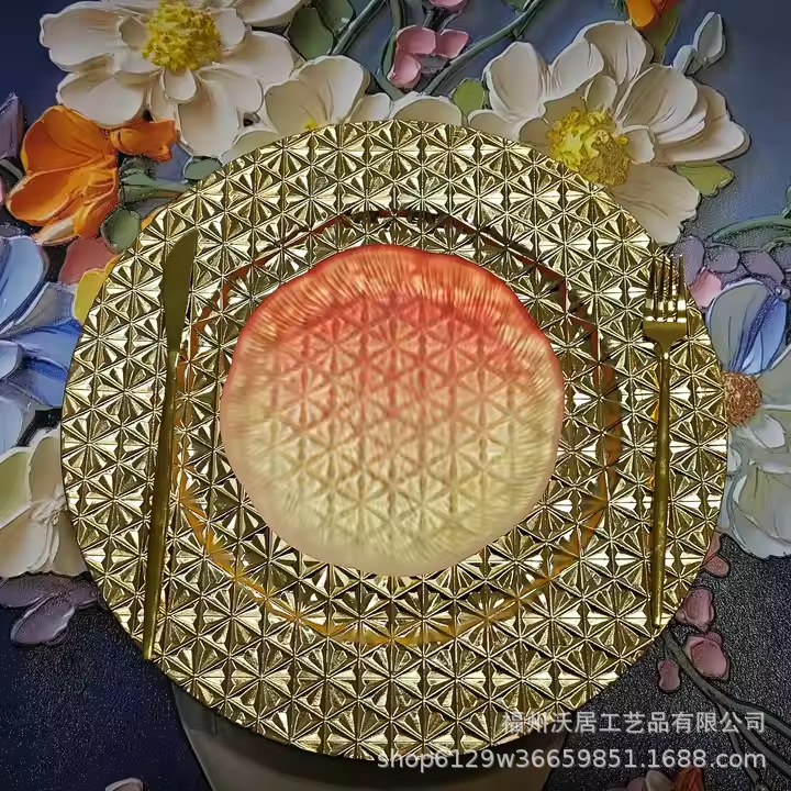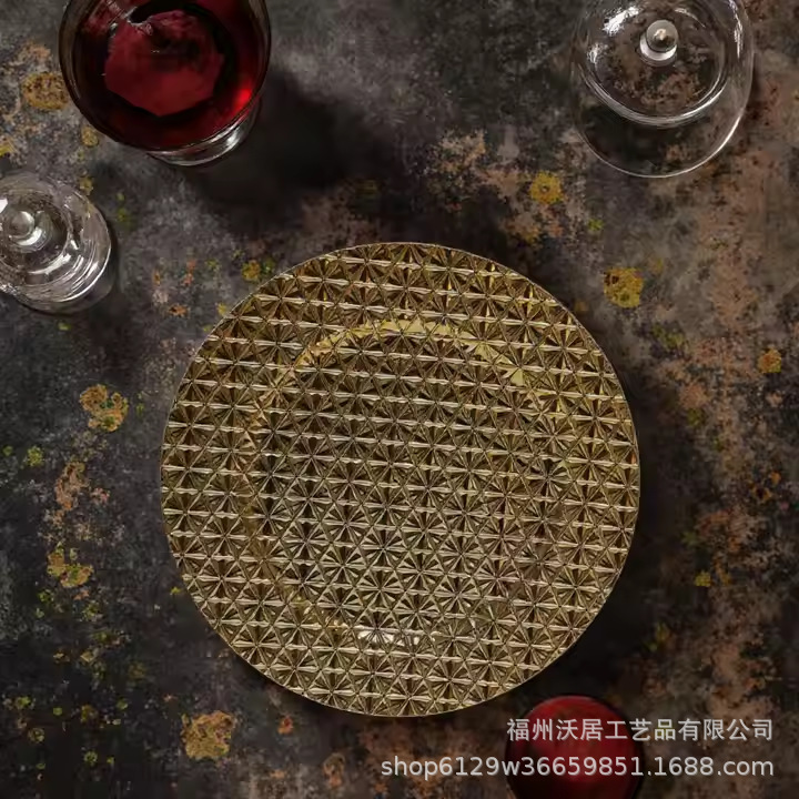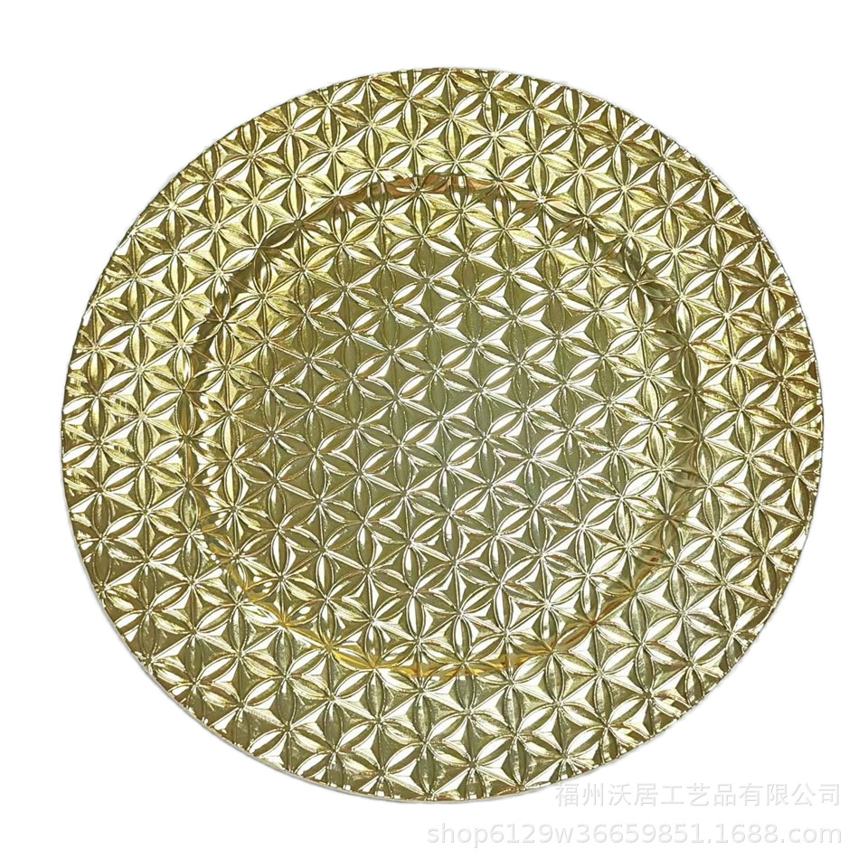 热销复古奢华装饰盘塑料金色圆形小花盘charger plate