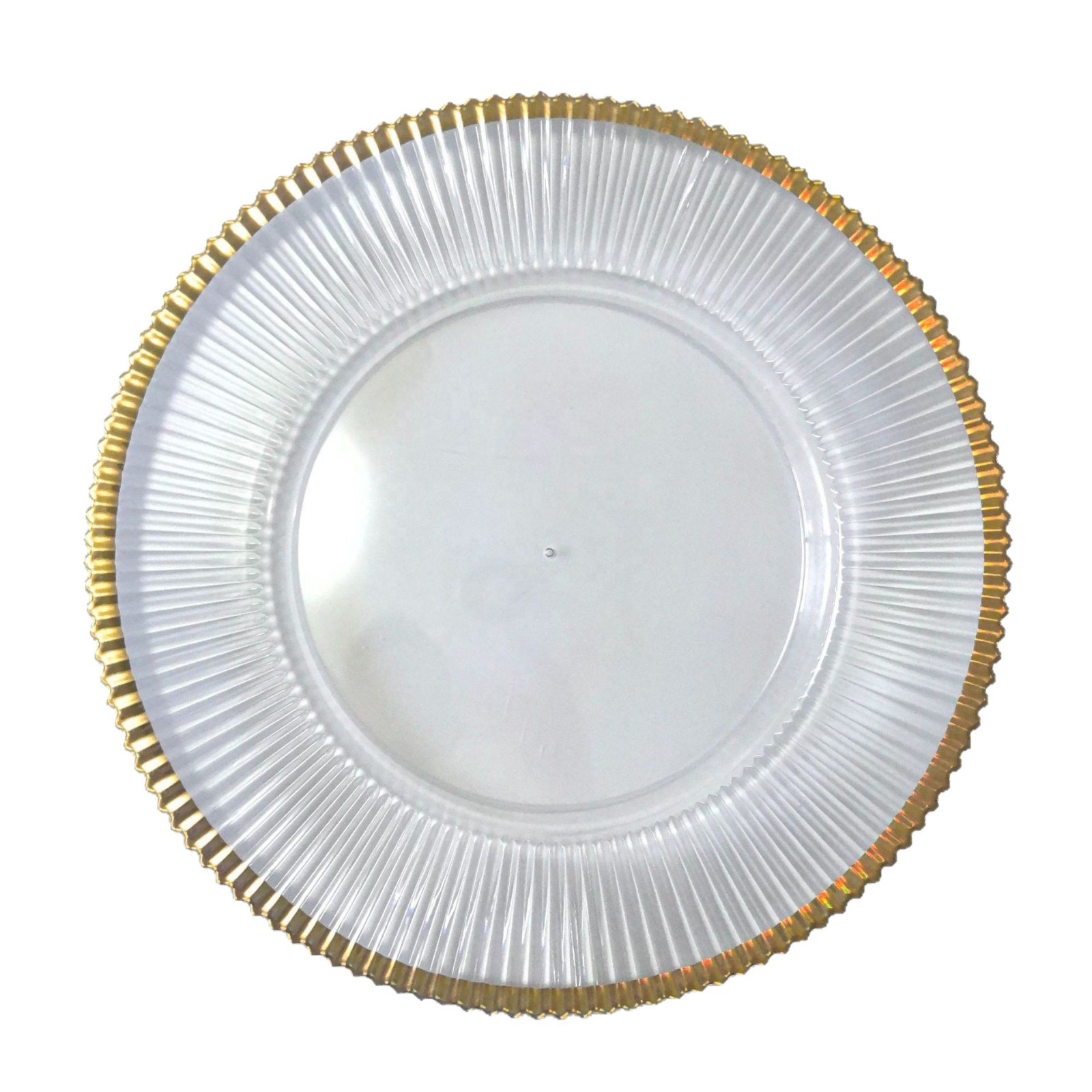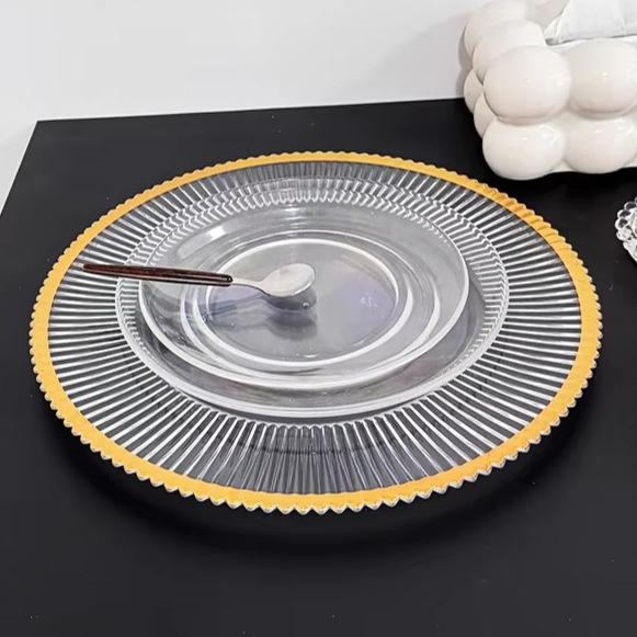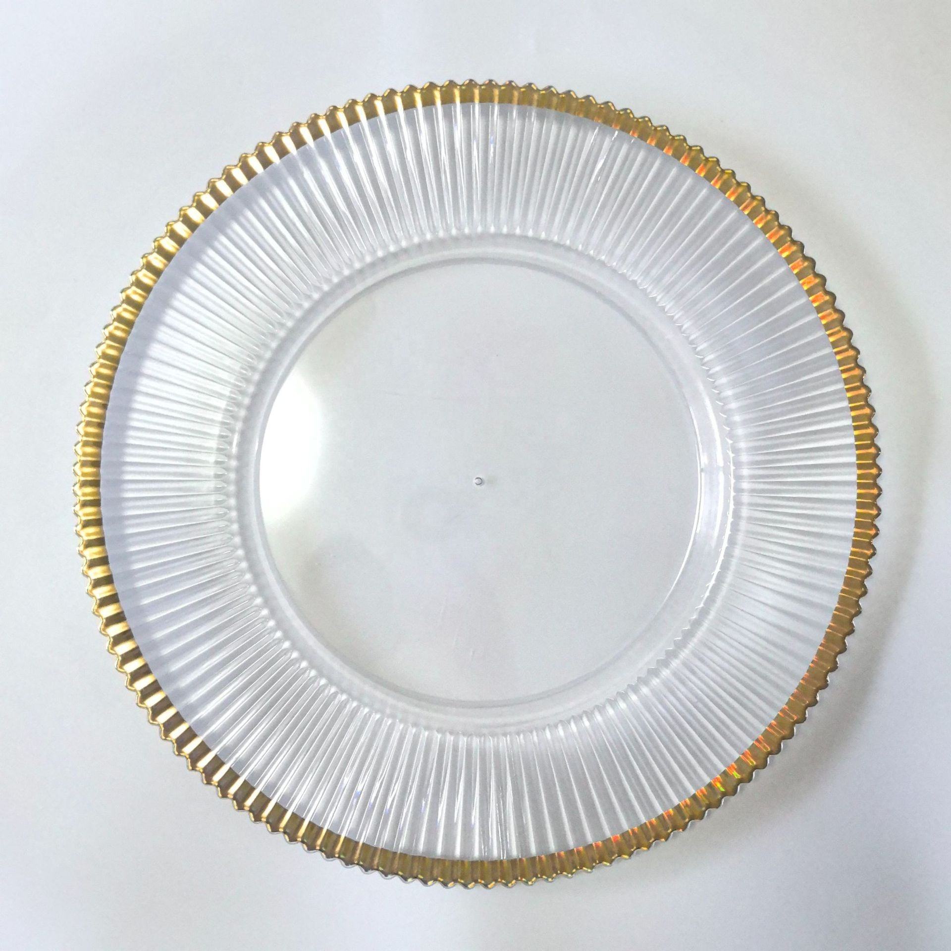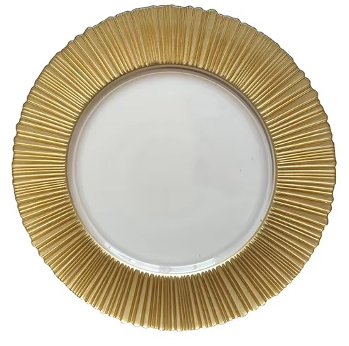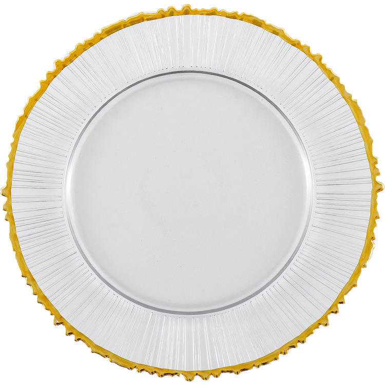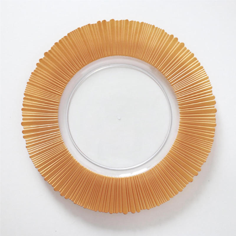 优雅的金边射线PS材质13英寸充电板散装婚礼摆件餐桌塑料充电板婚