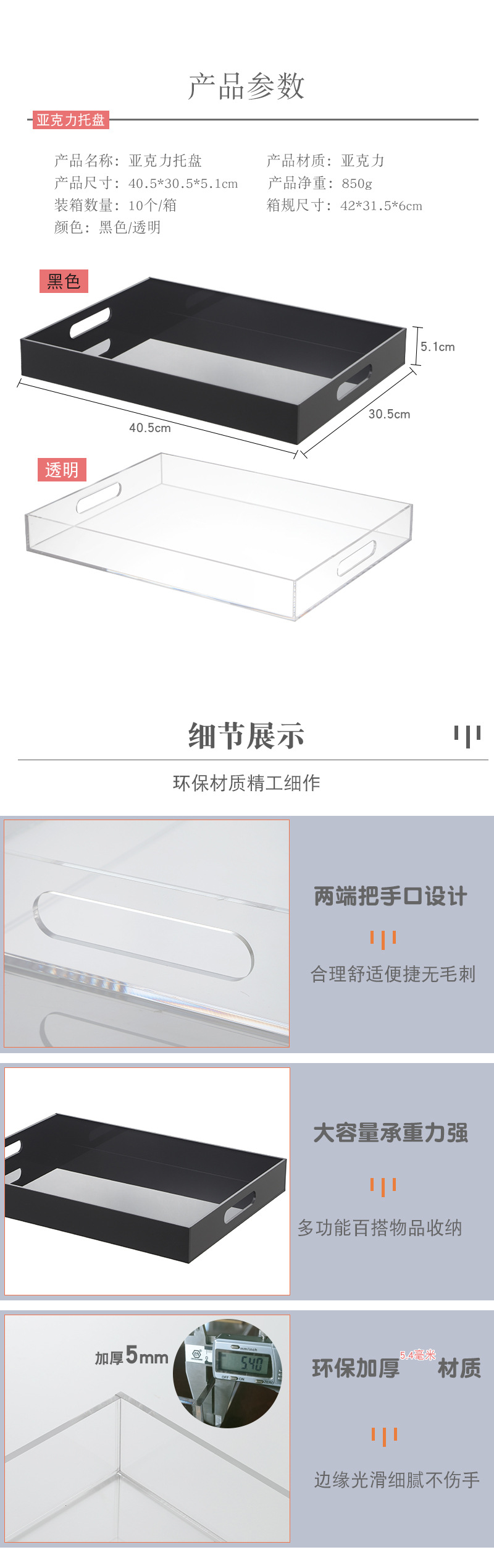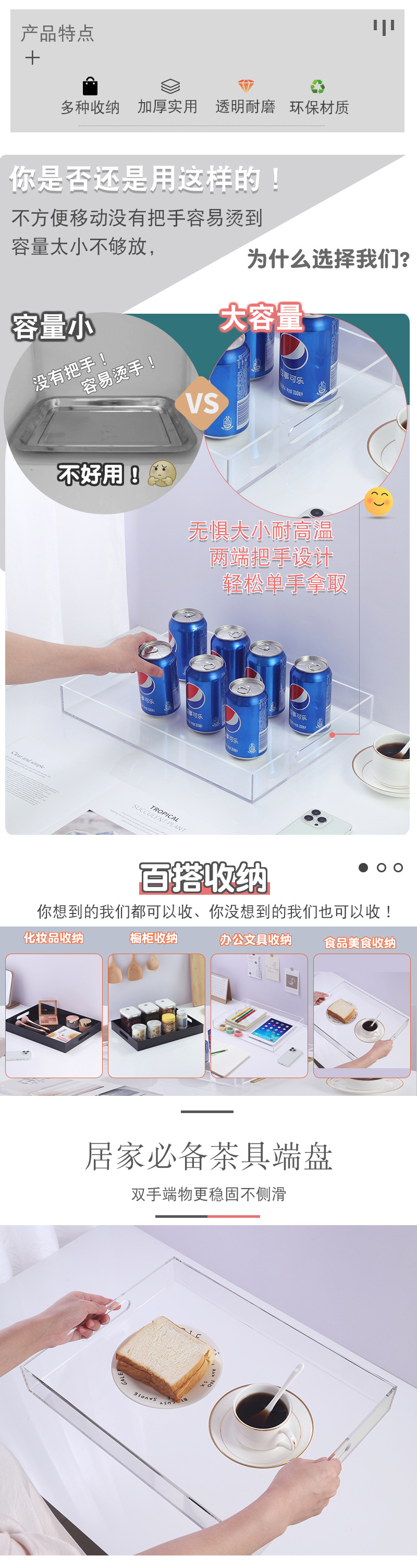 透明亚克力酒水托盘 早餐面包托盘 化妆品香水家居用品收纳