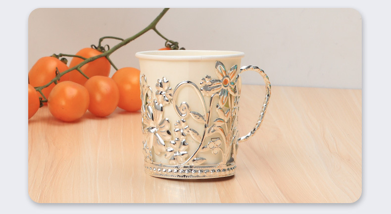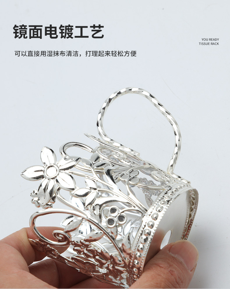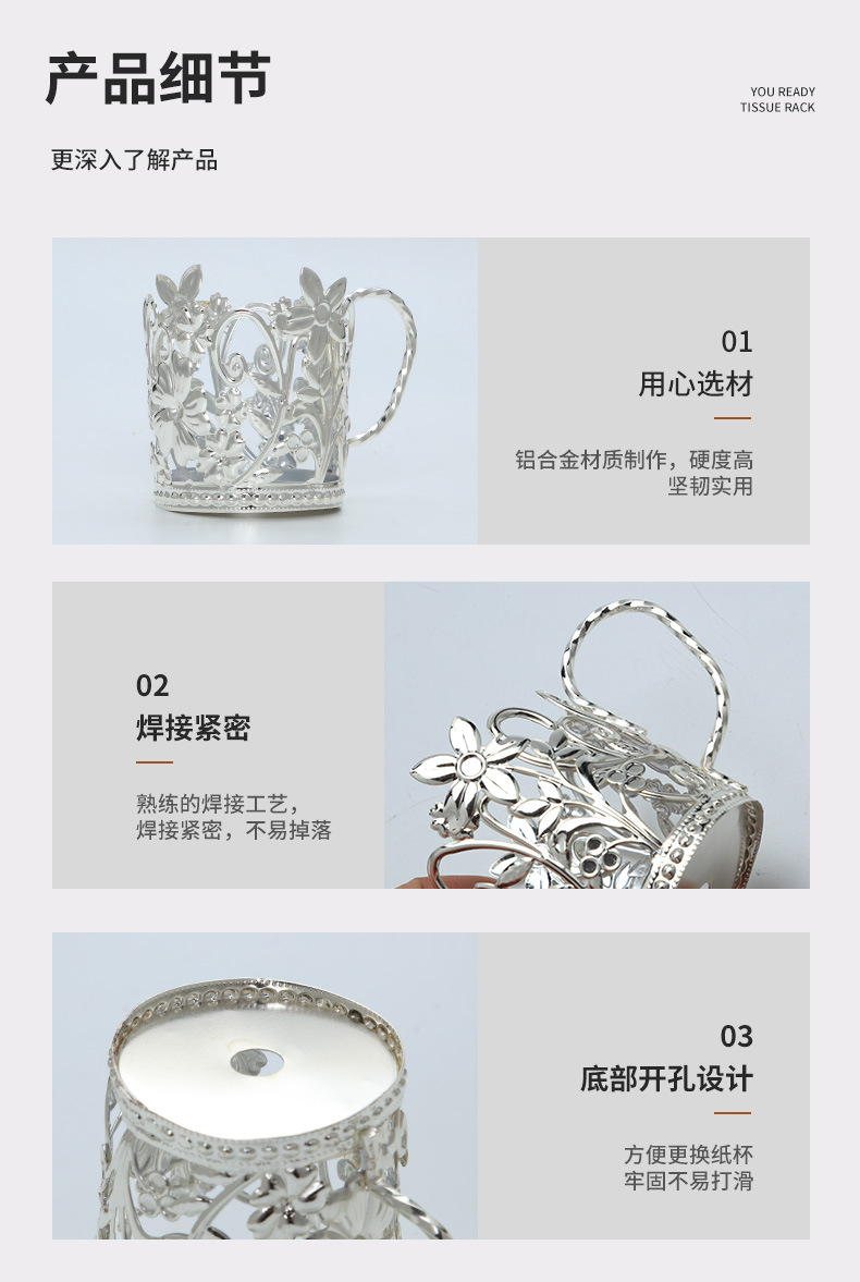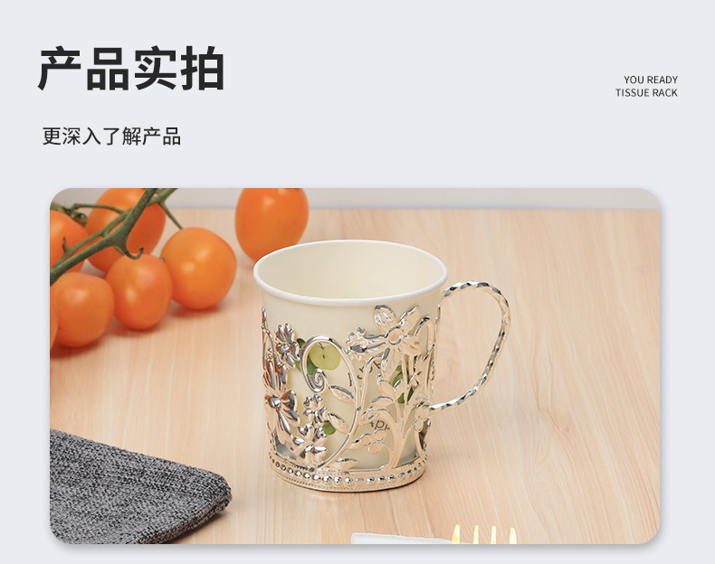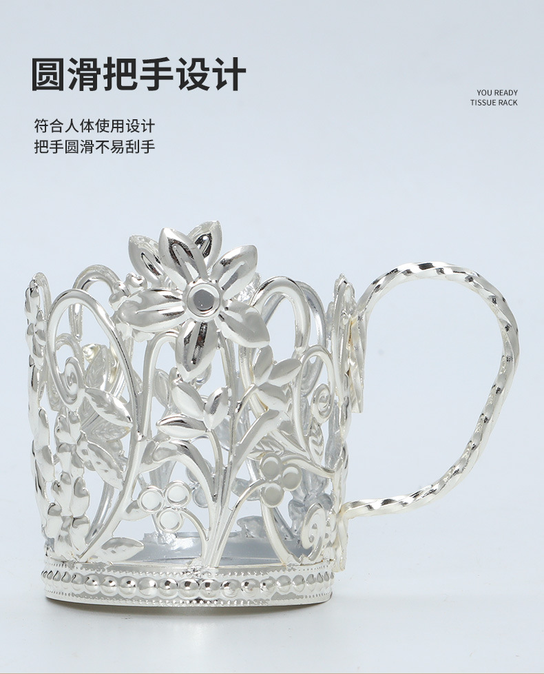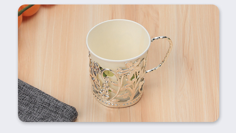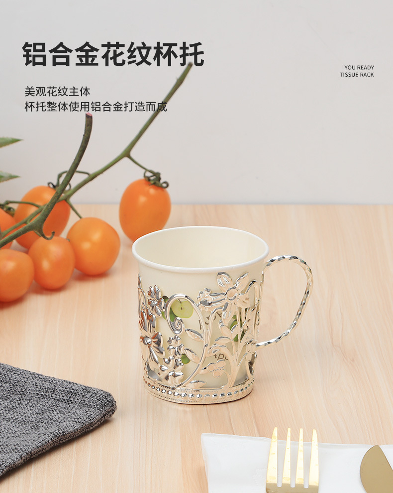 外贸热卖欧式轻奢铁艺纸杯托一次性水杯隔热杯托银色花边隔热杯座