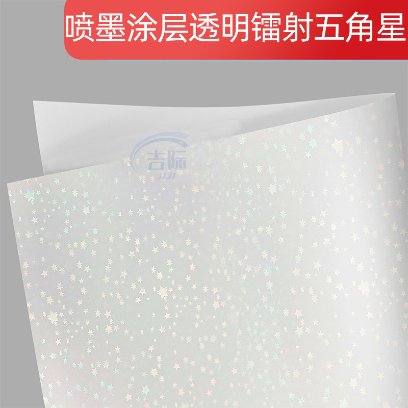 批发贴纸标签防撕耐刮亮面透明PET环保面料喷墨镭射涂层不干胶