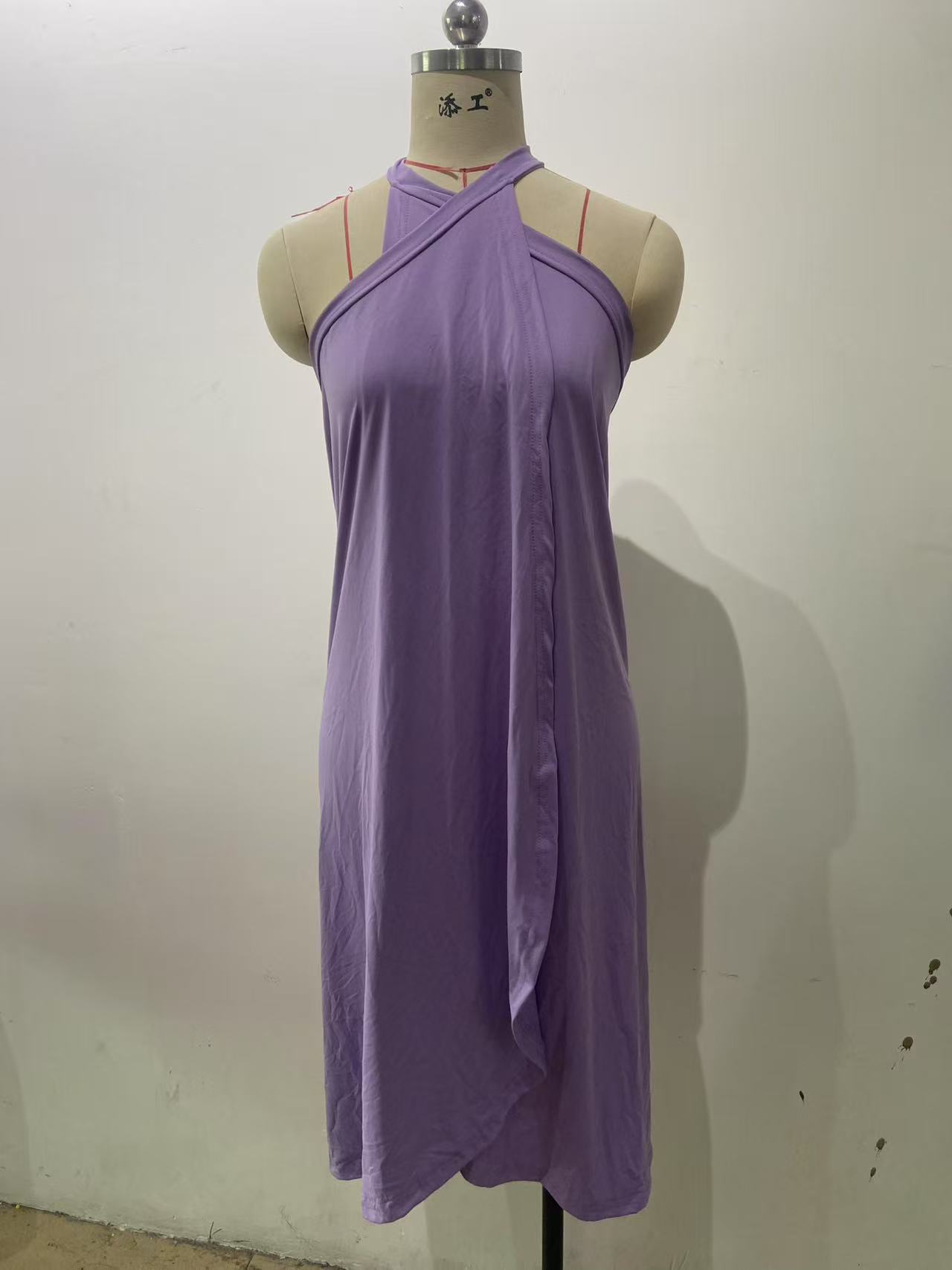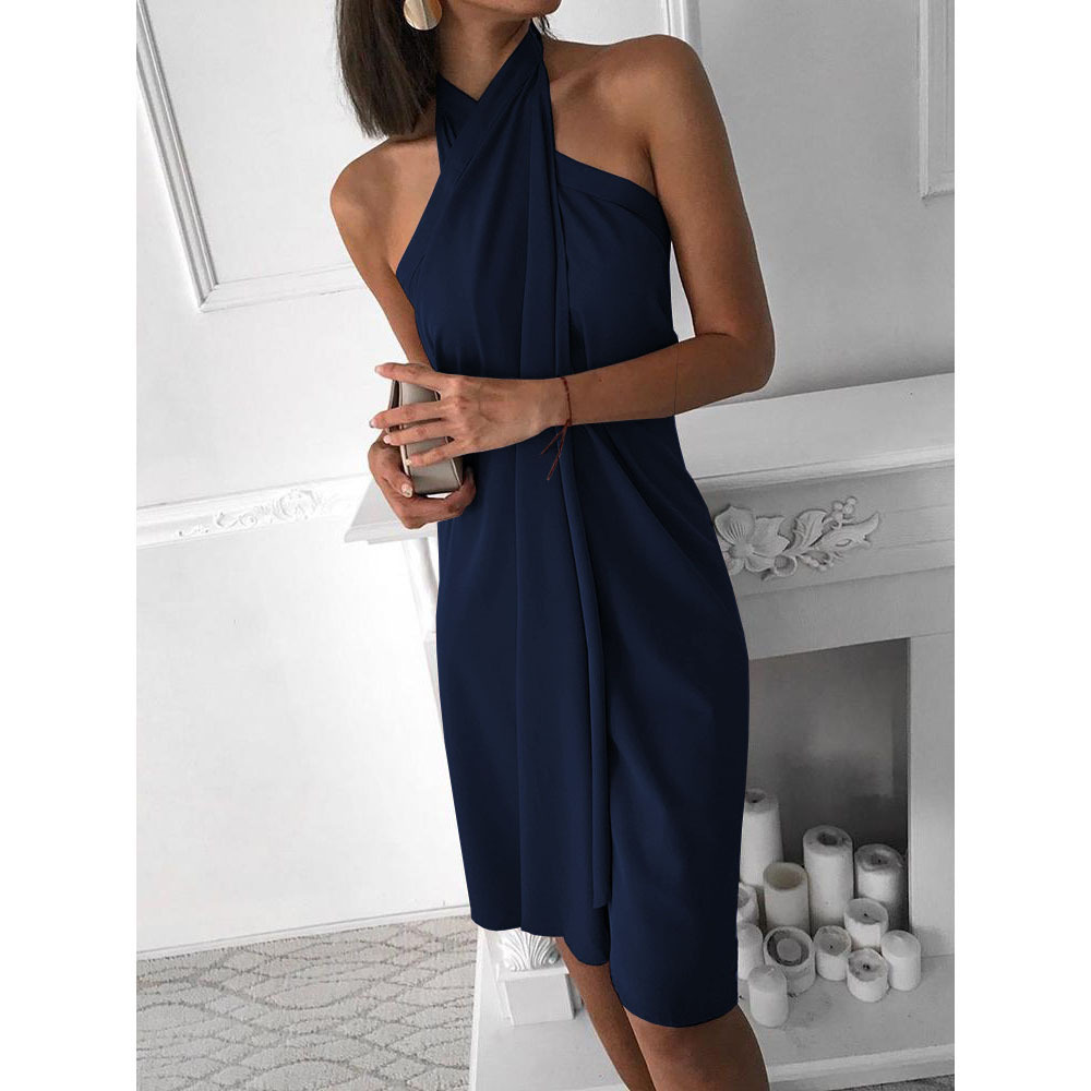 Ebay亚马逊2025夏新款性感女装连衣裙 挂脖宽松不规则休闲沙滩裙