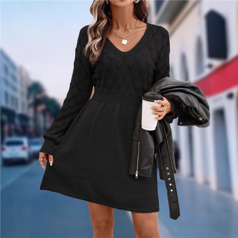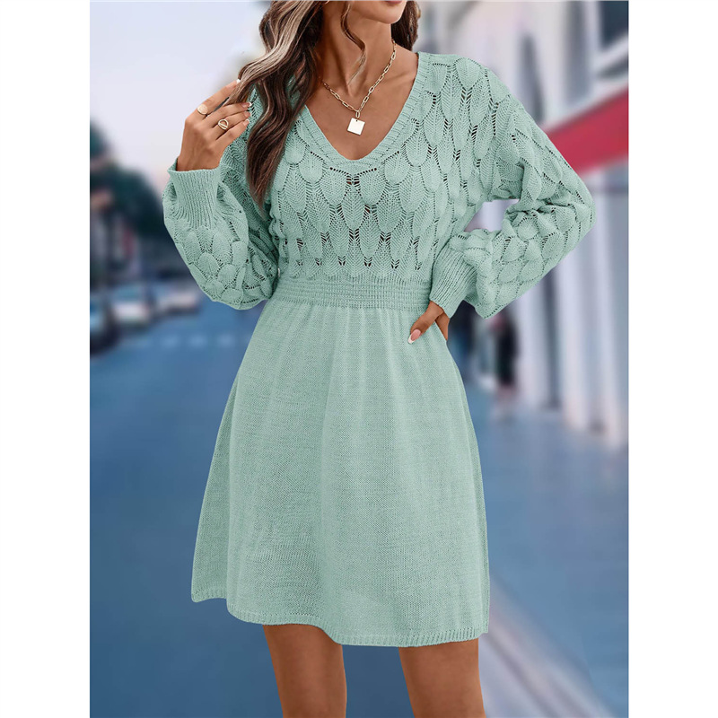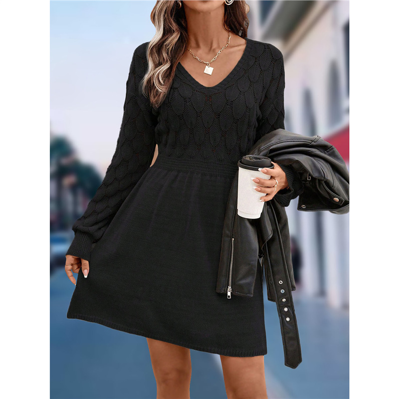 跨境连衣裙鳞片纹立体钩织2025新款欧美V领沙滩裙A字裙长袖连衣裙
