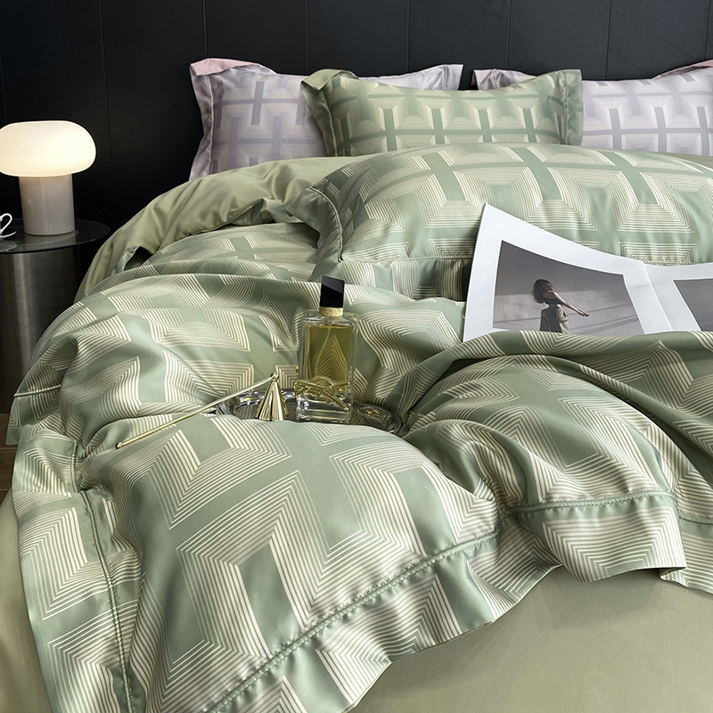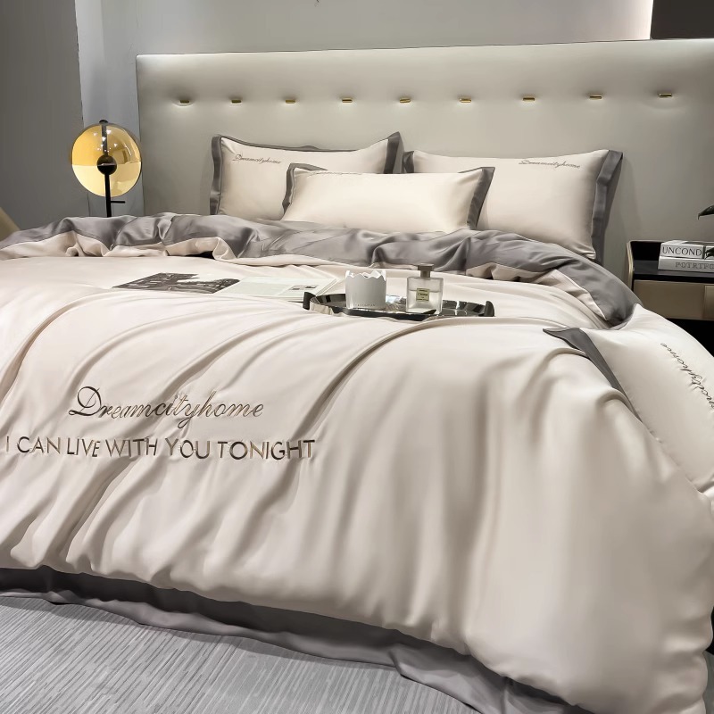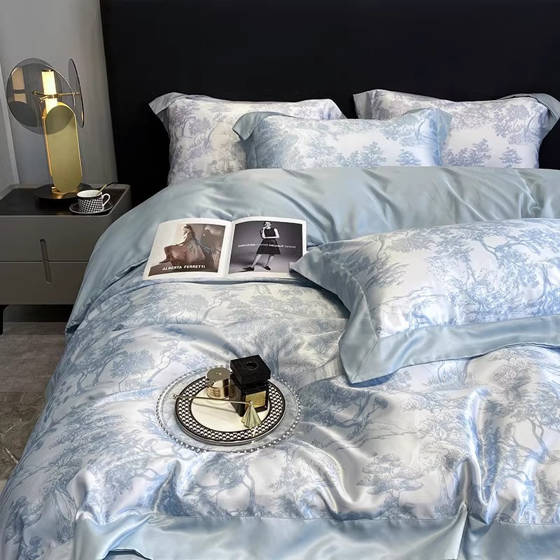 简约水洗真丝四件套冰丝被套欧式丝滑裸睡夏季床上天丝床单床笠款