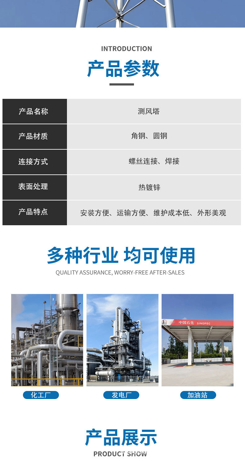 测风塔100米风电场海上观测记录塔风力发电气象监测塔角钢测风塔