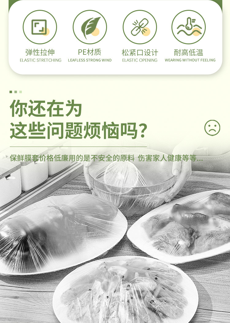一次性保鲜膜食品级家用冰箱厨房剩菜碗盘罩带松紧pe材质保鲜膜套