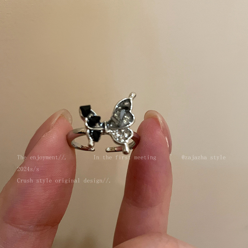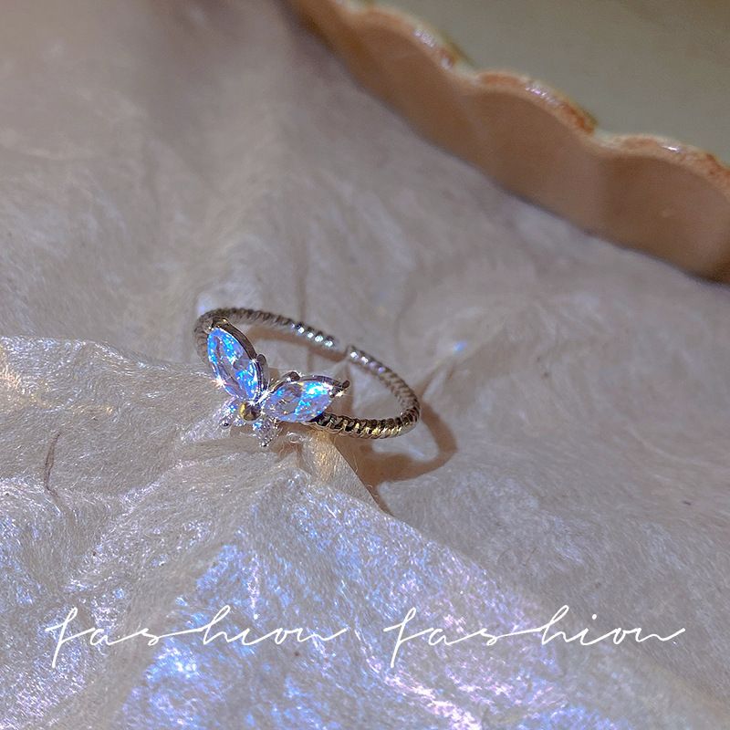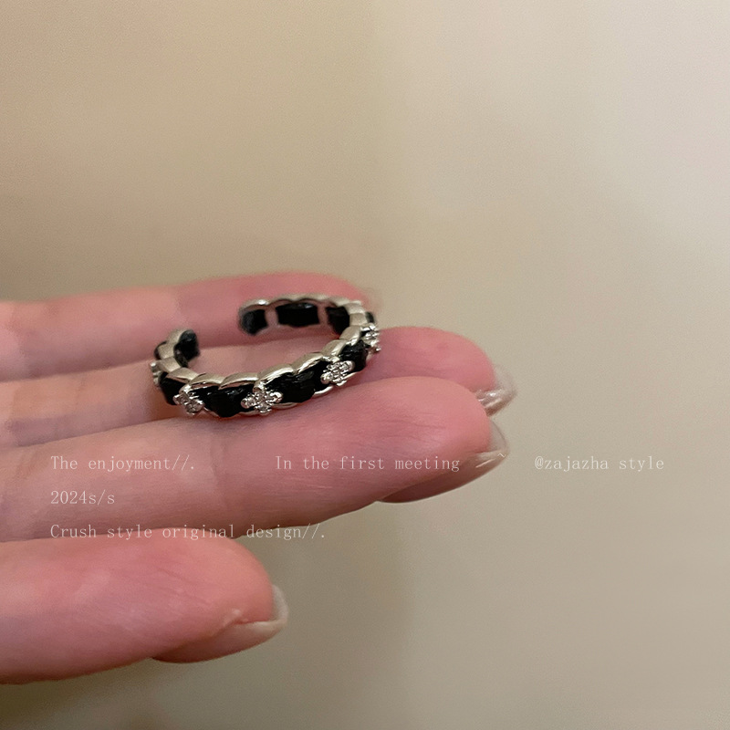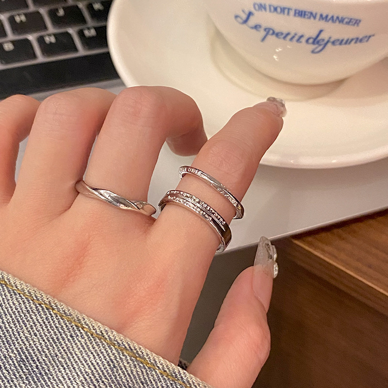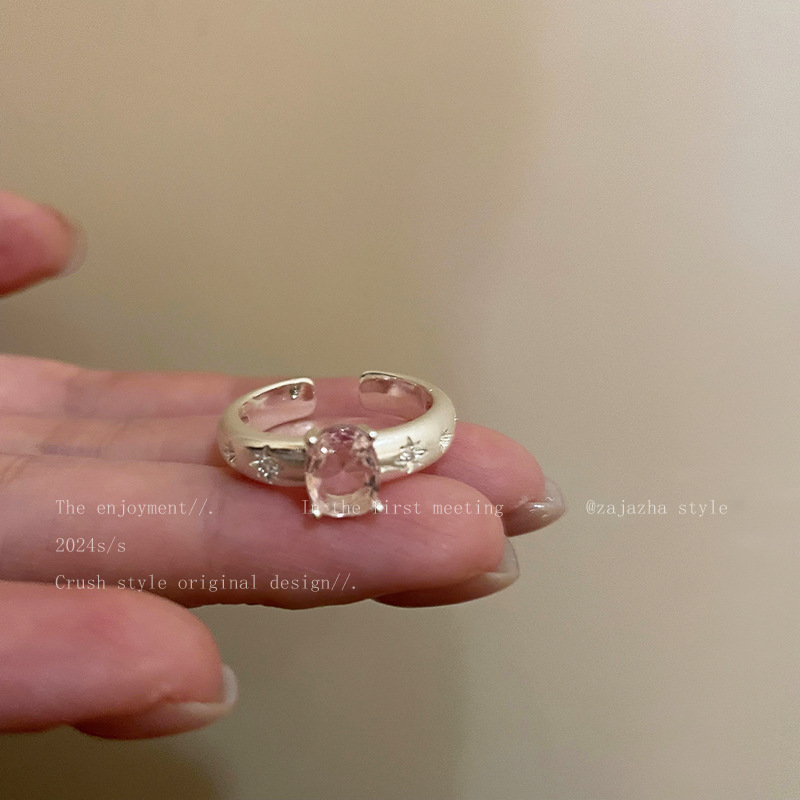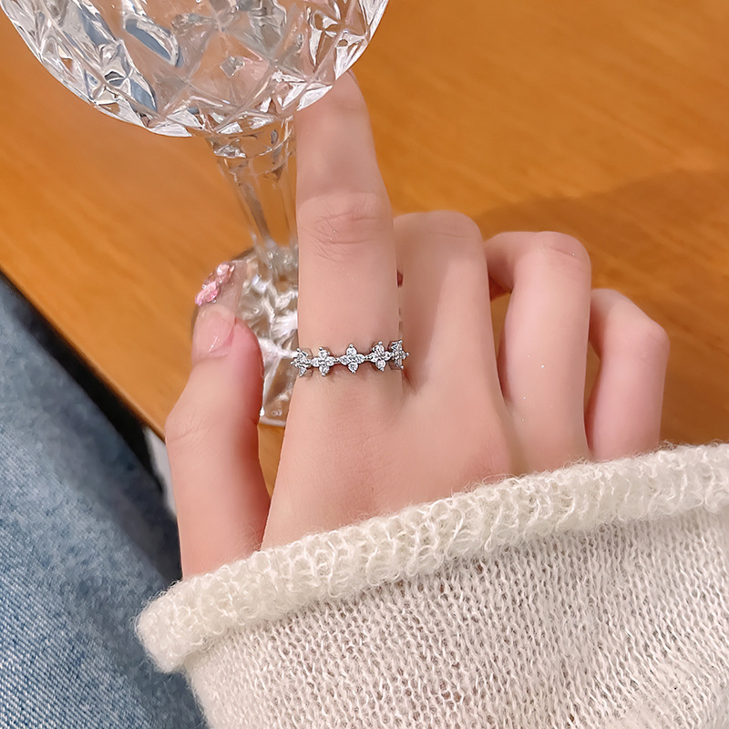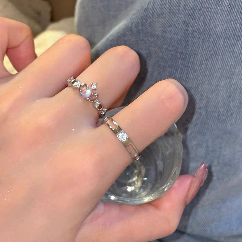 ins风银色锆石戒指女轻奢小众高级感开口食指戒指环爆款手饰批发