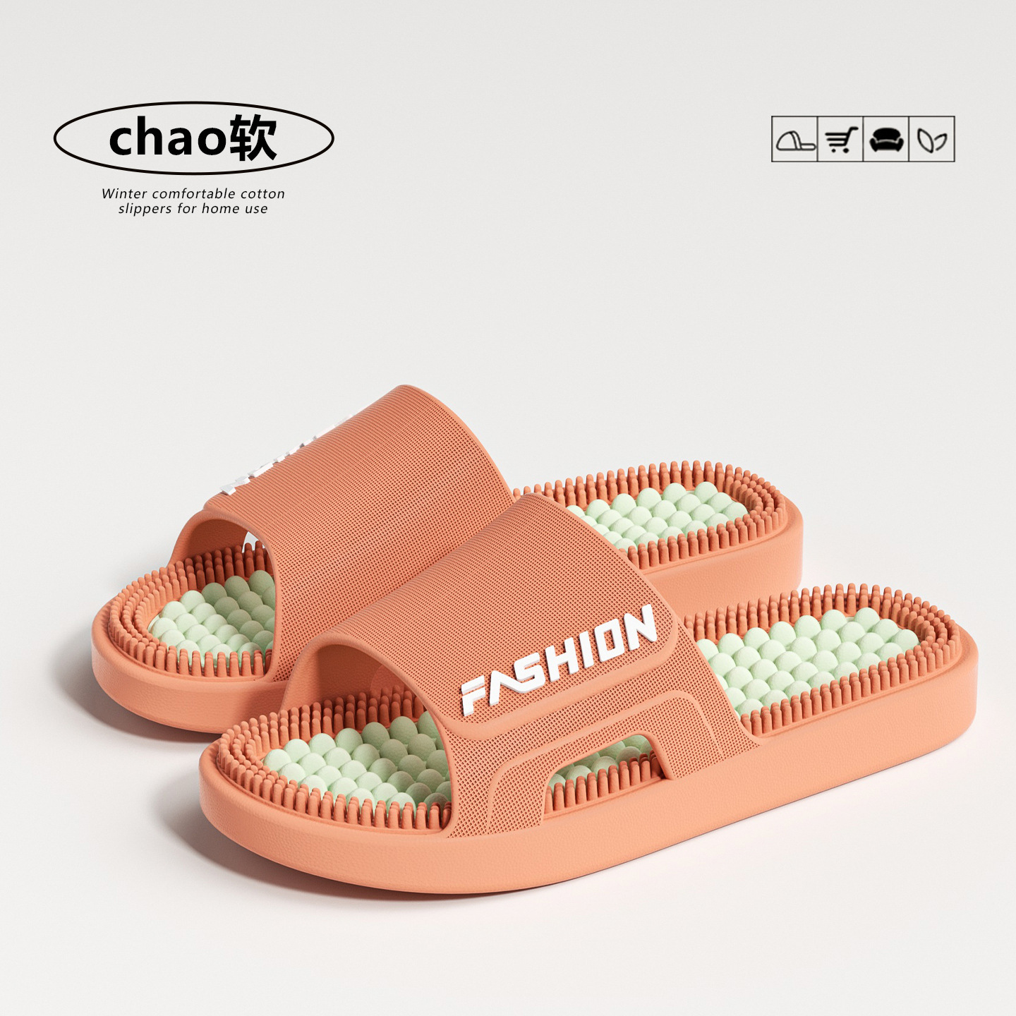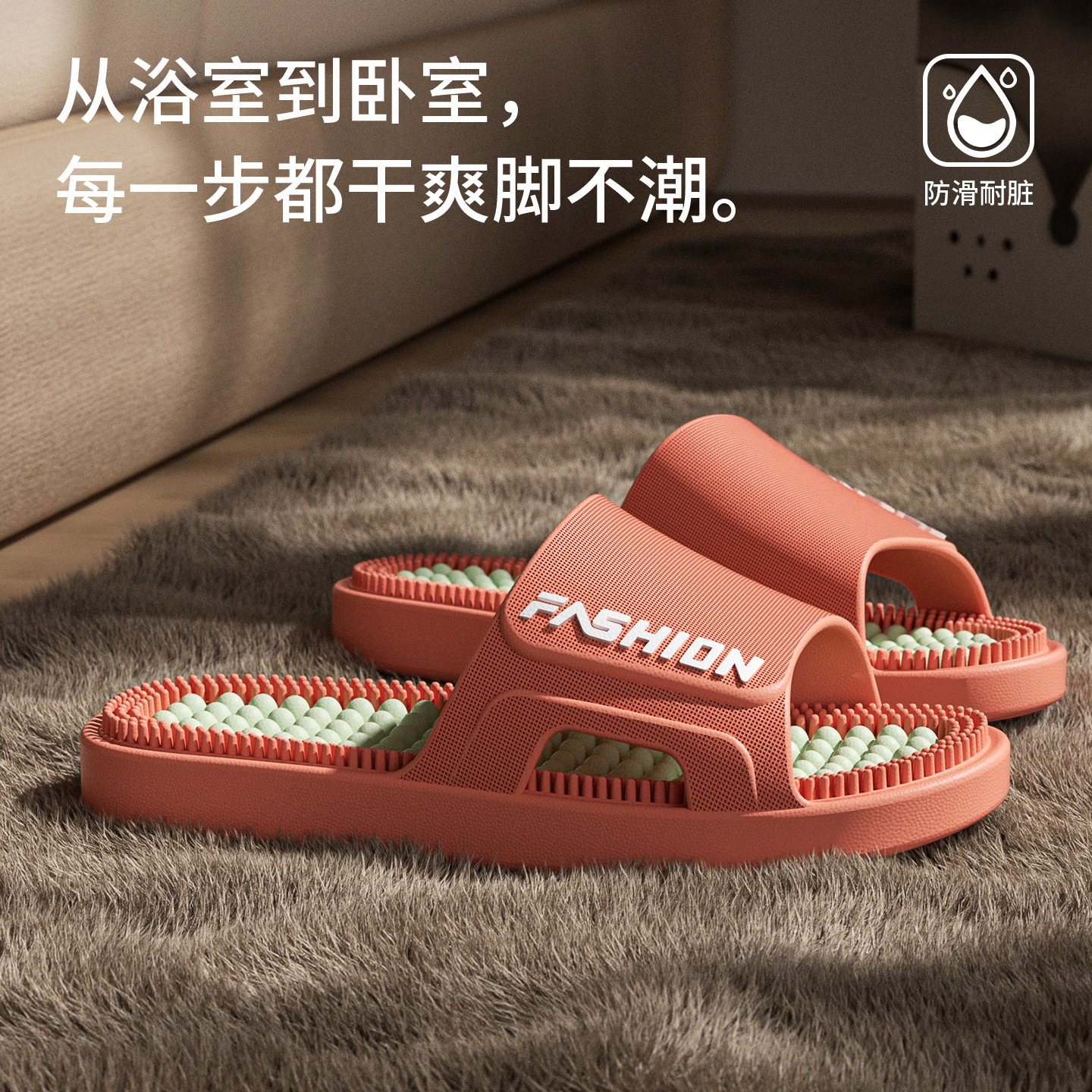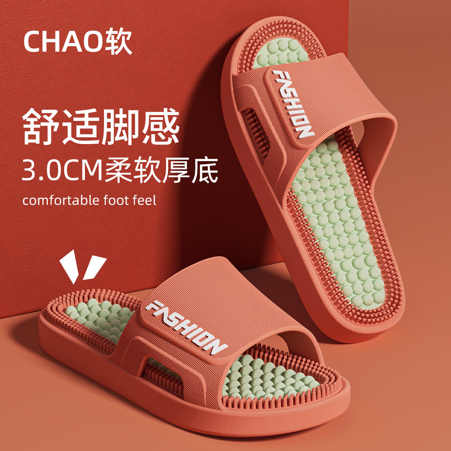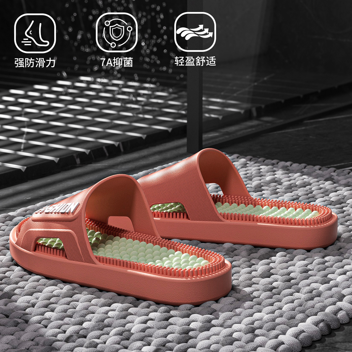 时尚拼色按摩拖鞋女2026新款室内加厚浴室防滑防臭耐磨凉拖鞋男士