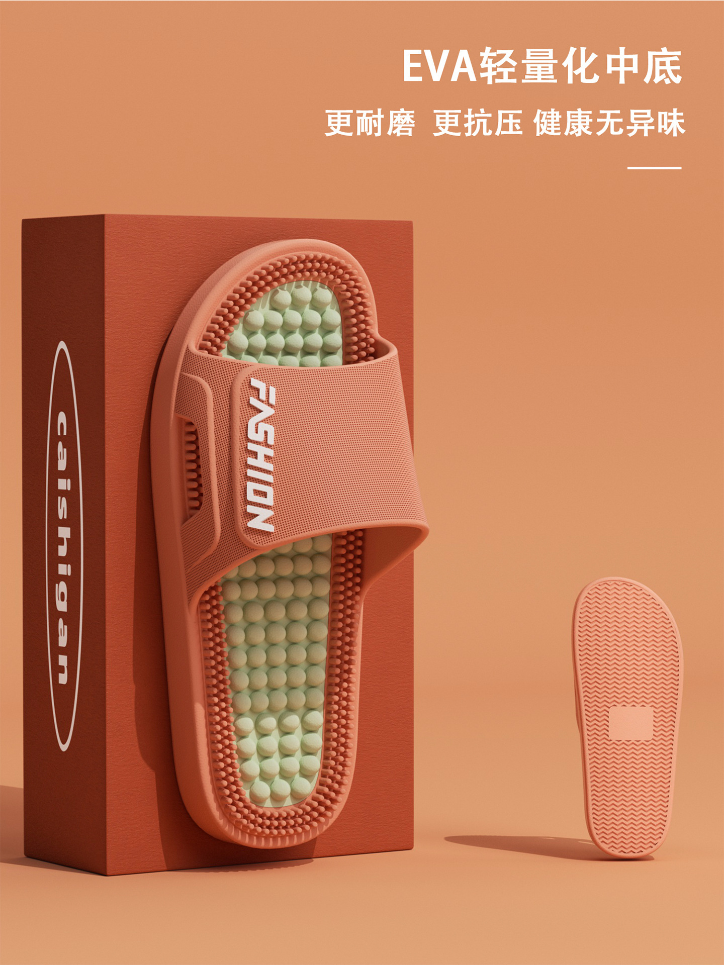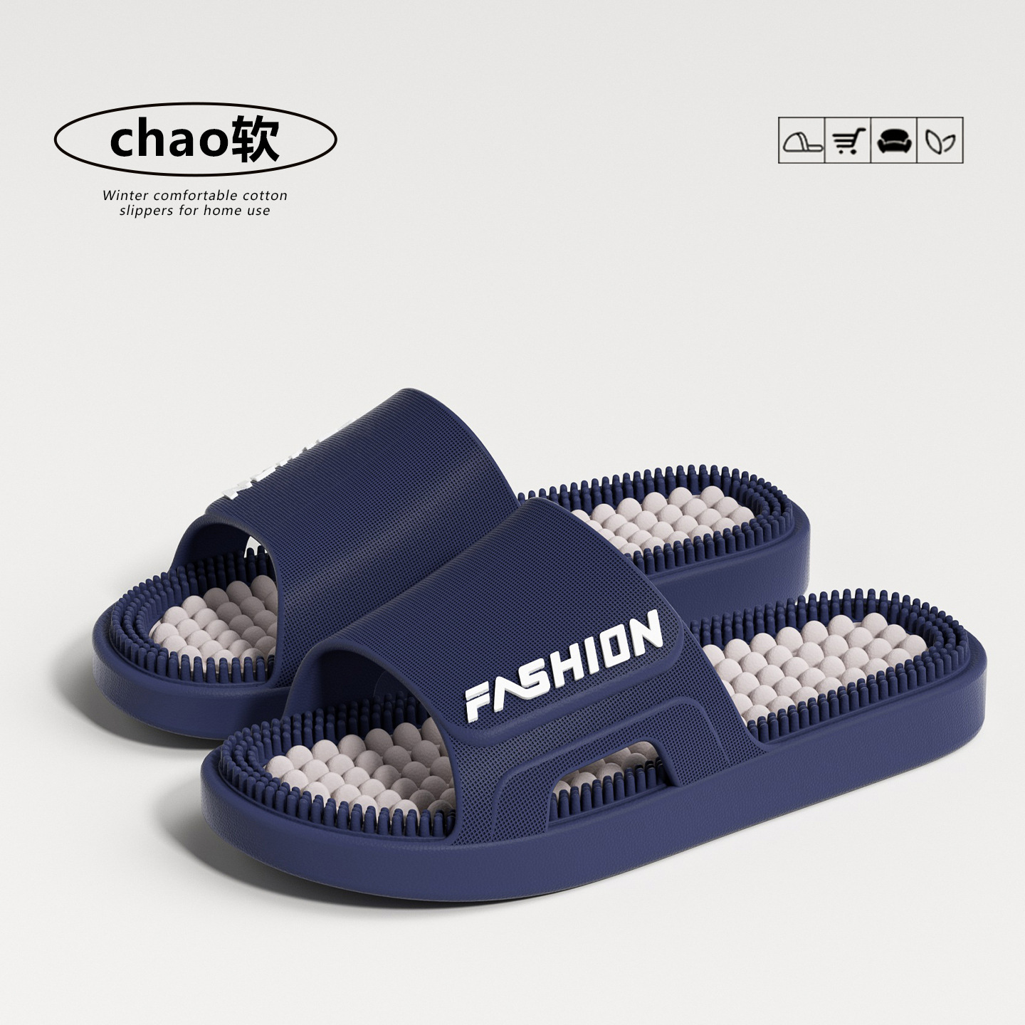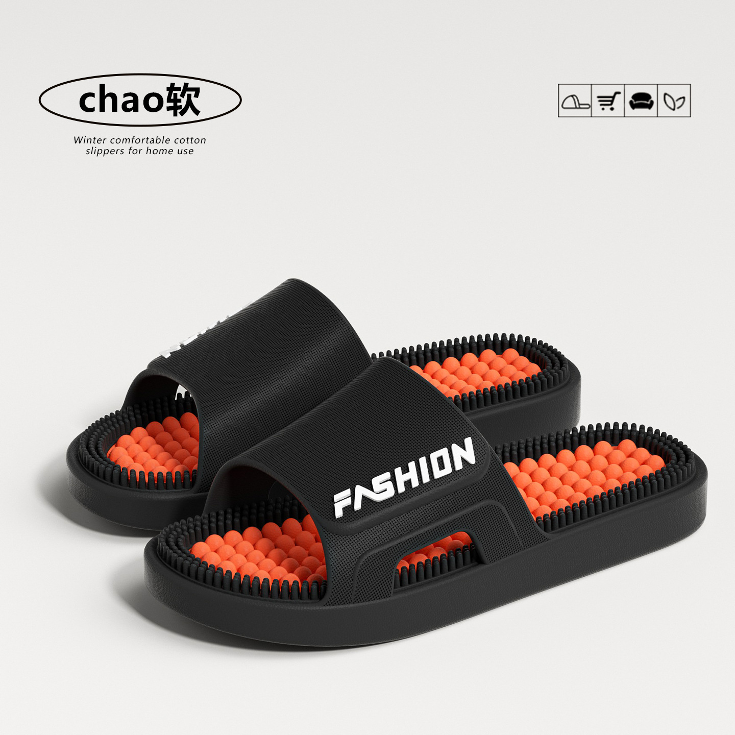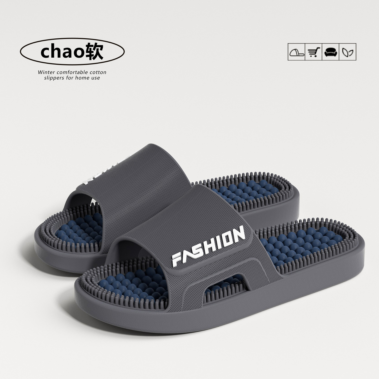 时尚拼色按摩拖鞋女2026新款室内加厚浴室防滑防臭耐磨凉拖鞋男士