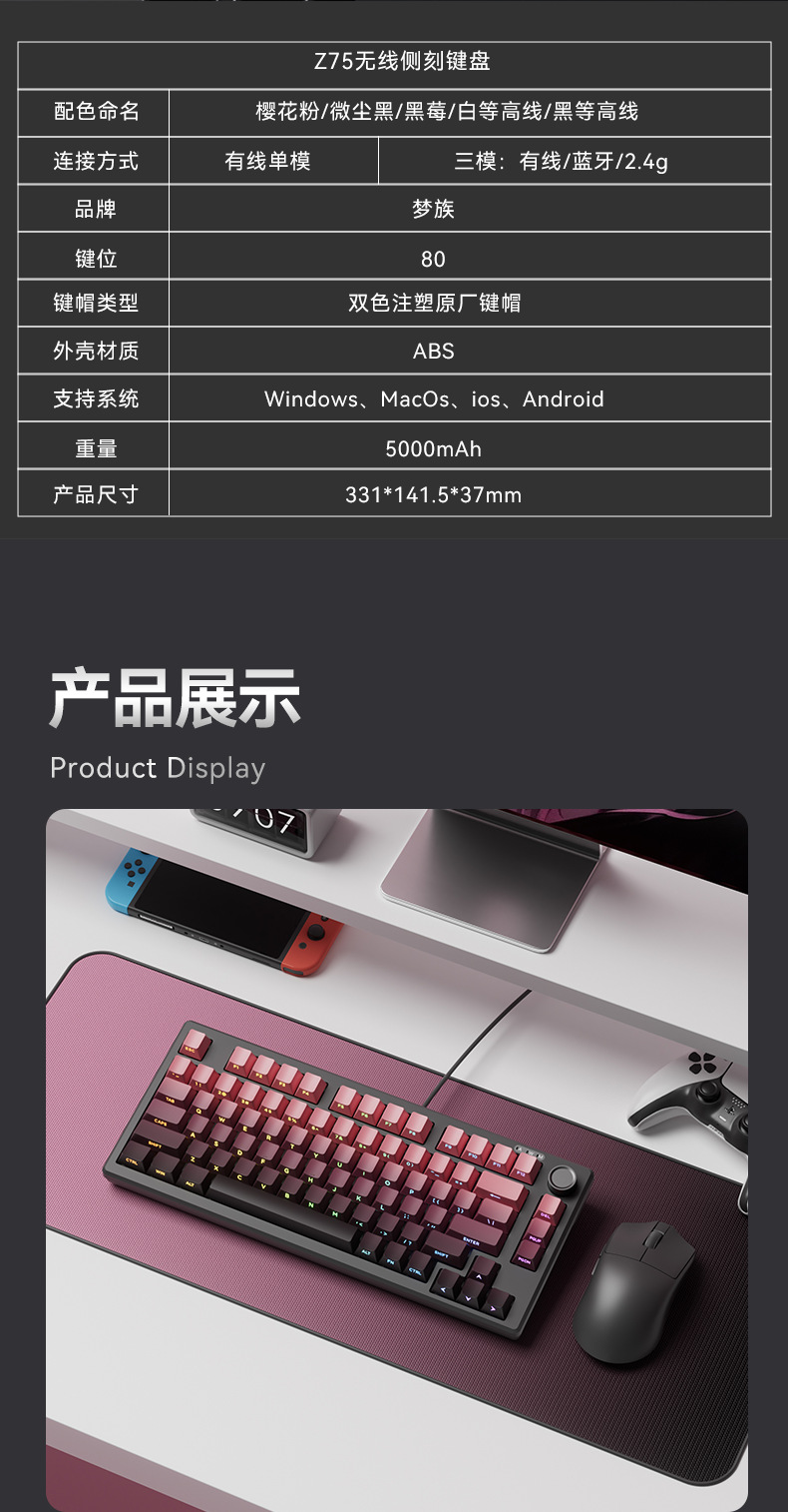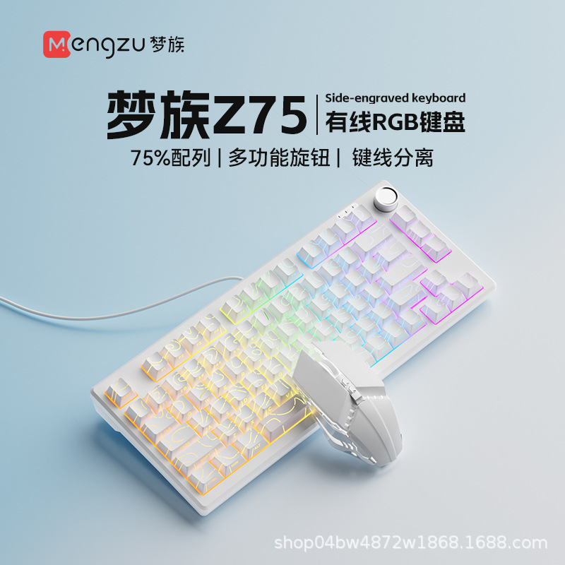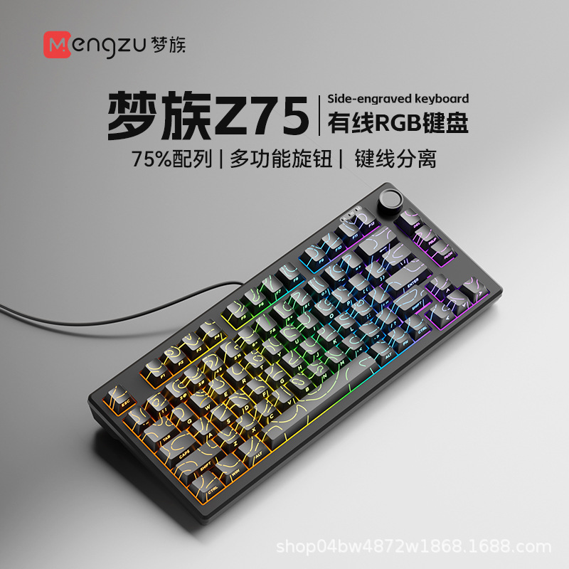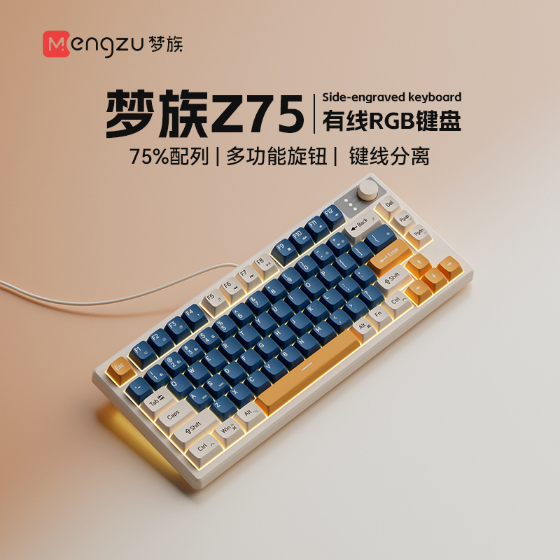 梦族Z75PRO小型机械手感有线键盘静音笔记本外接三模电竞游戏专用