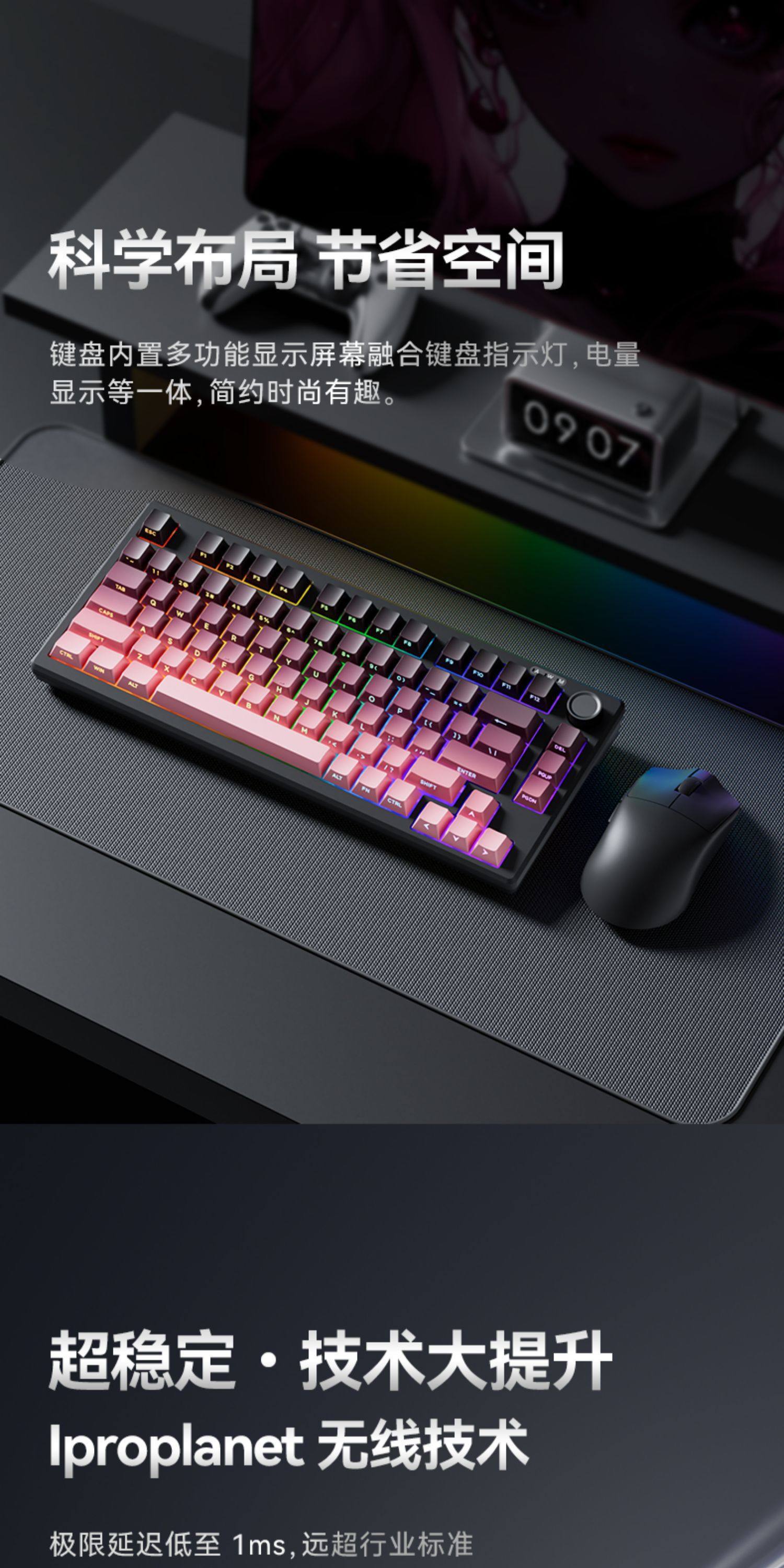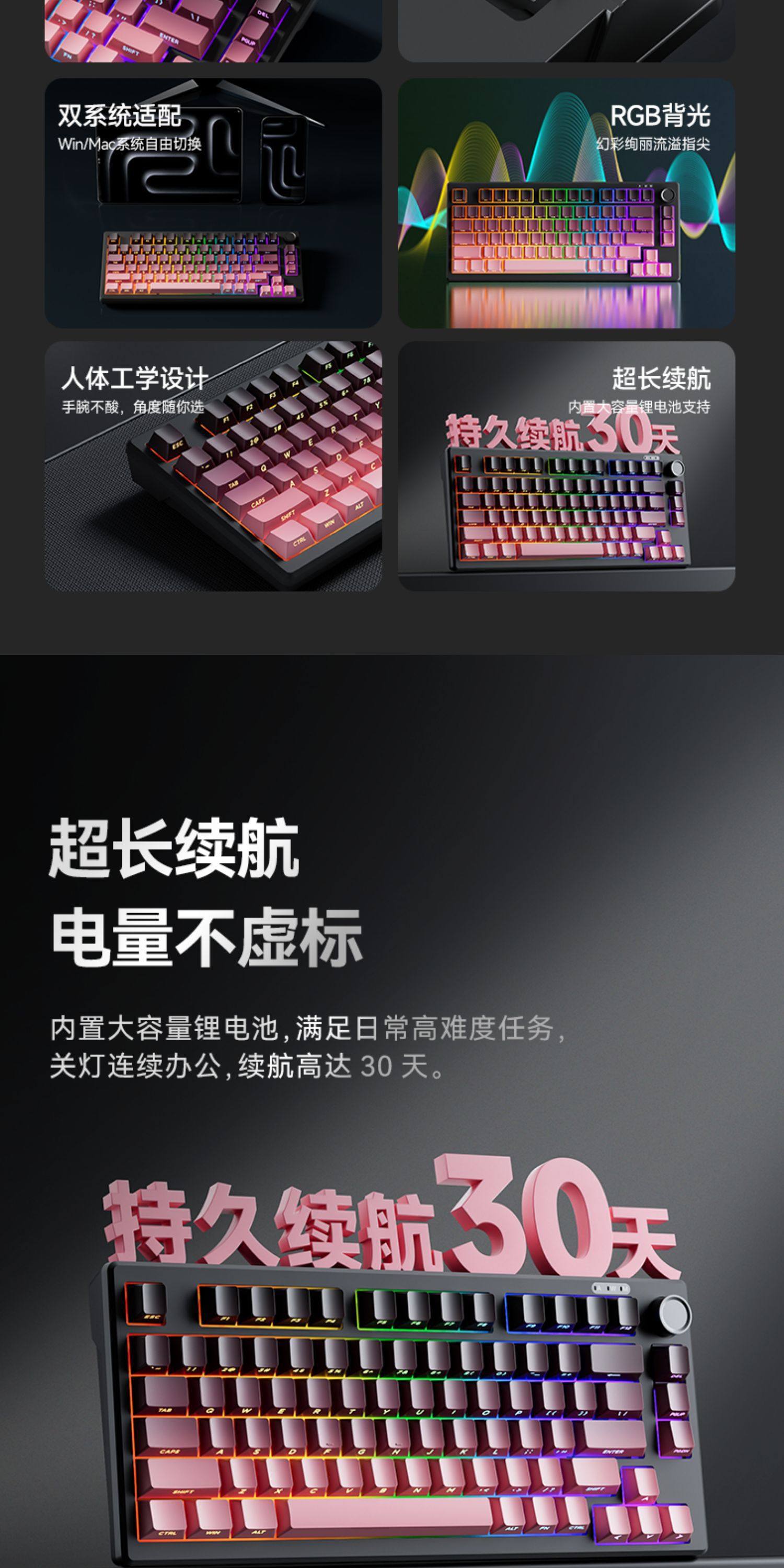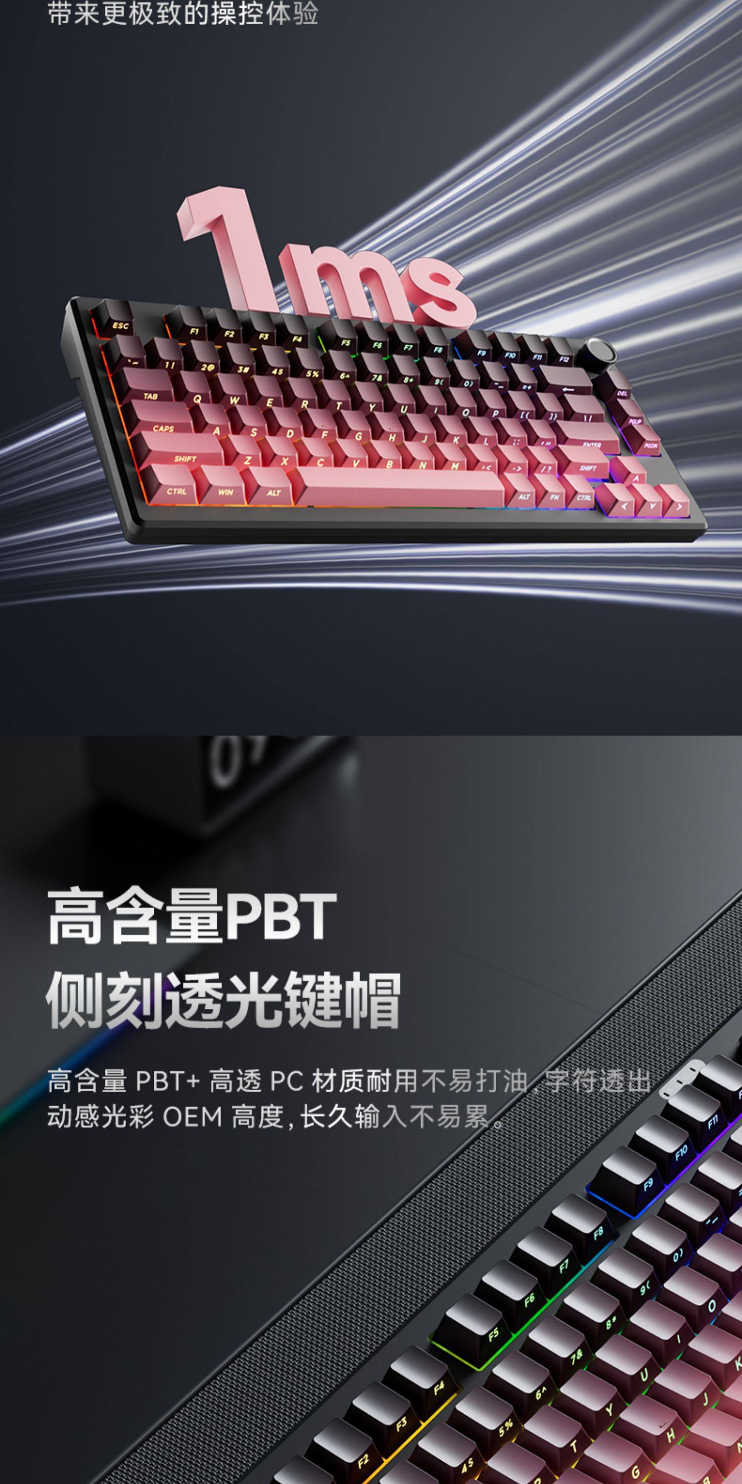 梦族Z75PRO小型机械手感有线键盘静音笔记本外接三模电竞游戏专用