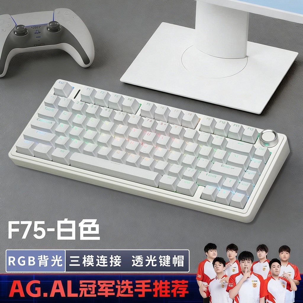 AULA狼蛛F75客制化机械键盘gasket结构全键热插拔无线三模RGB键帽