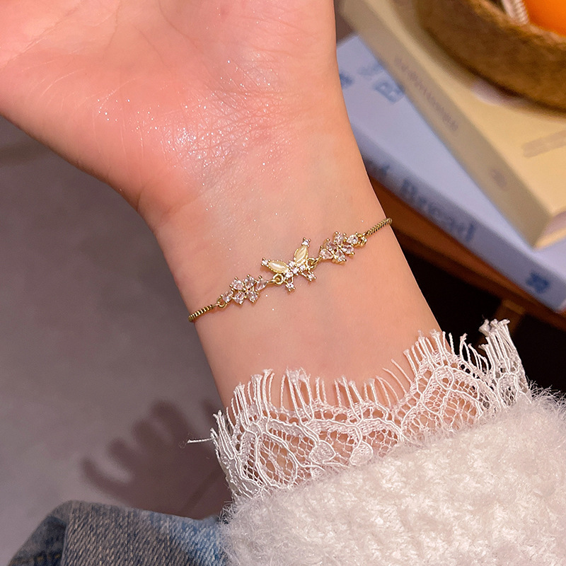 韩系爆款小众高级感珍珠手链女百搭气质精致锆石爱心蝴蝶结手饰品