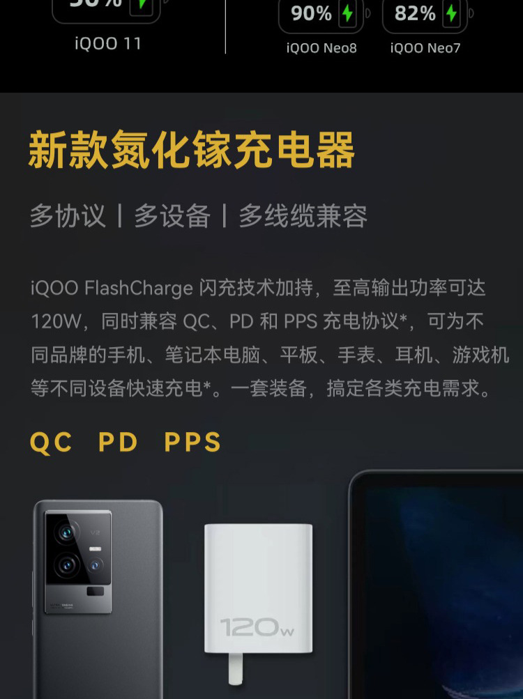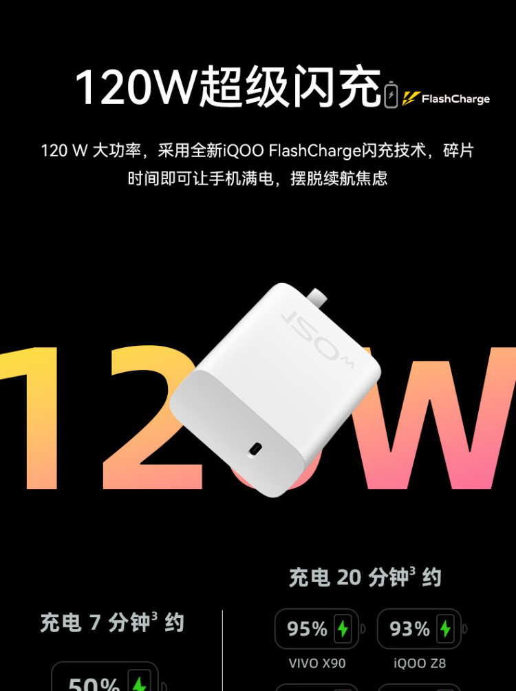 适用vivo120W充电器iqooNeo7闪充120瓦数据线iqoo11手机x90充电器