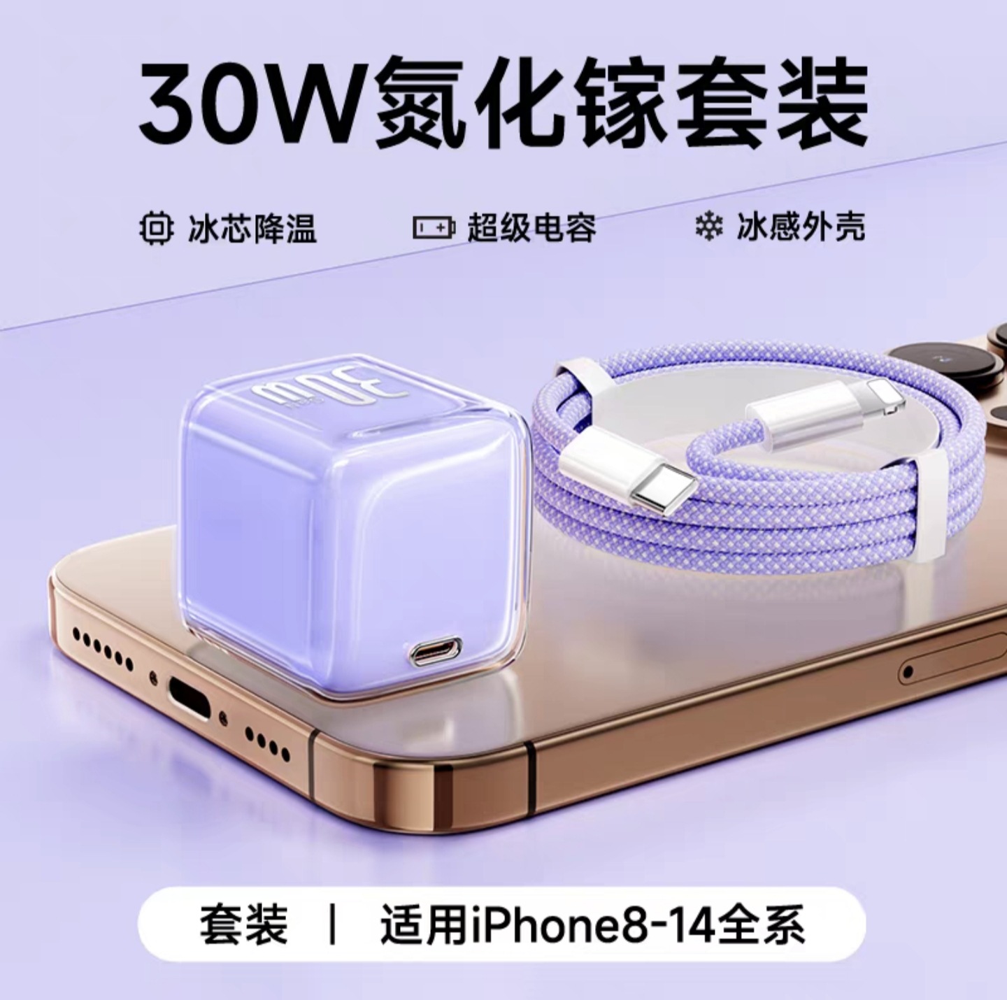 | 30W暮光紫充电头+1米PD编织线(苹果8-14) | USD $3.46 | 88785 set available |