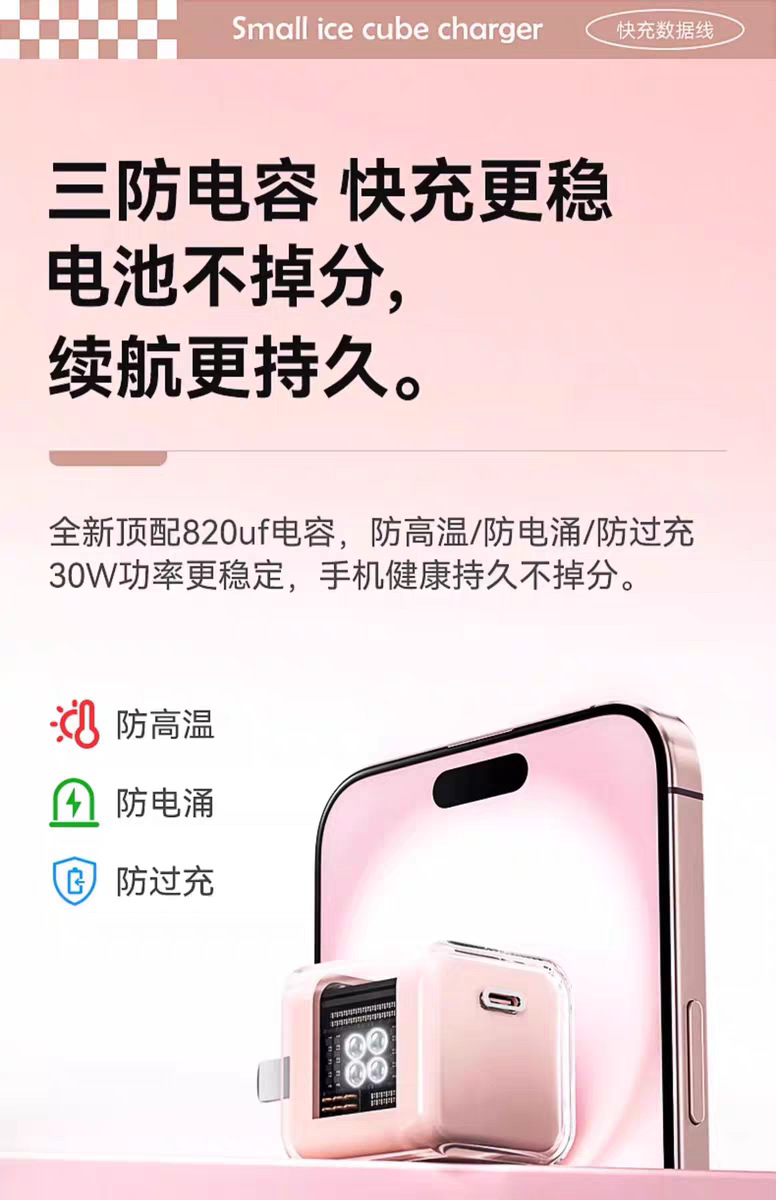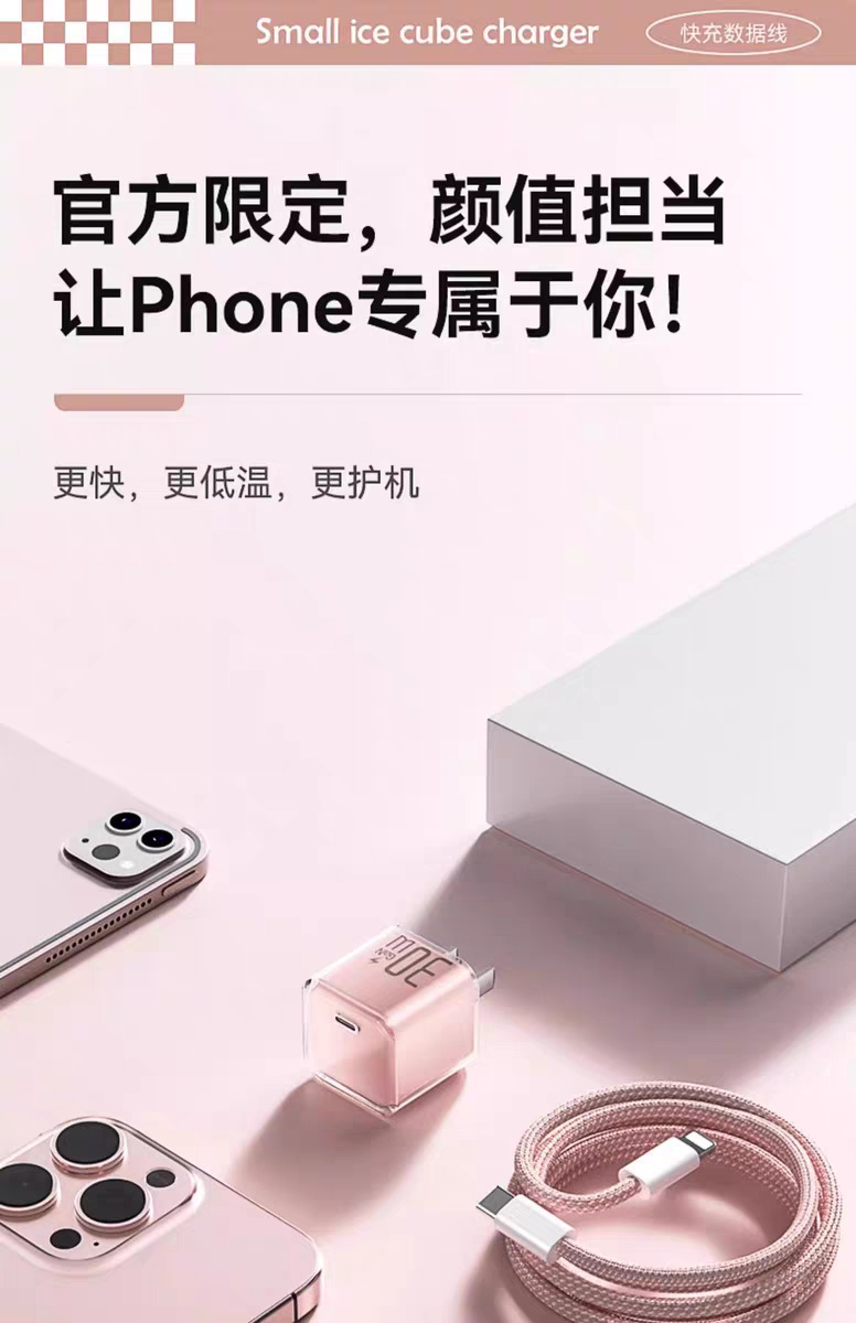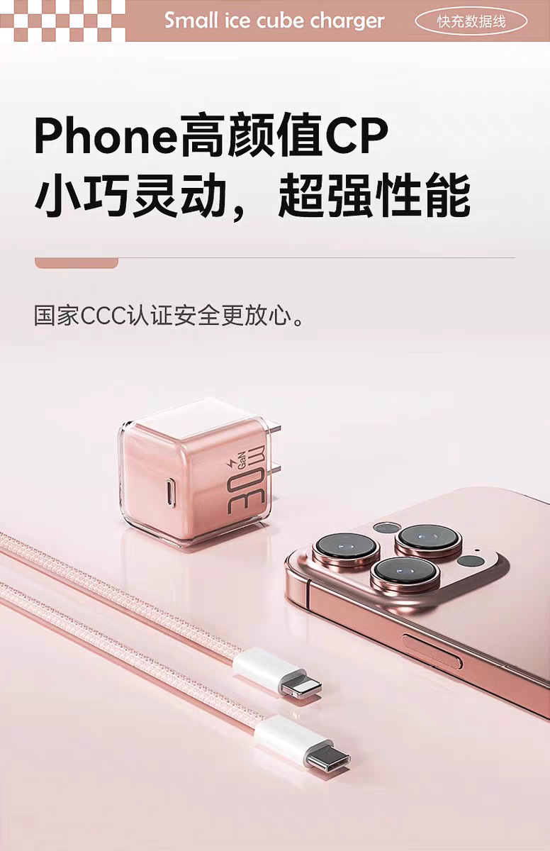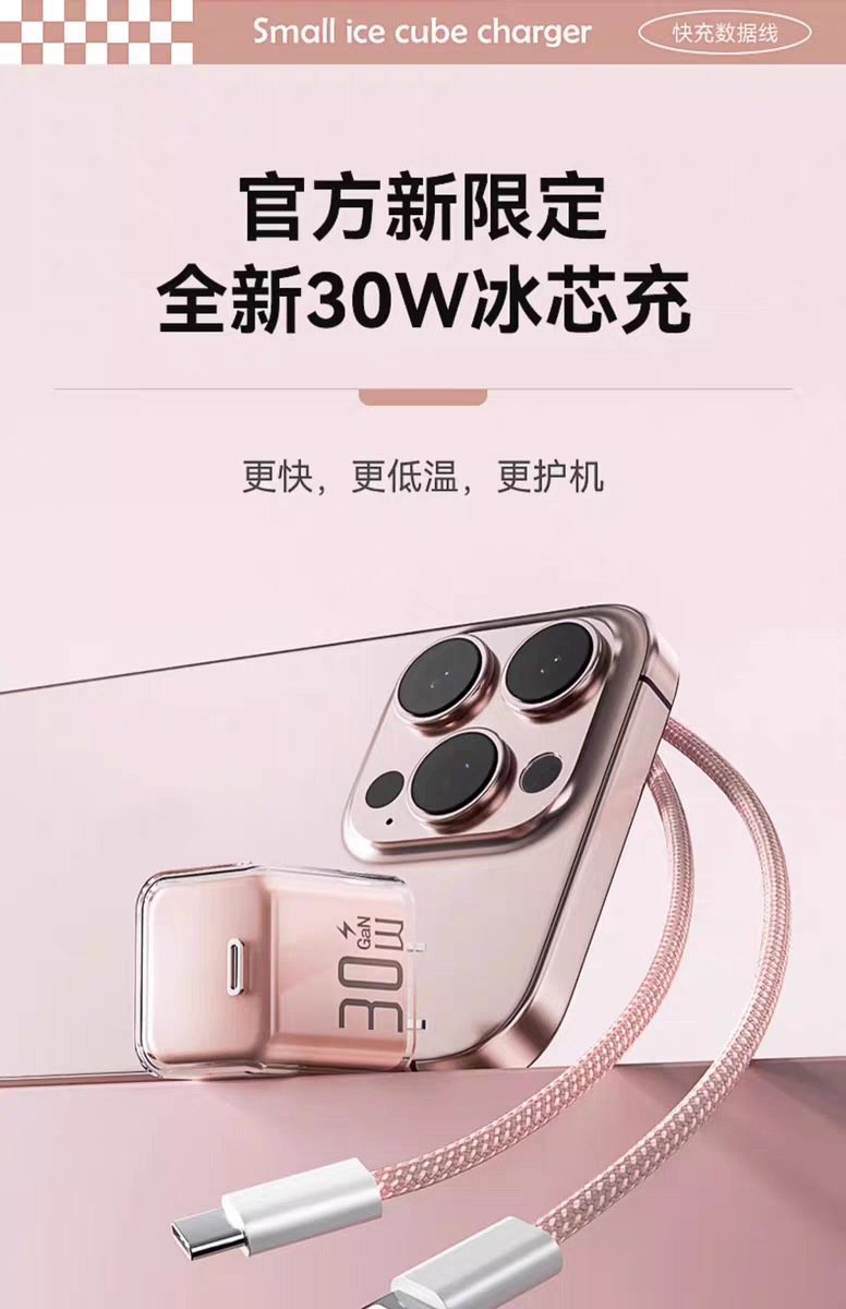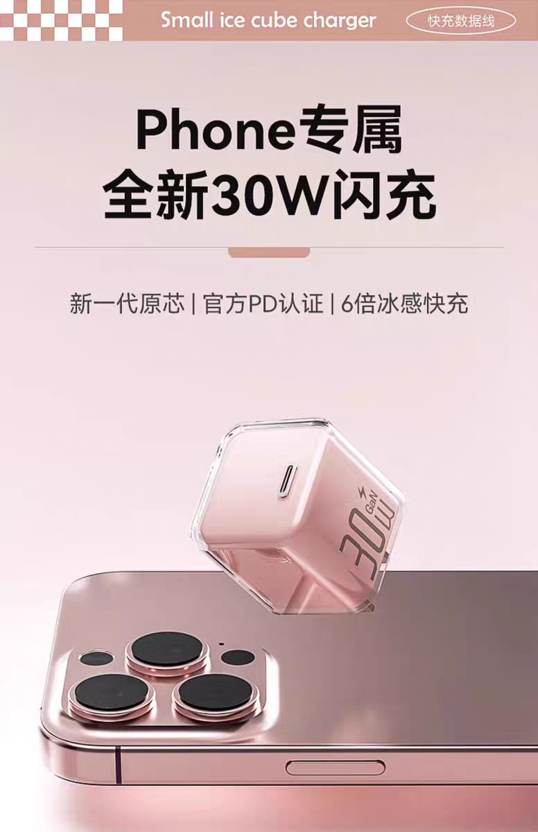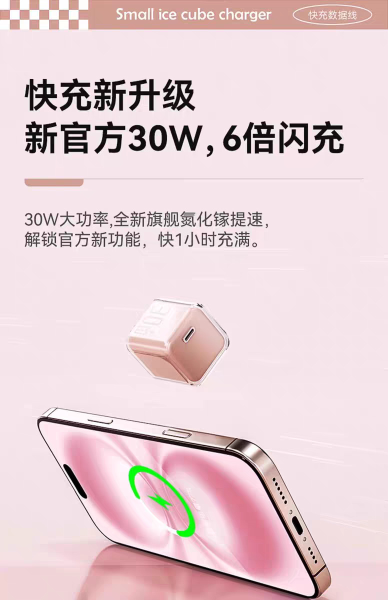 30w小冰块适用苹果16pro充电器1617iphone氮化镓充电头苹果快充头
