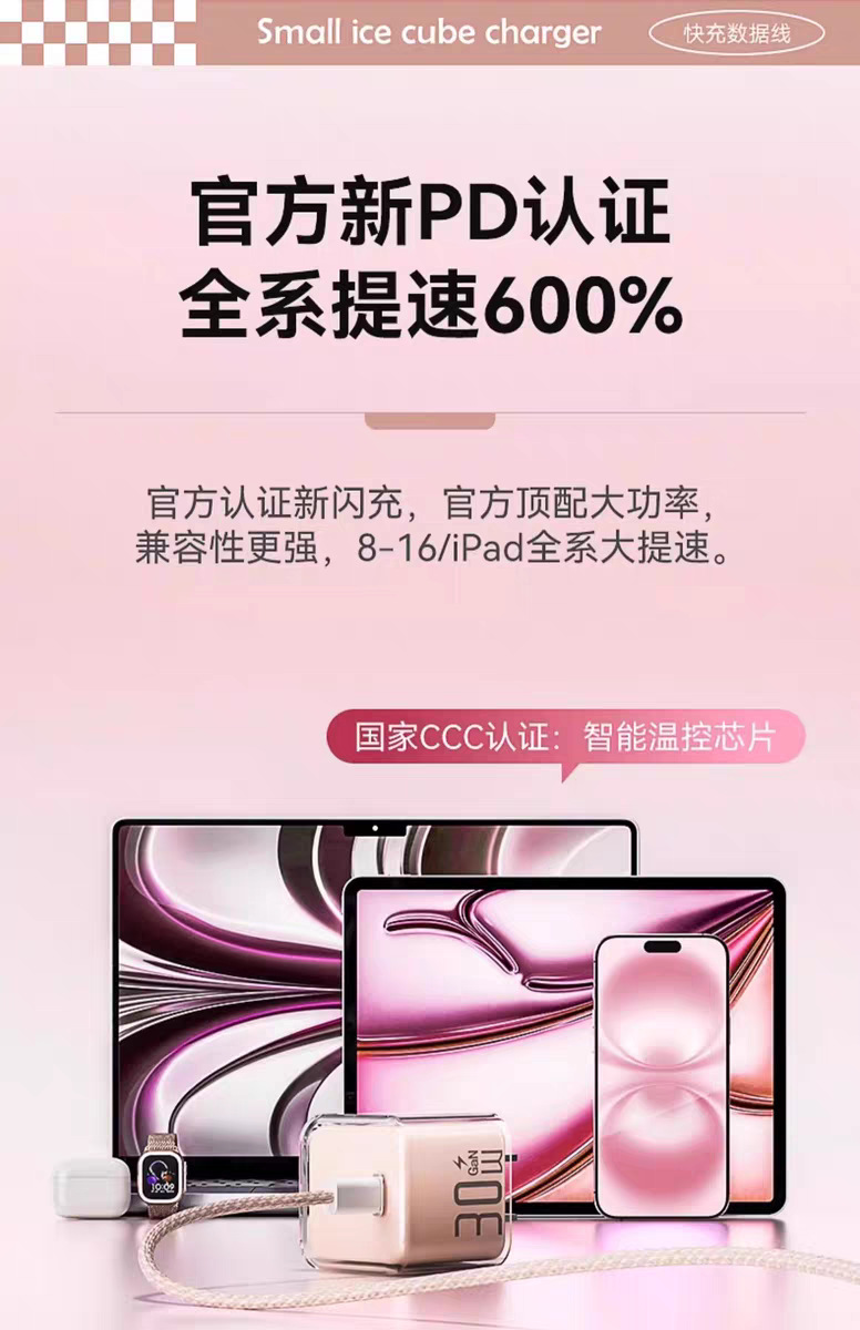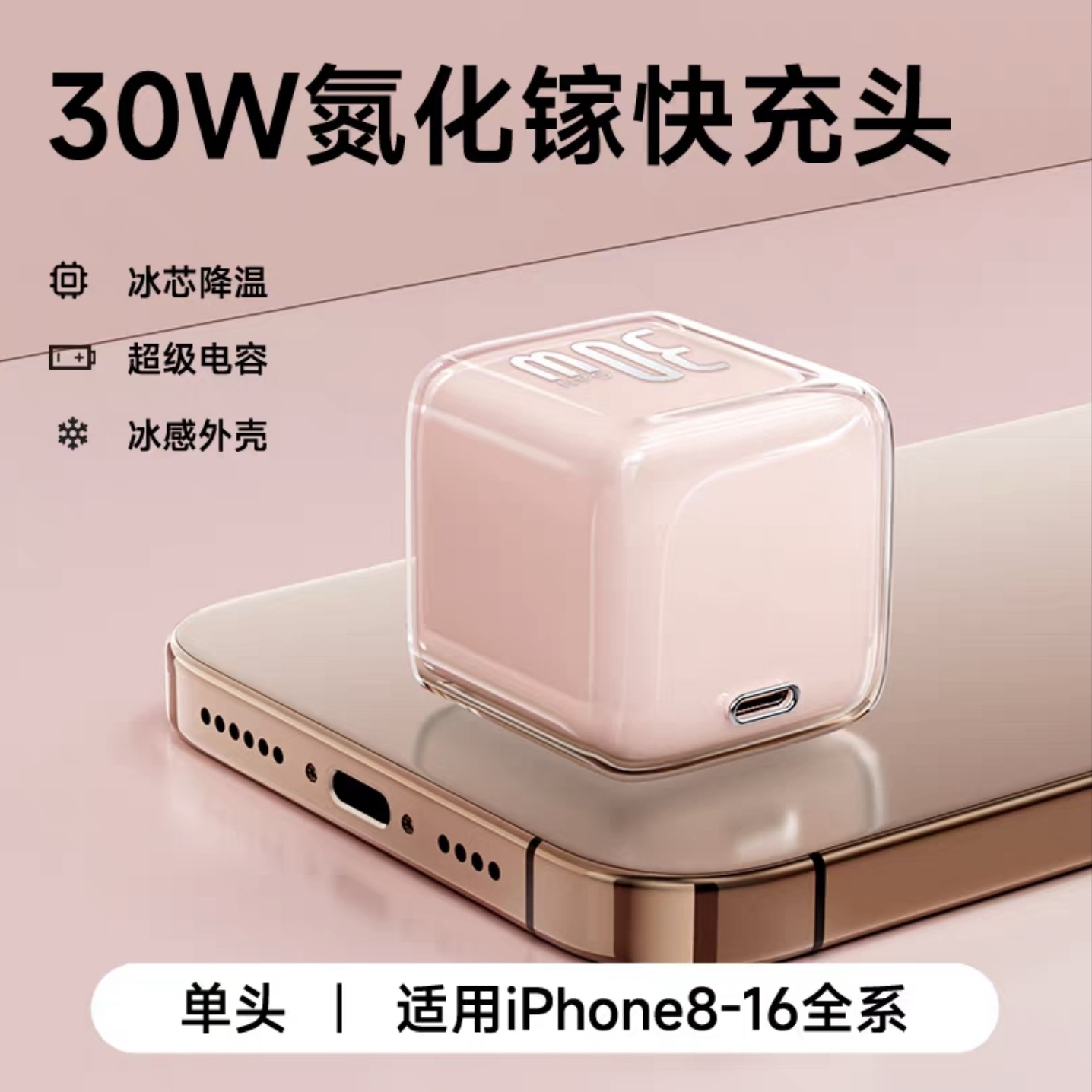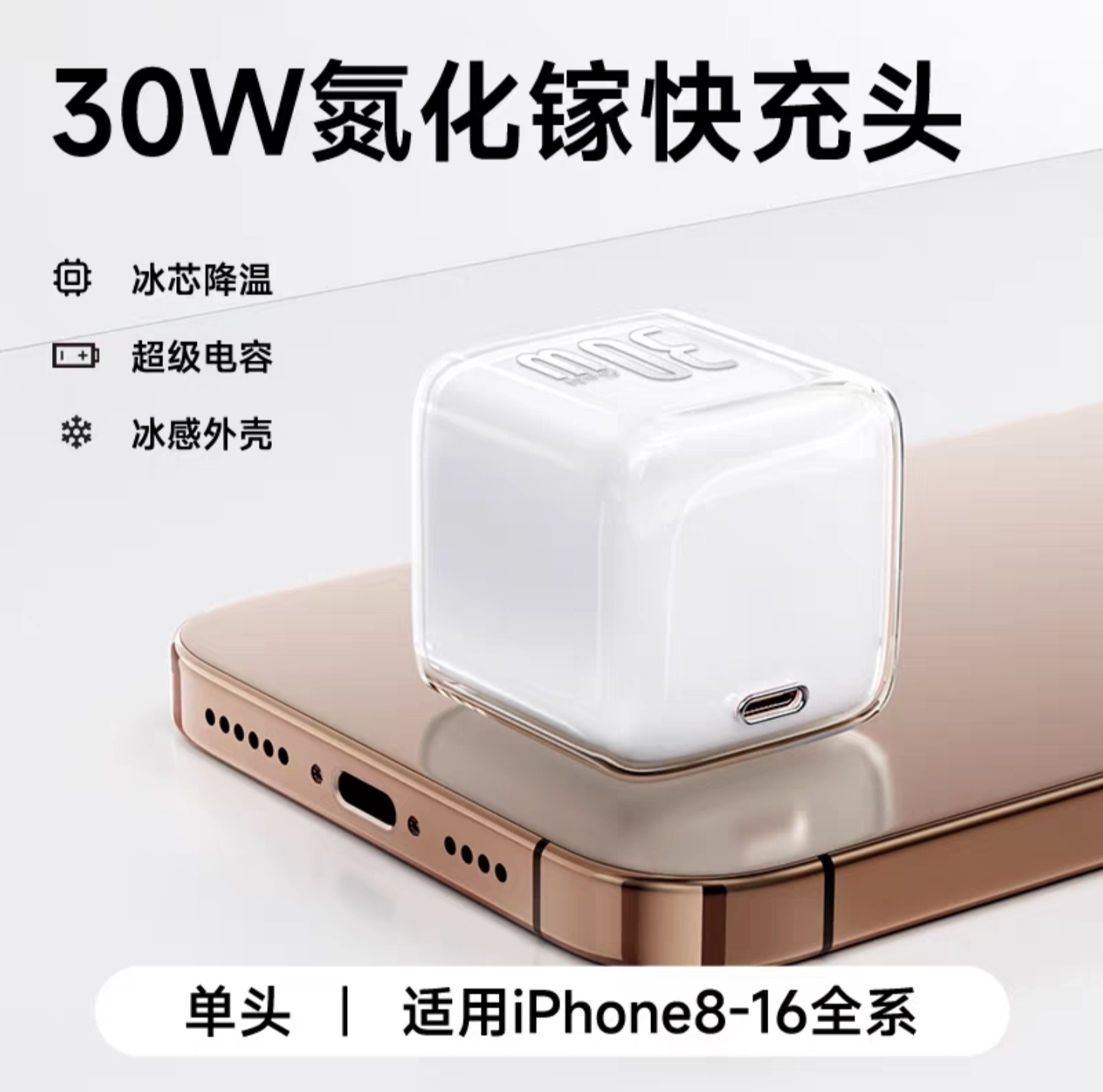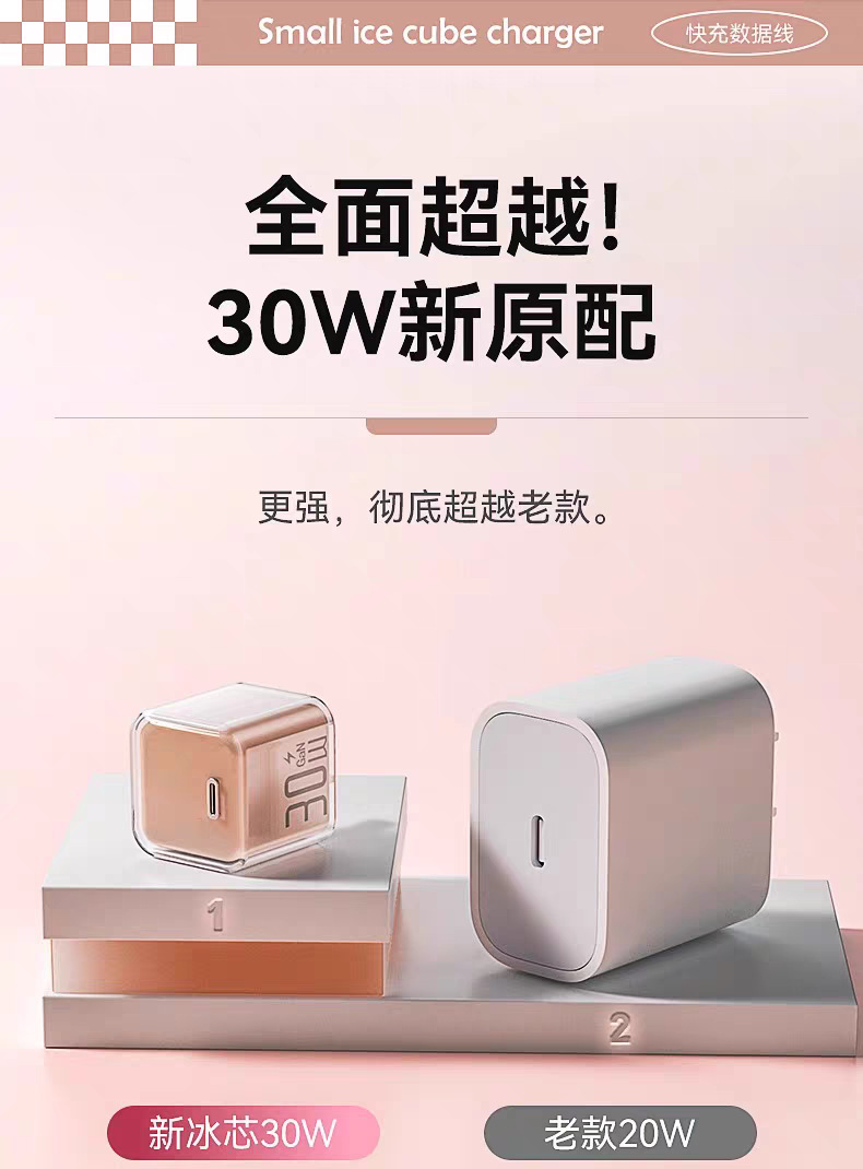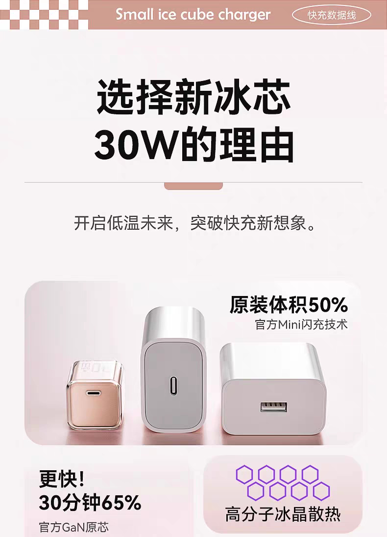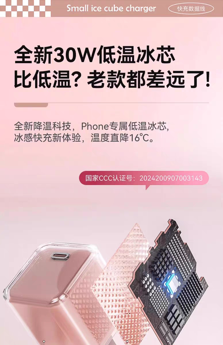 30w小冰块适用苹果16pro充电器1617iphone氮化镓充电头苹果快充头