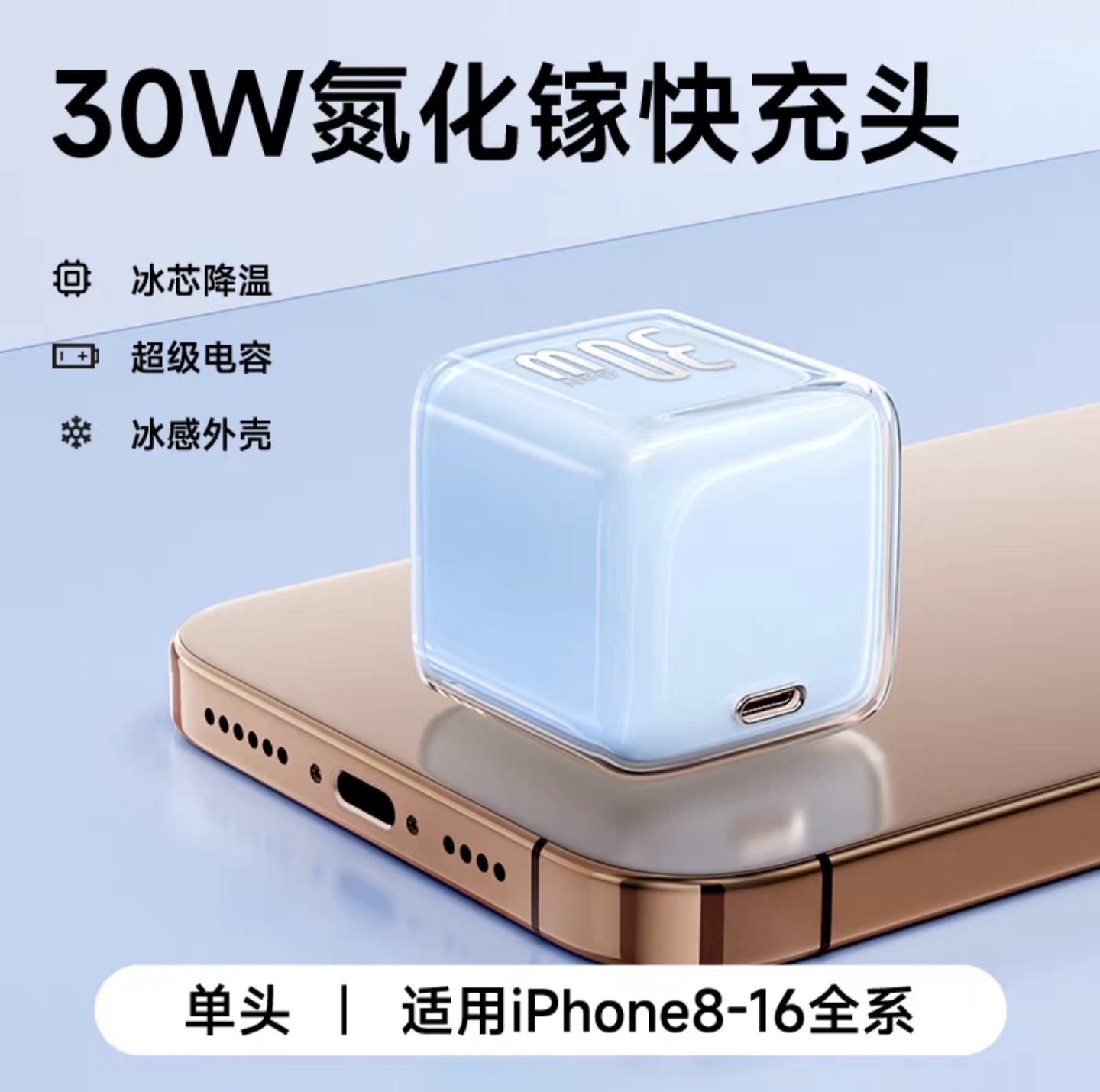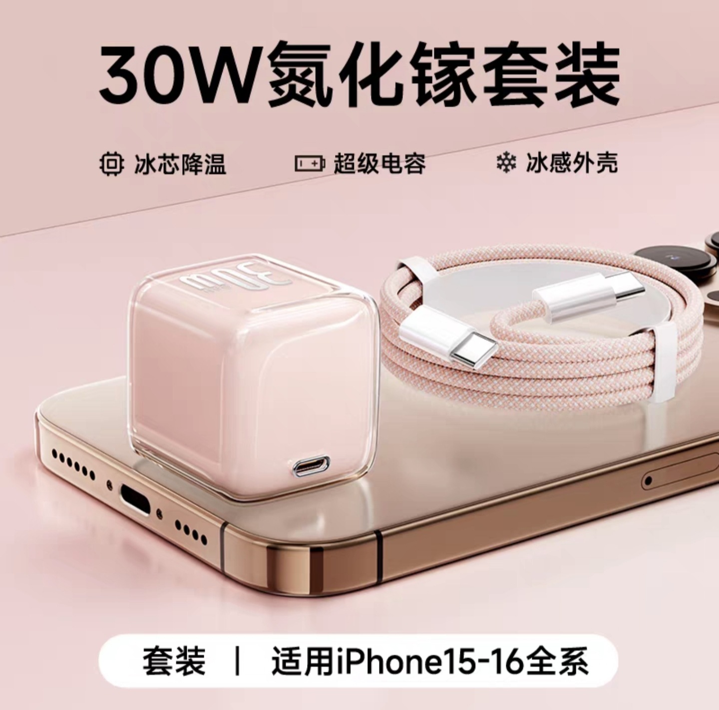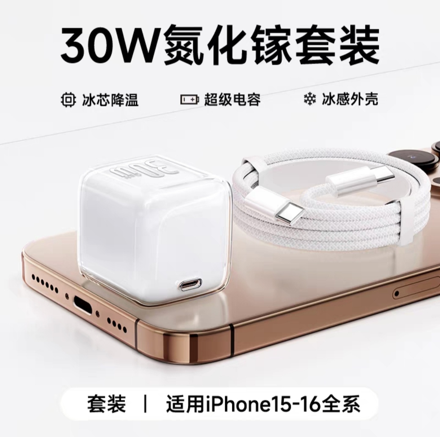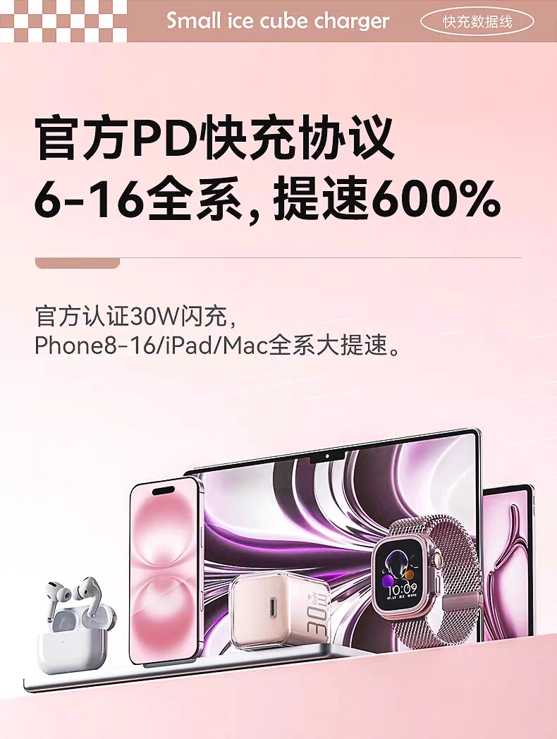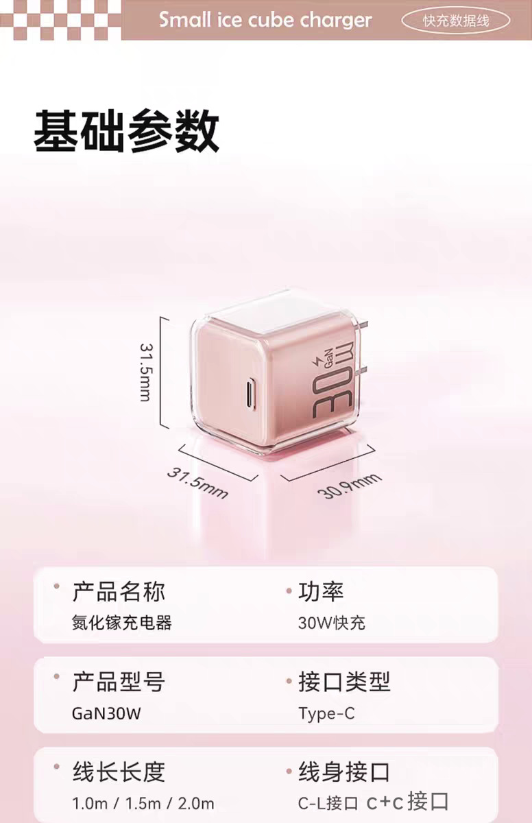 30w小冰块适用苹果16pro充电器1617iphone氮化镓充电头苹果快充头