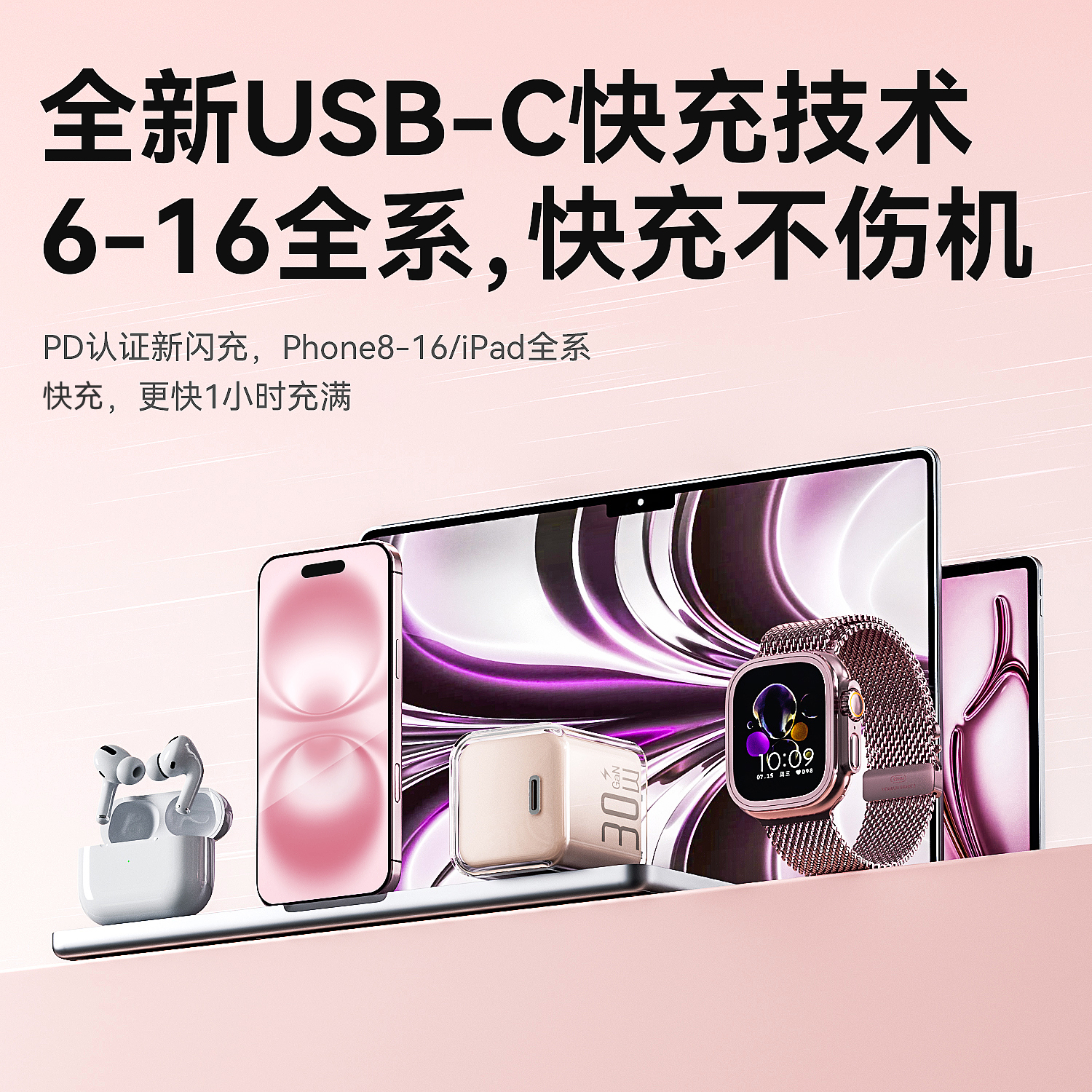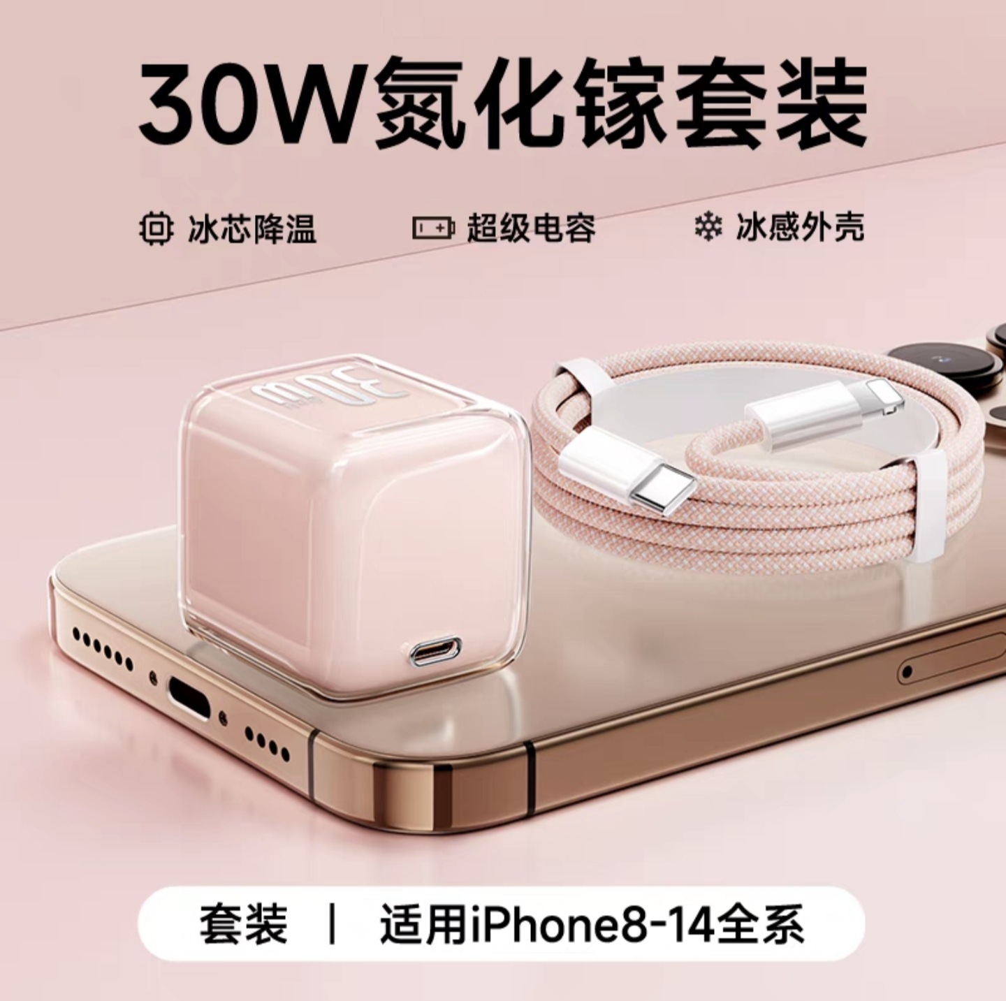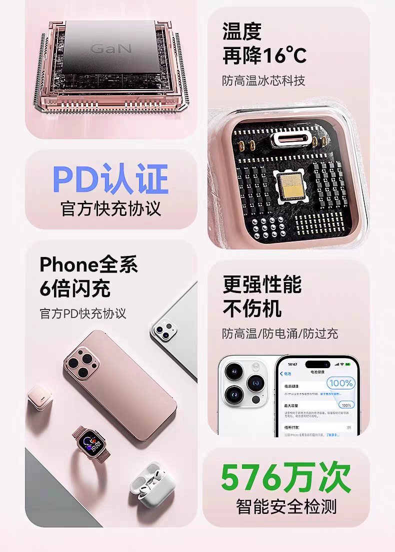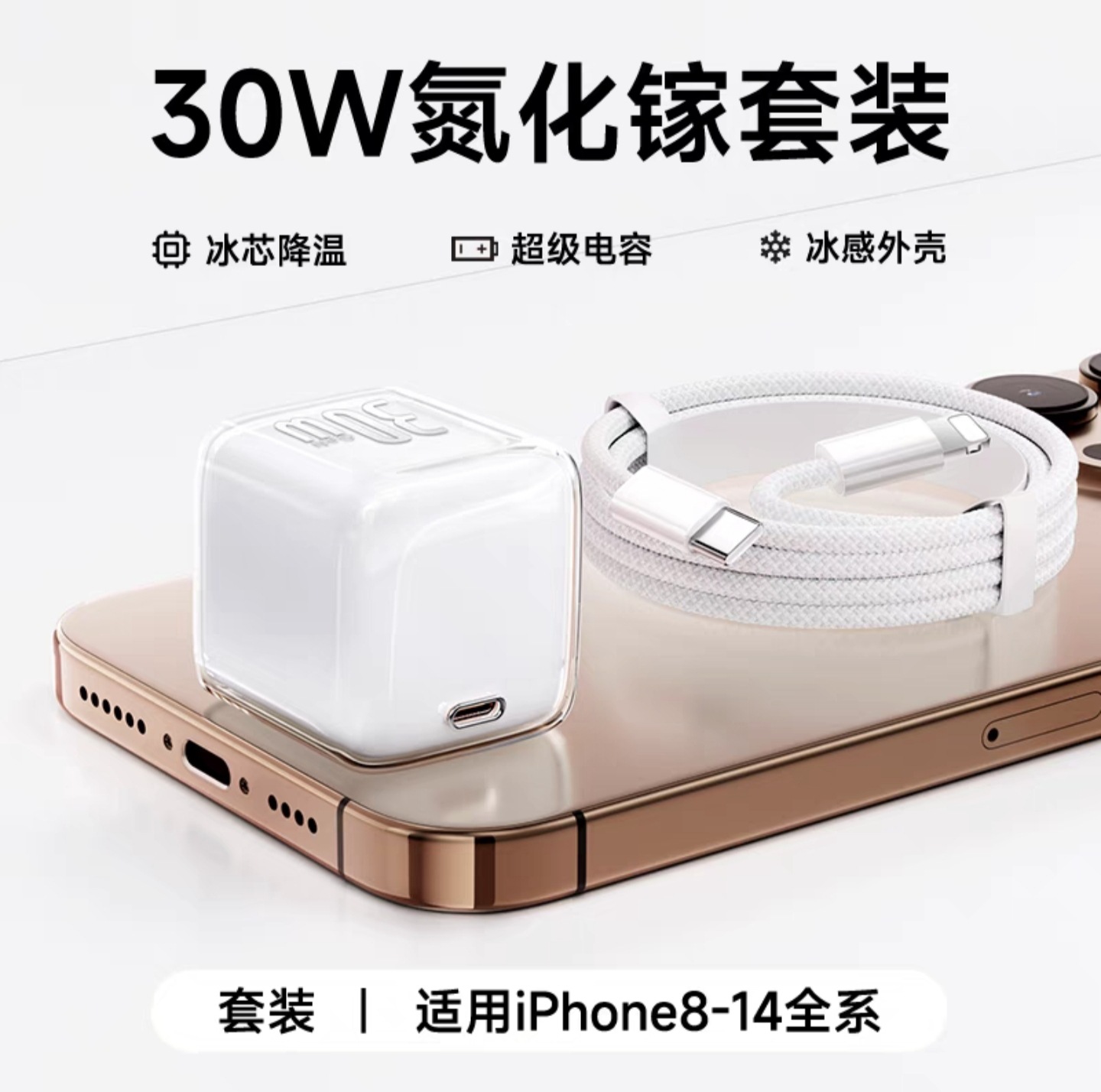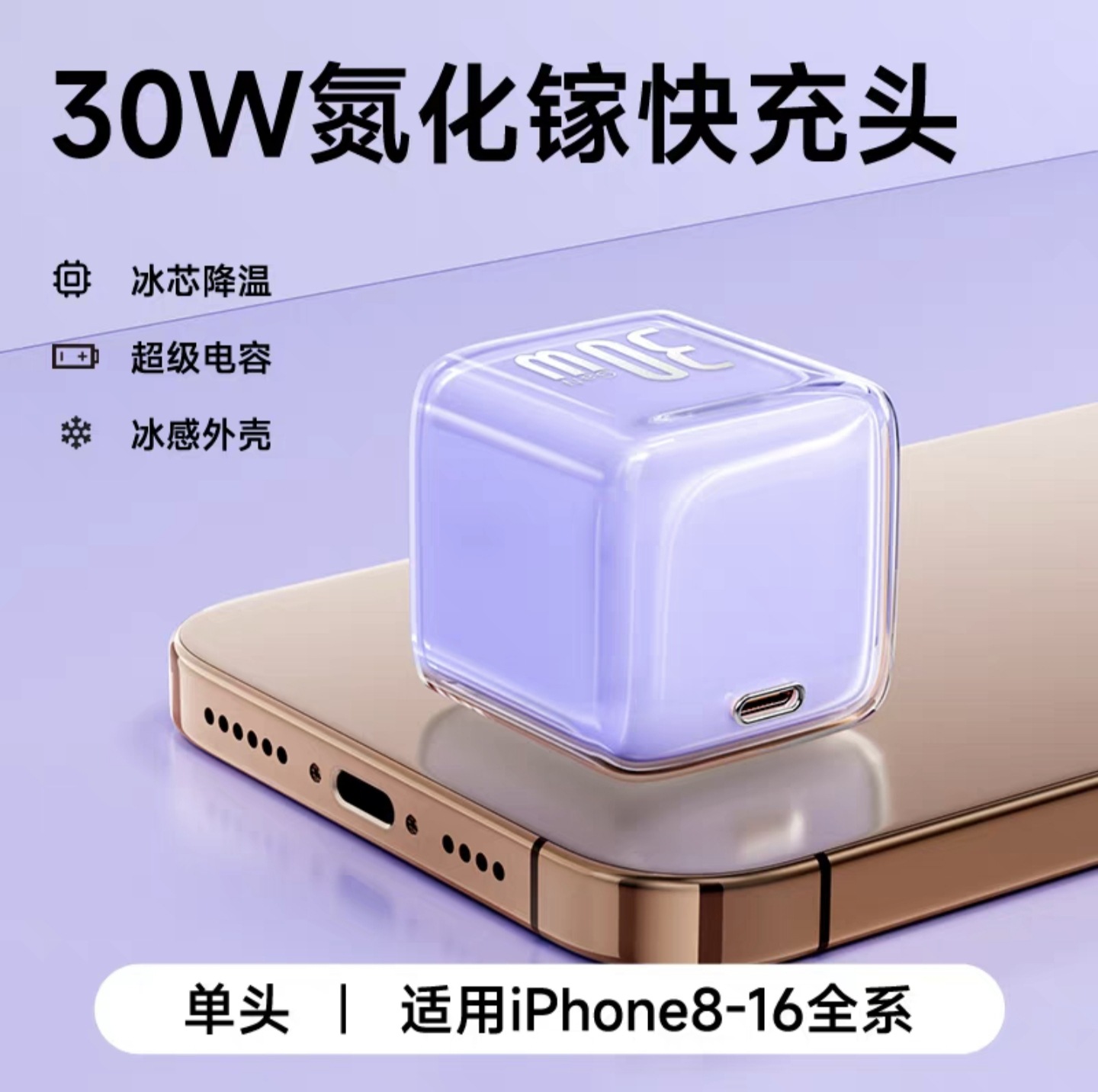 30w小冰块适用苹果16pro充电器1617iphone氮化镓充电头苹果快充头