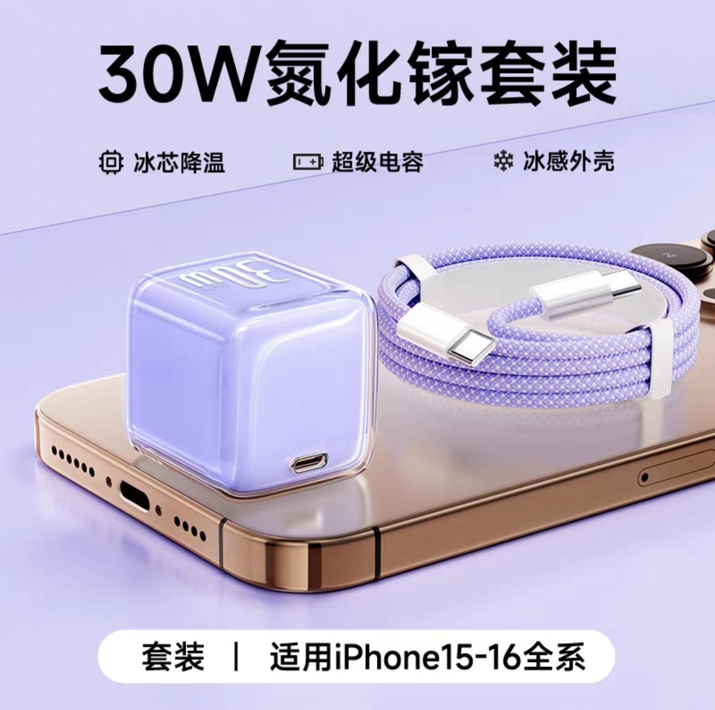 | 30W暮光紫充电头+1米C-C编织线(苹果15-17) | USD $3.46 | 88850 set available |