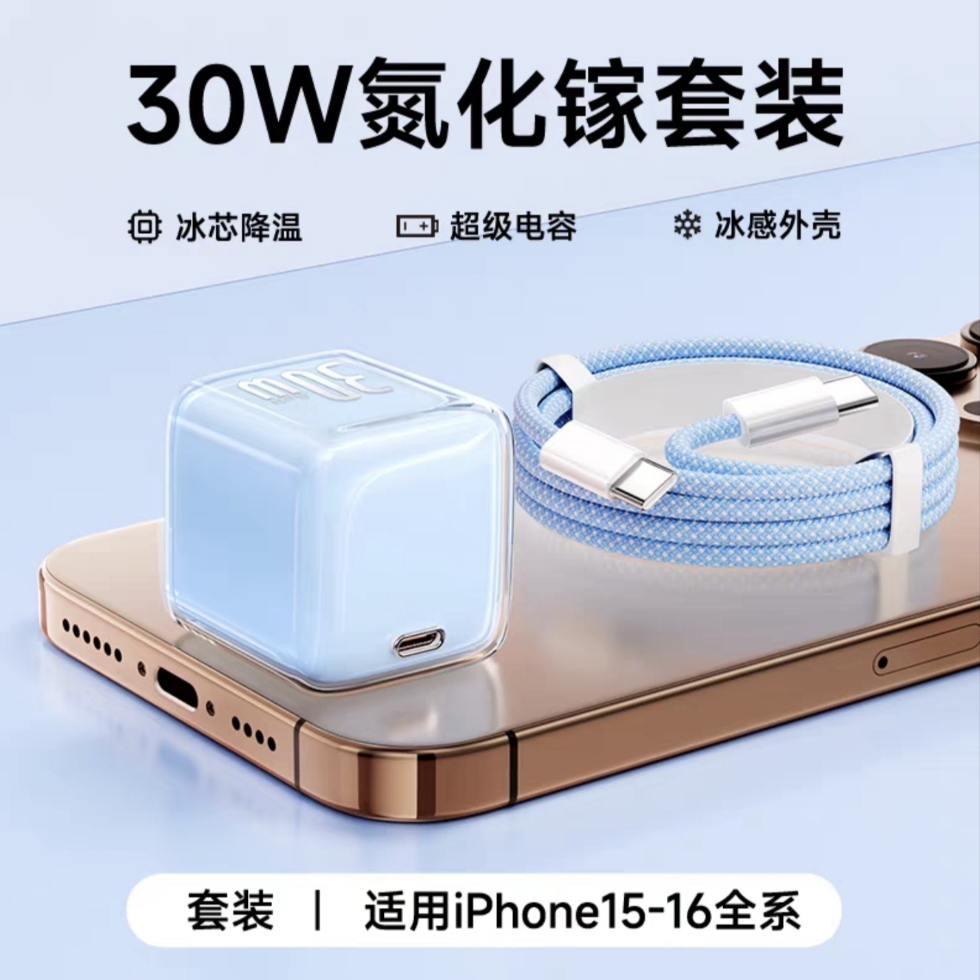 | 30W冰川蓝充电头+1米C-C编织线(苹果15-17) | USD $3.46 | 88834 set available |