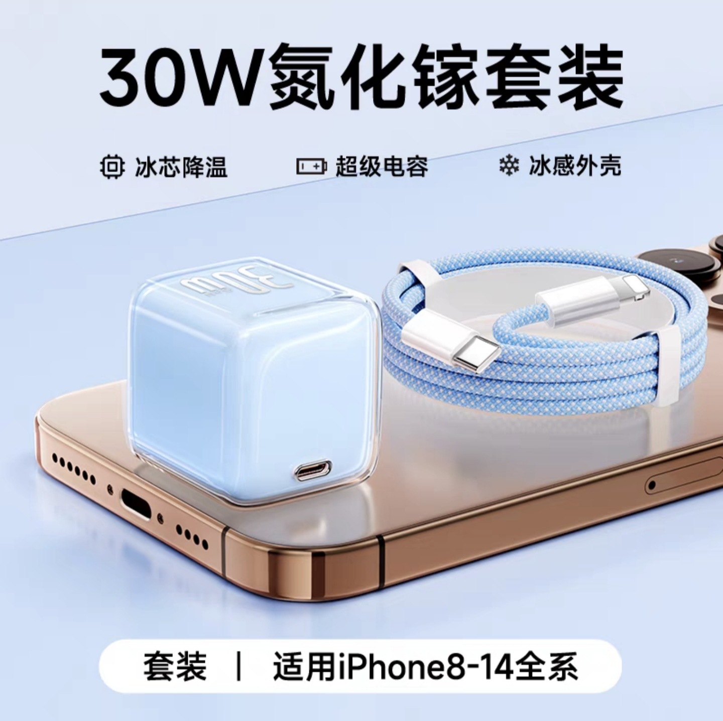 | 30W冰川蓝充电头+2米PD编织线(苹果8-14) | USD $3.88 | 88658 set available |