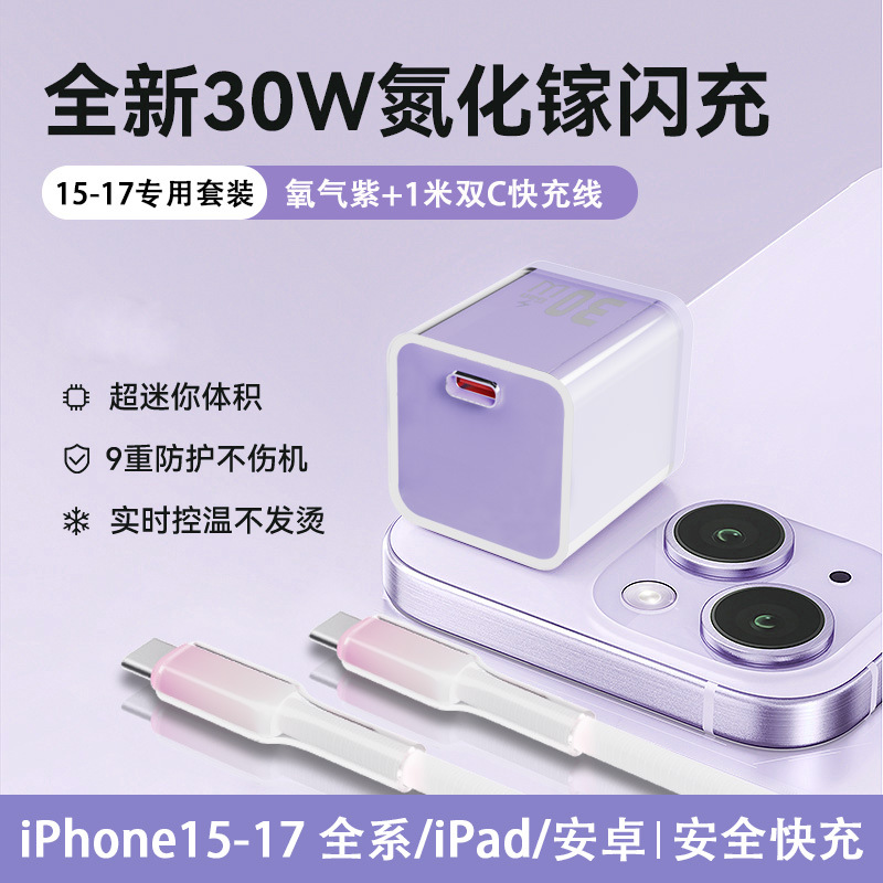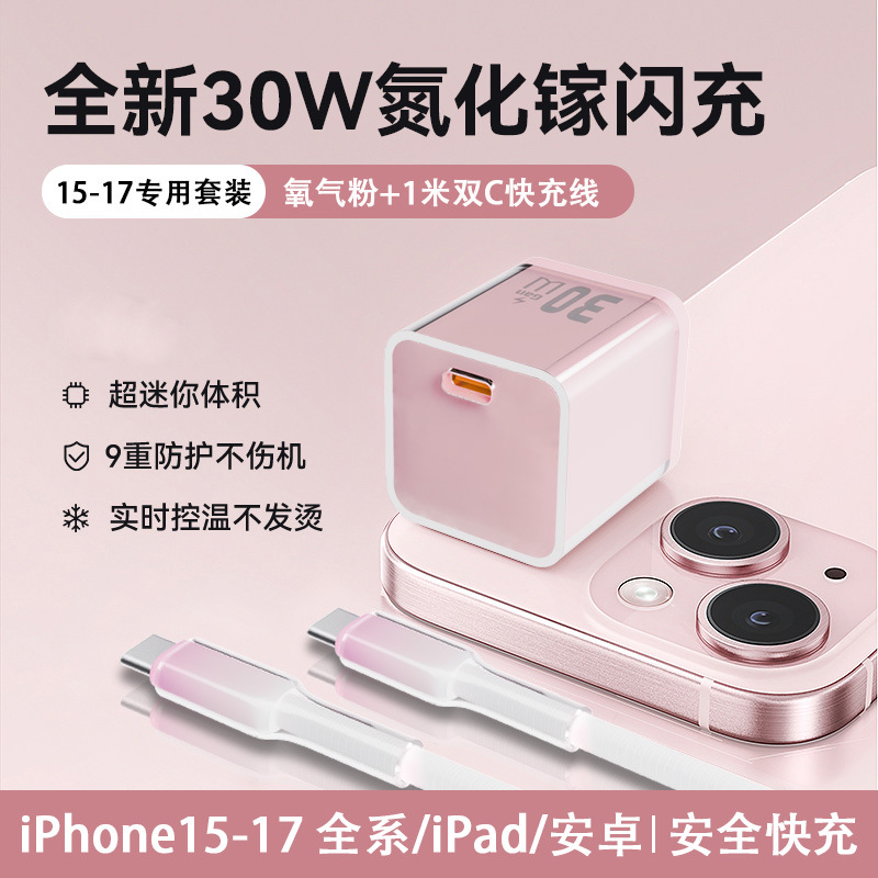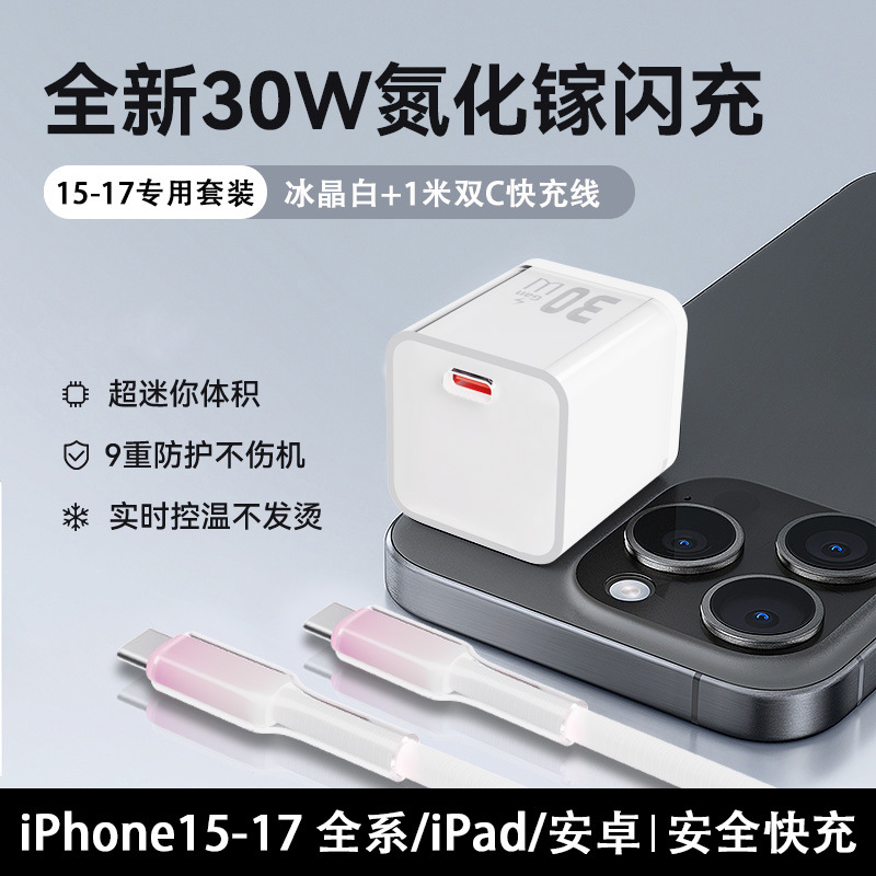 适用苹果充电器30W氮化镓快充头 iPhone数据线套装8-17手机充电头