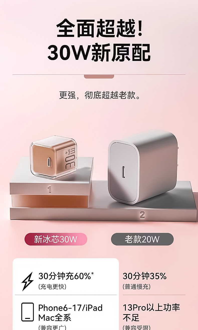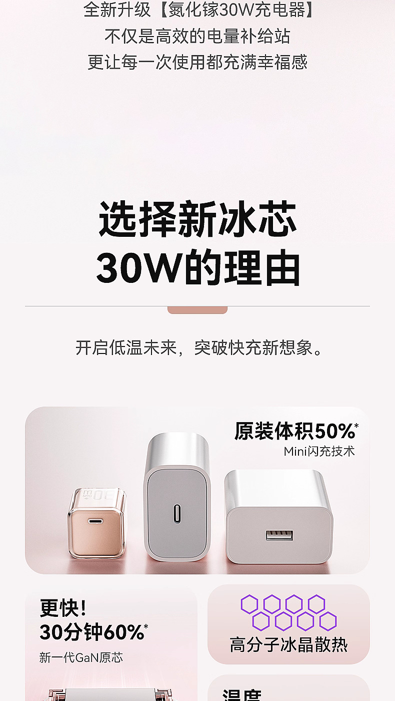 | 【冰透】樱花粉丨30W氮化镓 - 单头盒装 | USD $2.62 | 799998 set available |