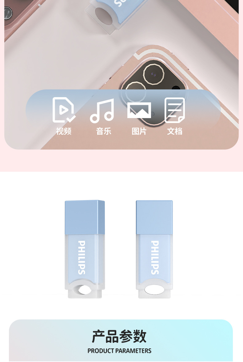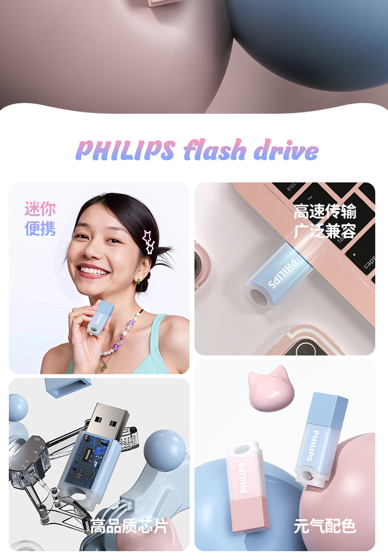 飞利浦u盘 大容量可爱果冻高速台式电脑笔记本车载通用创意礼品